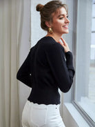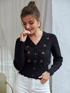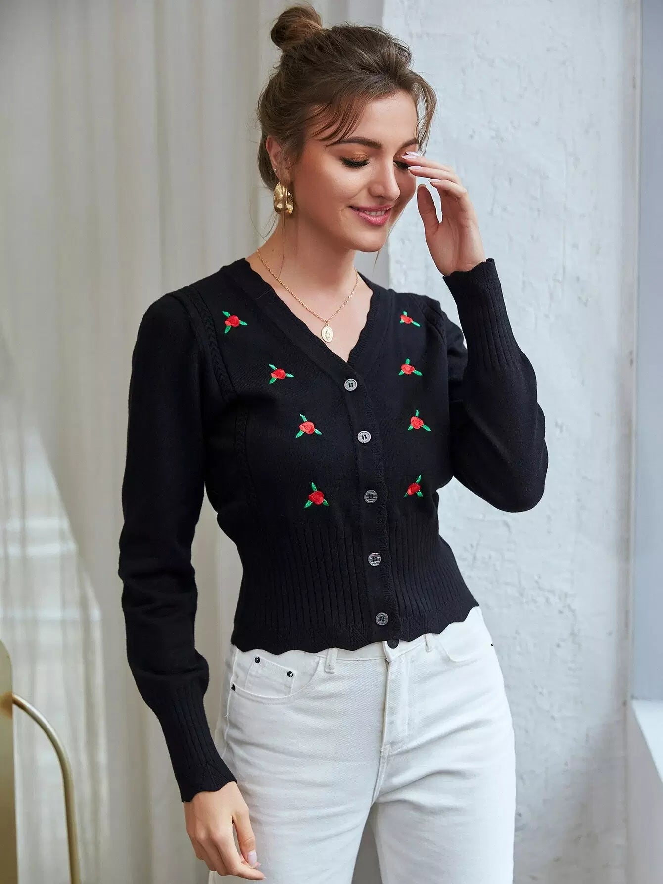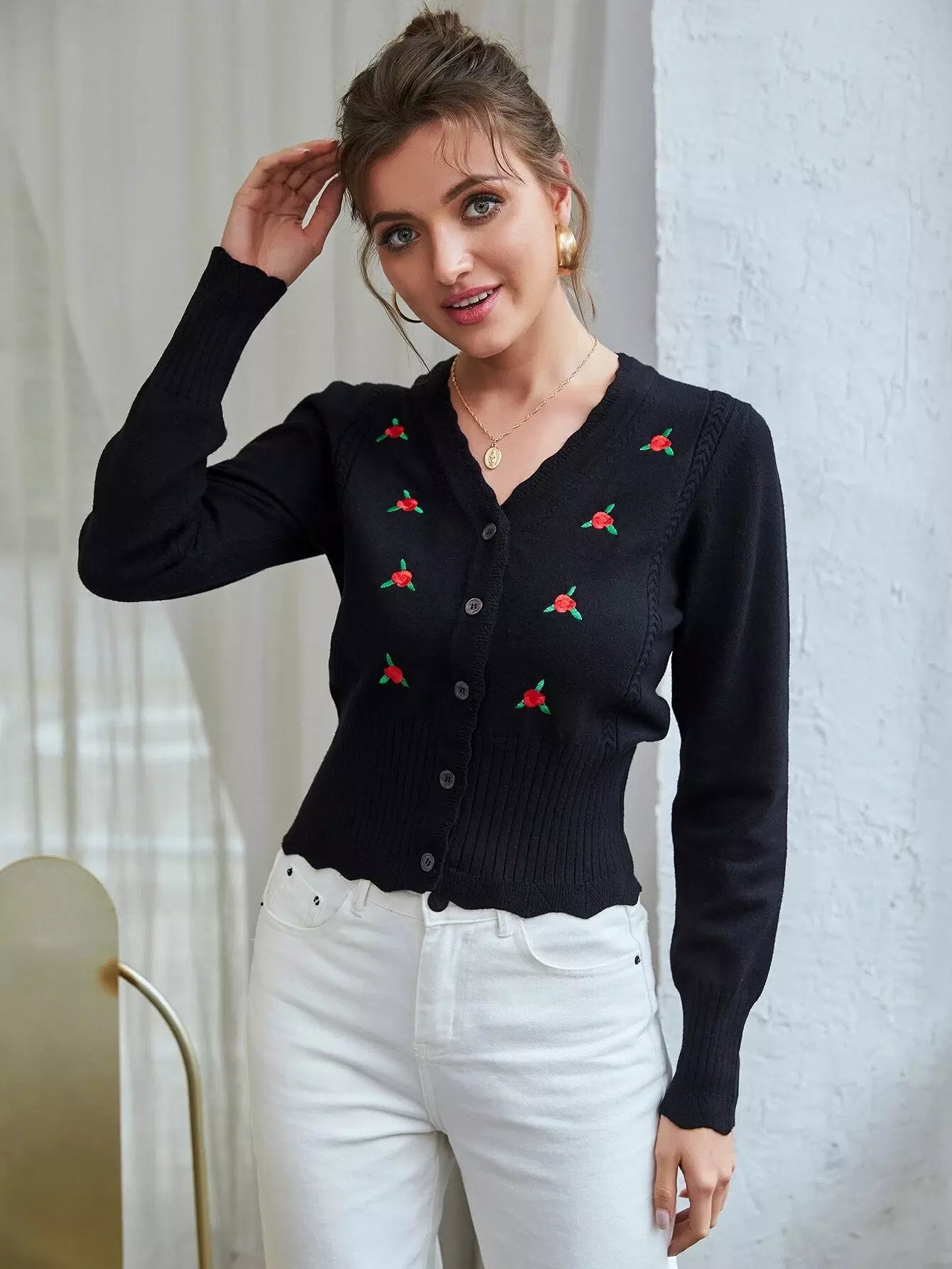 كارديجان مطرز بأزرار من الأمام بتطريزات زهور بحواف صدفية
