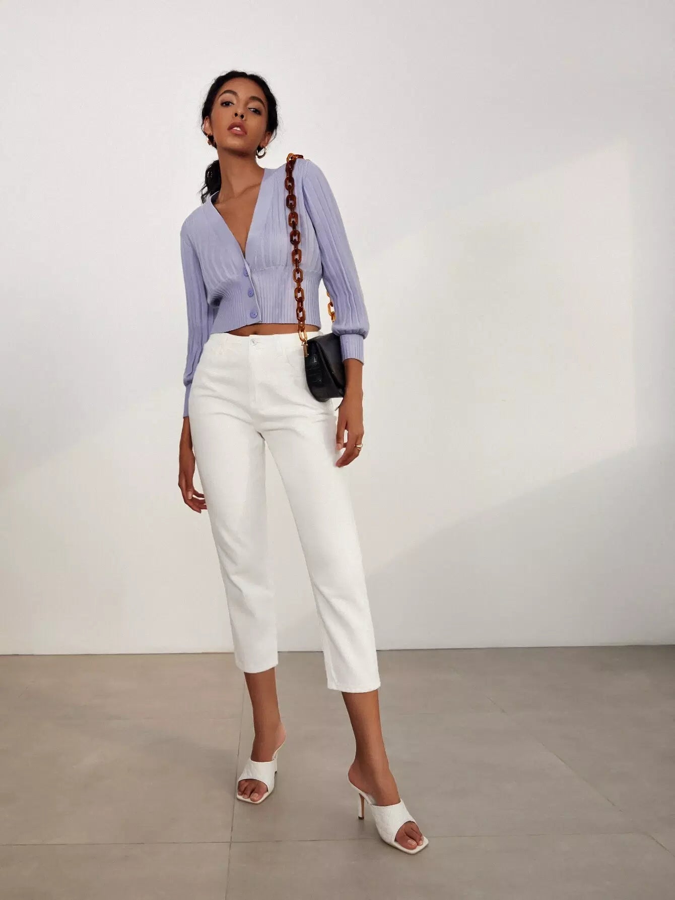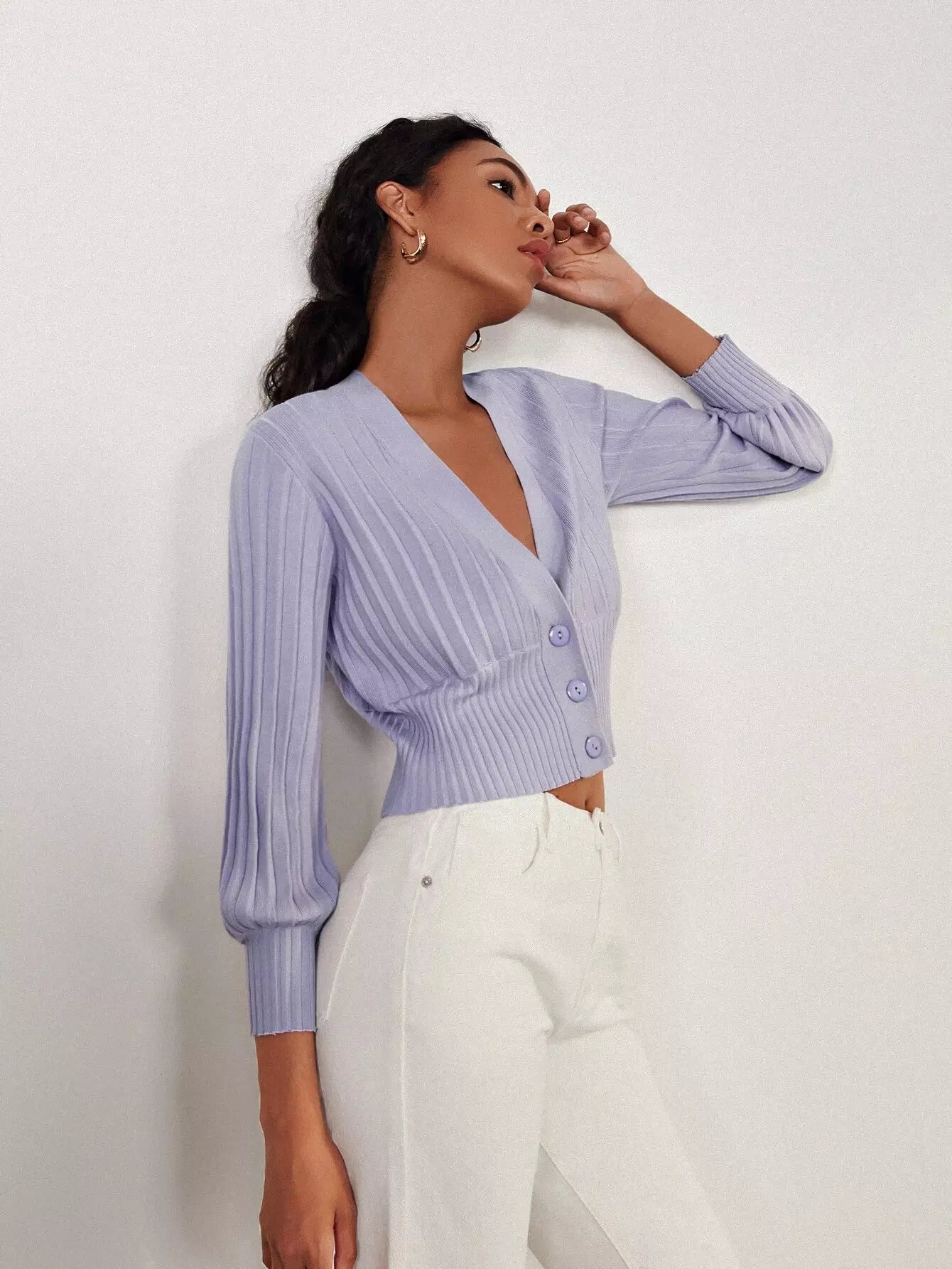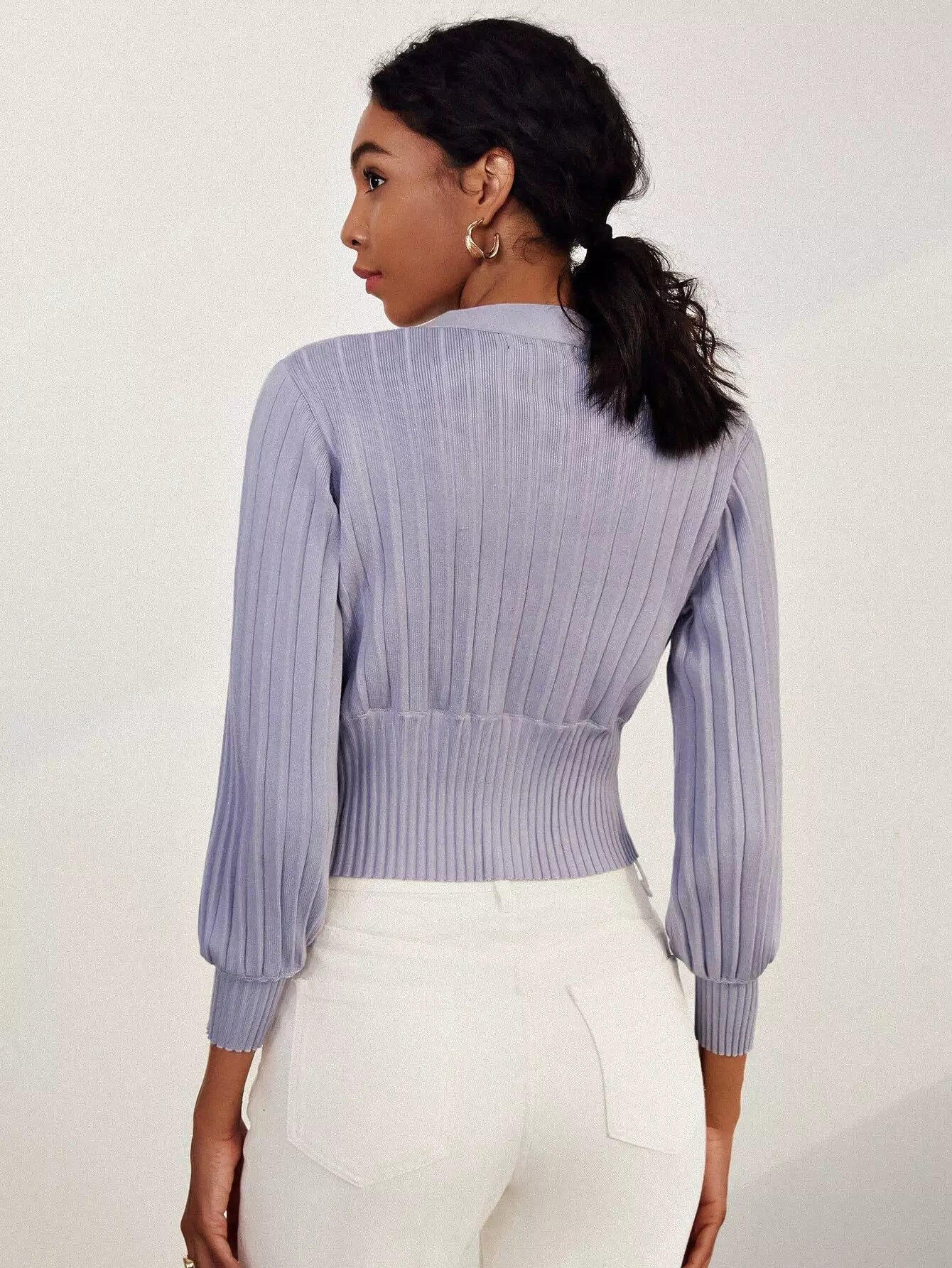 كارديجان بأكمام بأزرار أمامية بأزرار مضلعة مضلعة