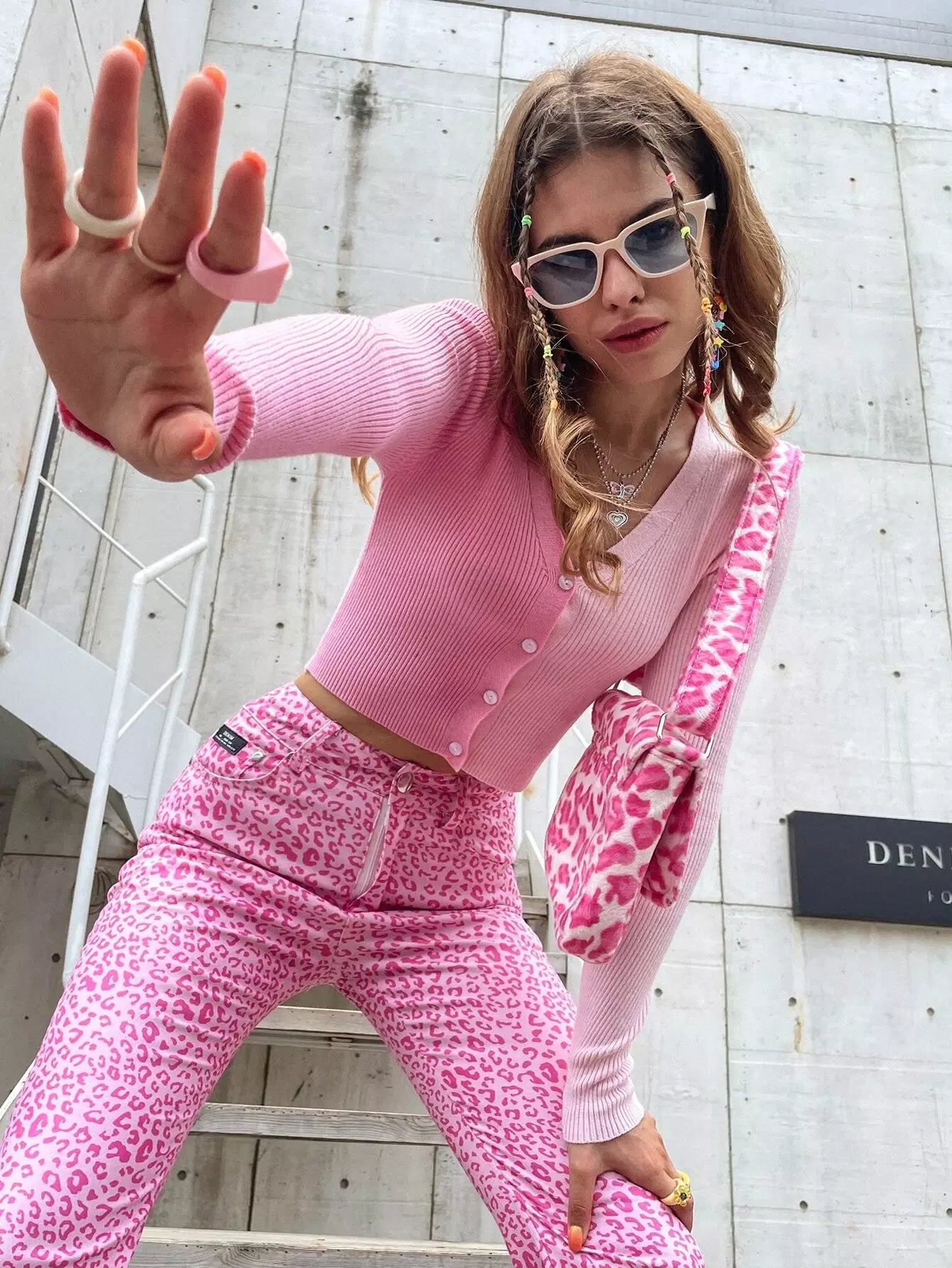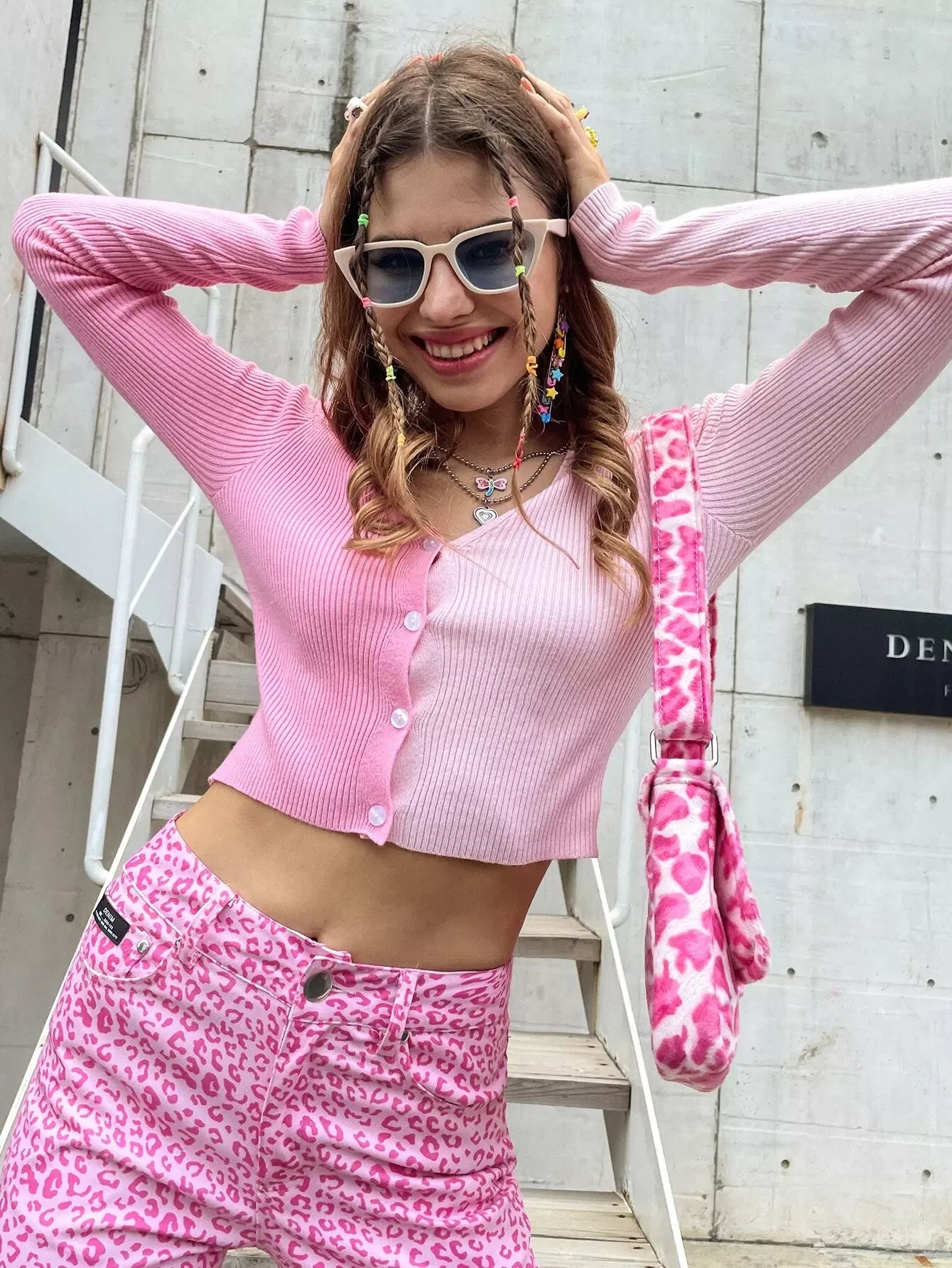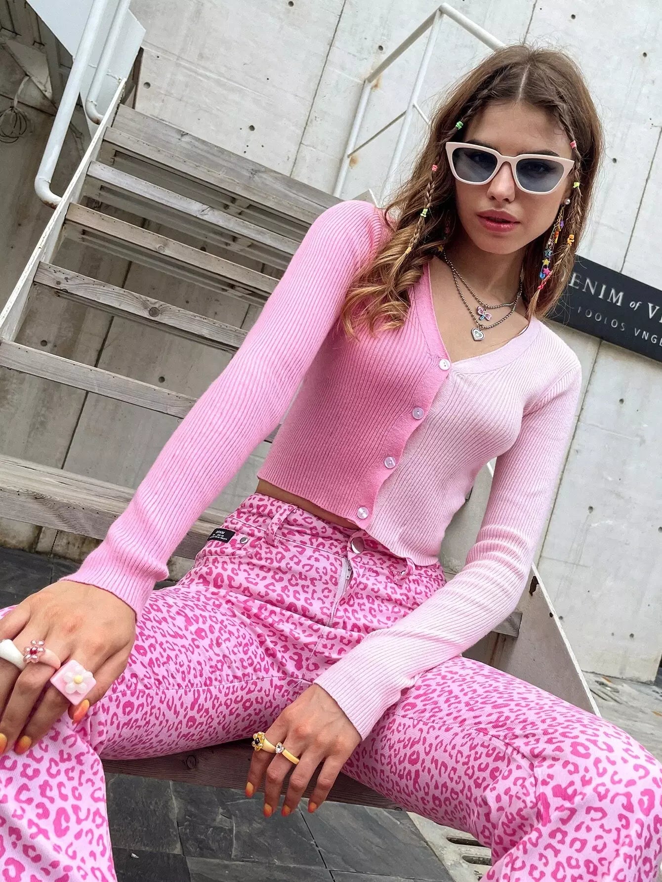 كارديغان محبوك بأزرار أمامي مضلع محبوك بأزرار
