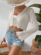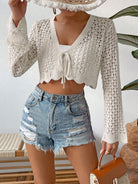 Calvaya Tie Front Scallop Trim Trumpet Sleeve Cardigan Fall Winter Cloth For Women