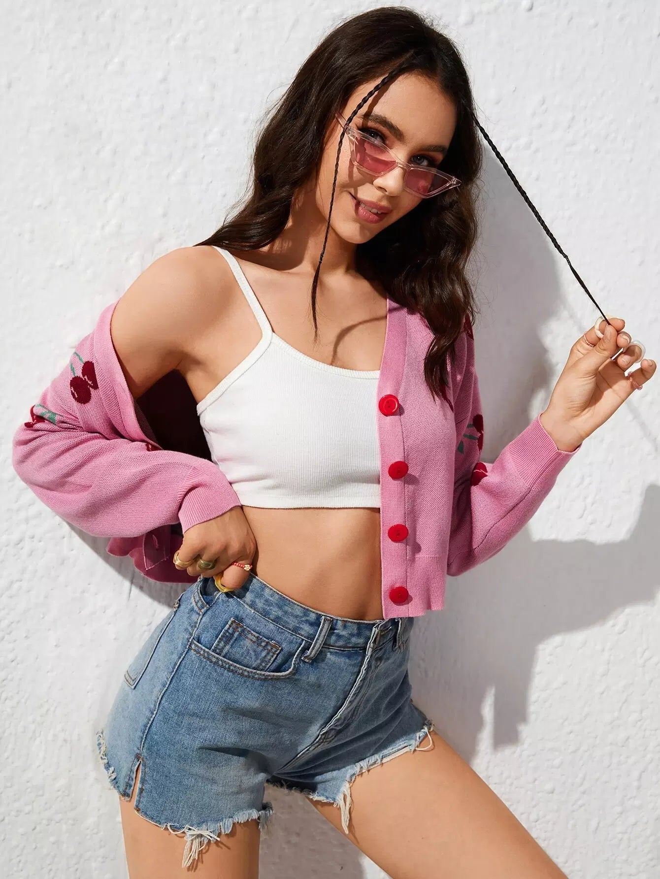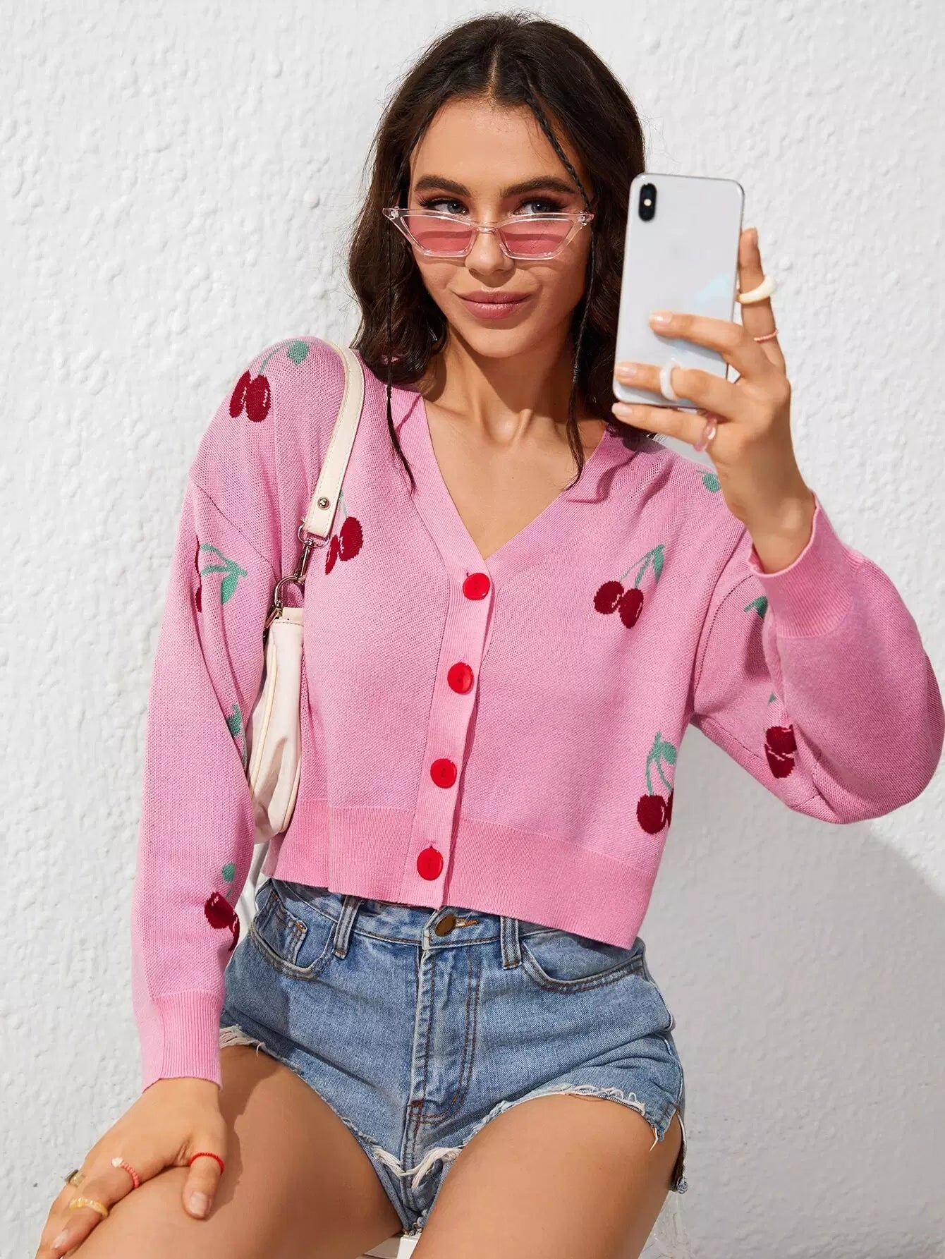 كارديغان منسدل الكتفين مطبوع عليه كرز
