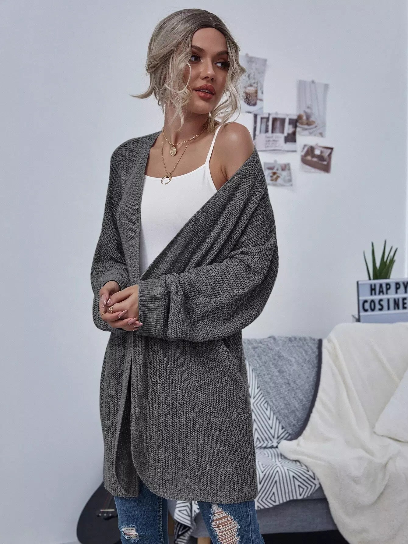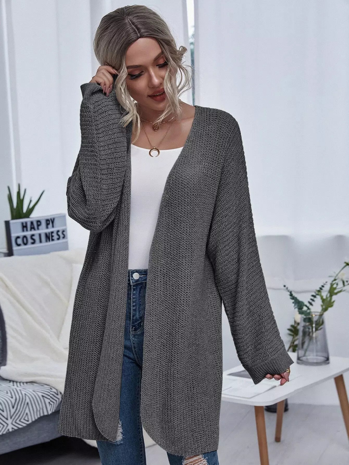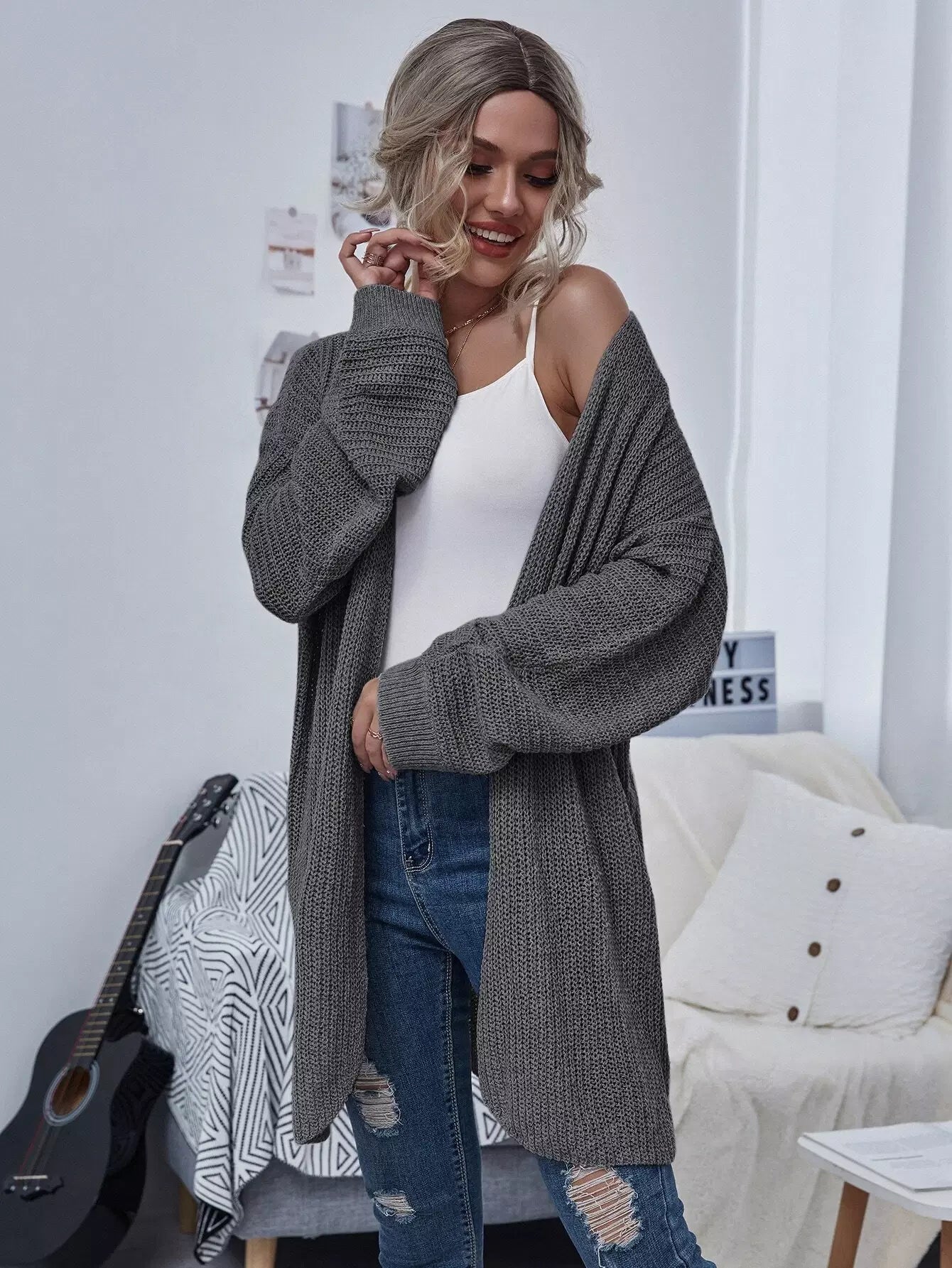 سترة صوفية محبوكة مكتنزة مفتوحة من الأمام