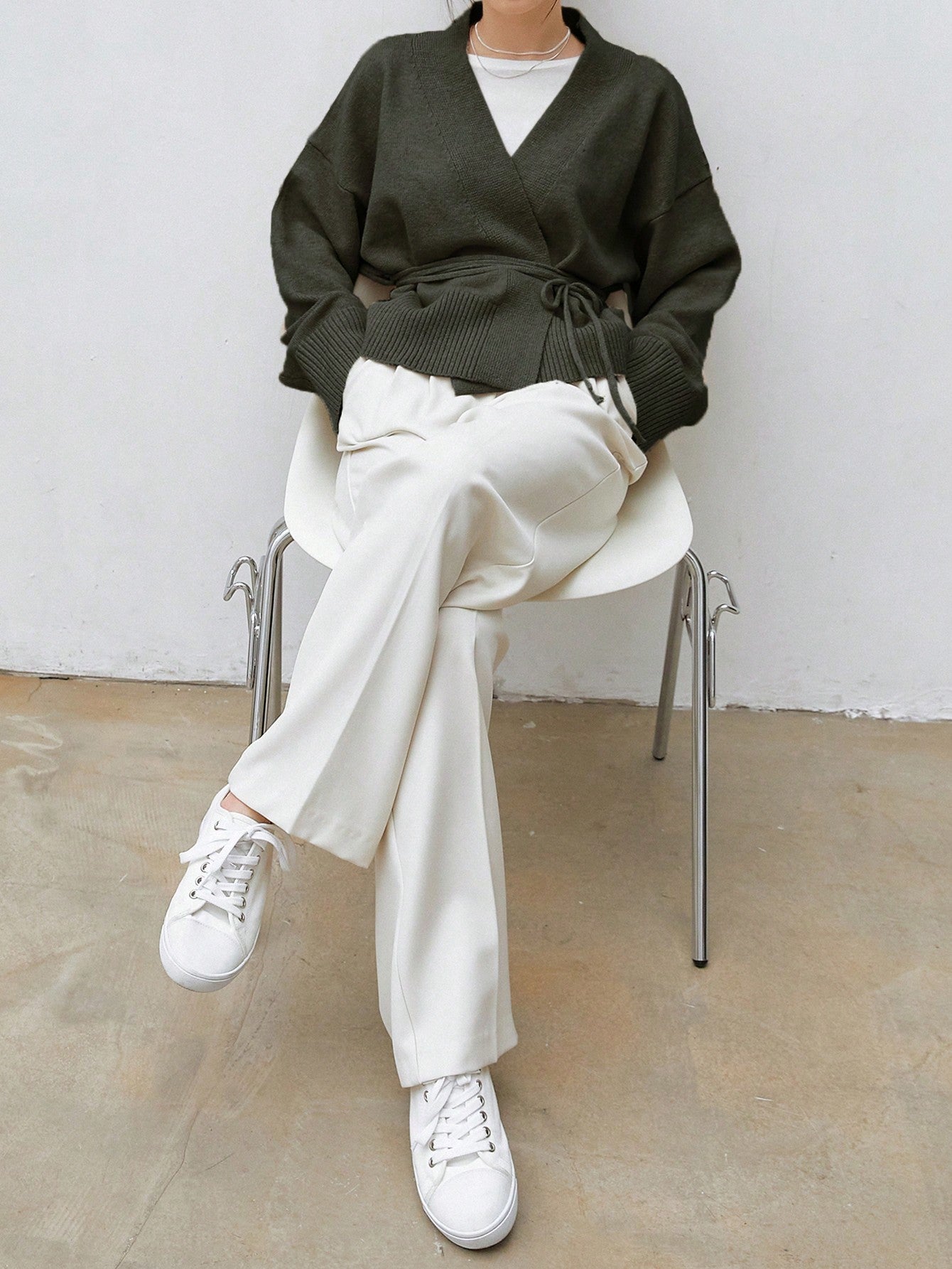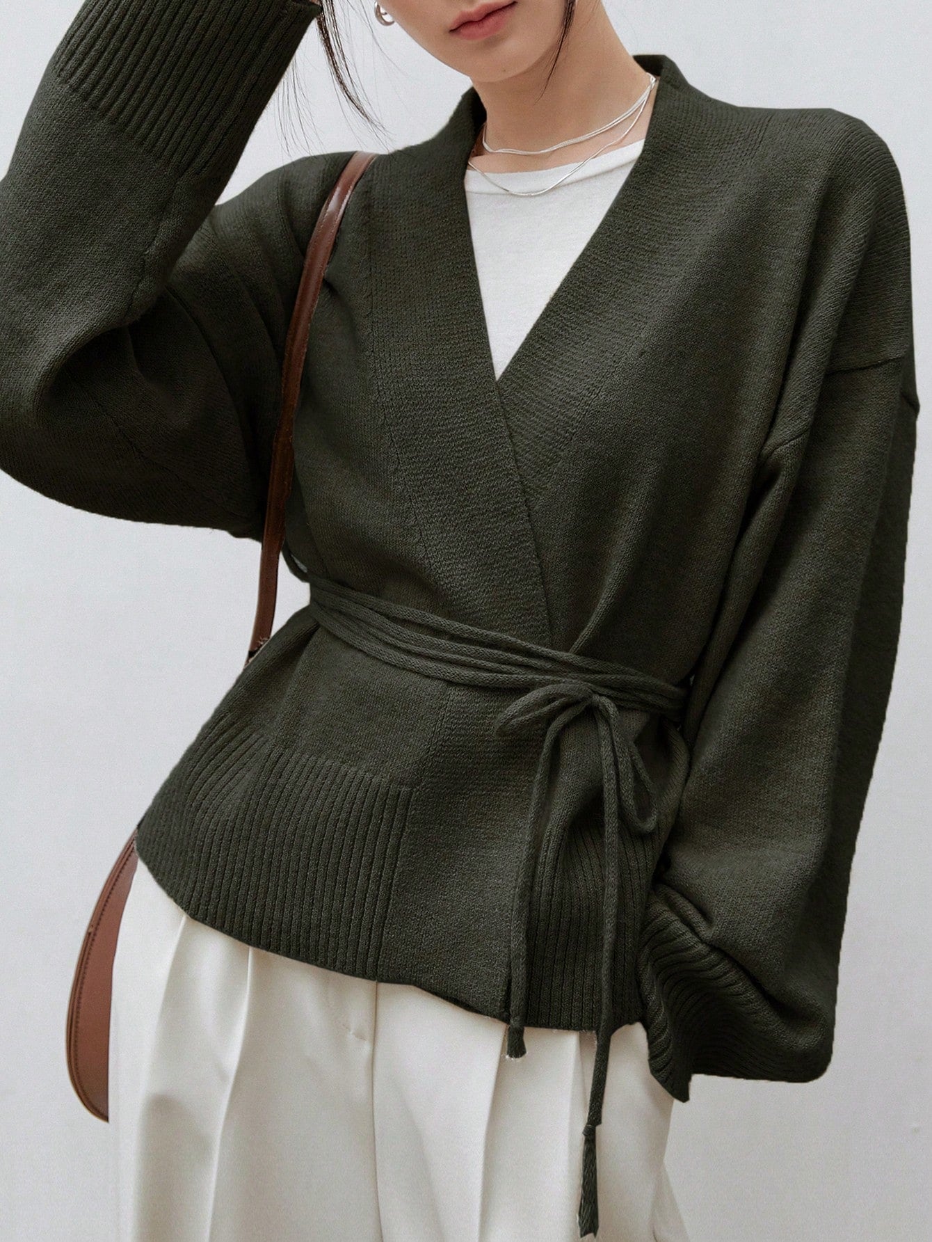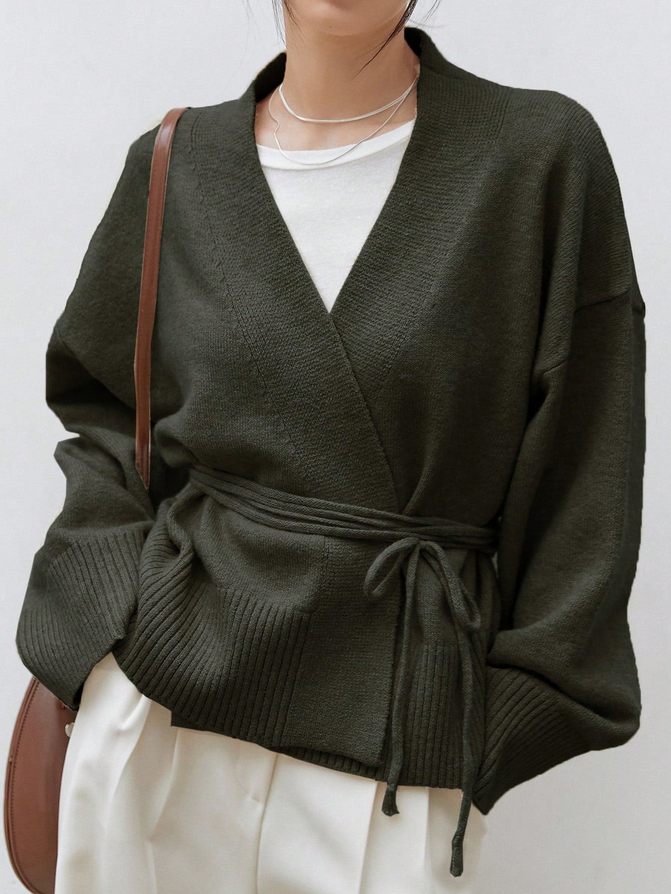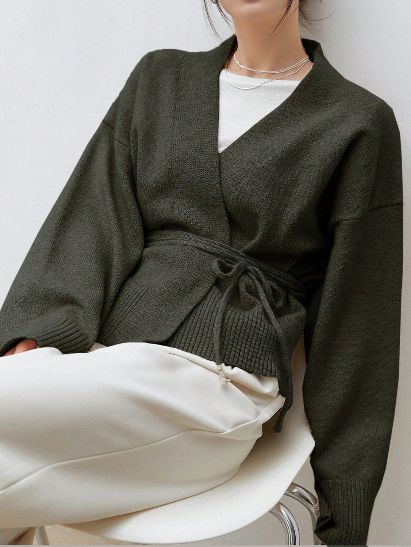 women Dazy-Less Drop Shoulder Belted Cardigan