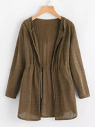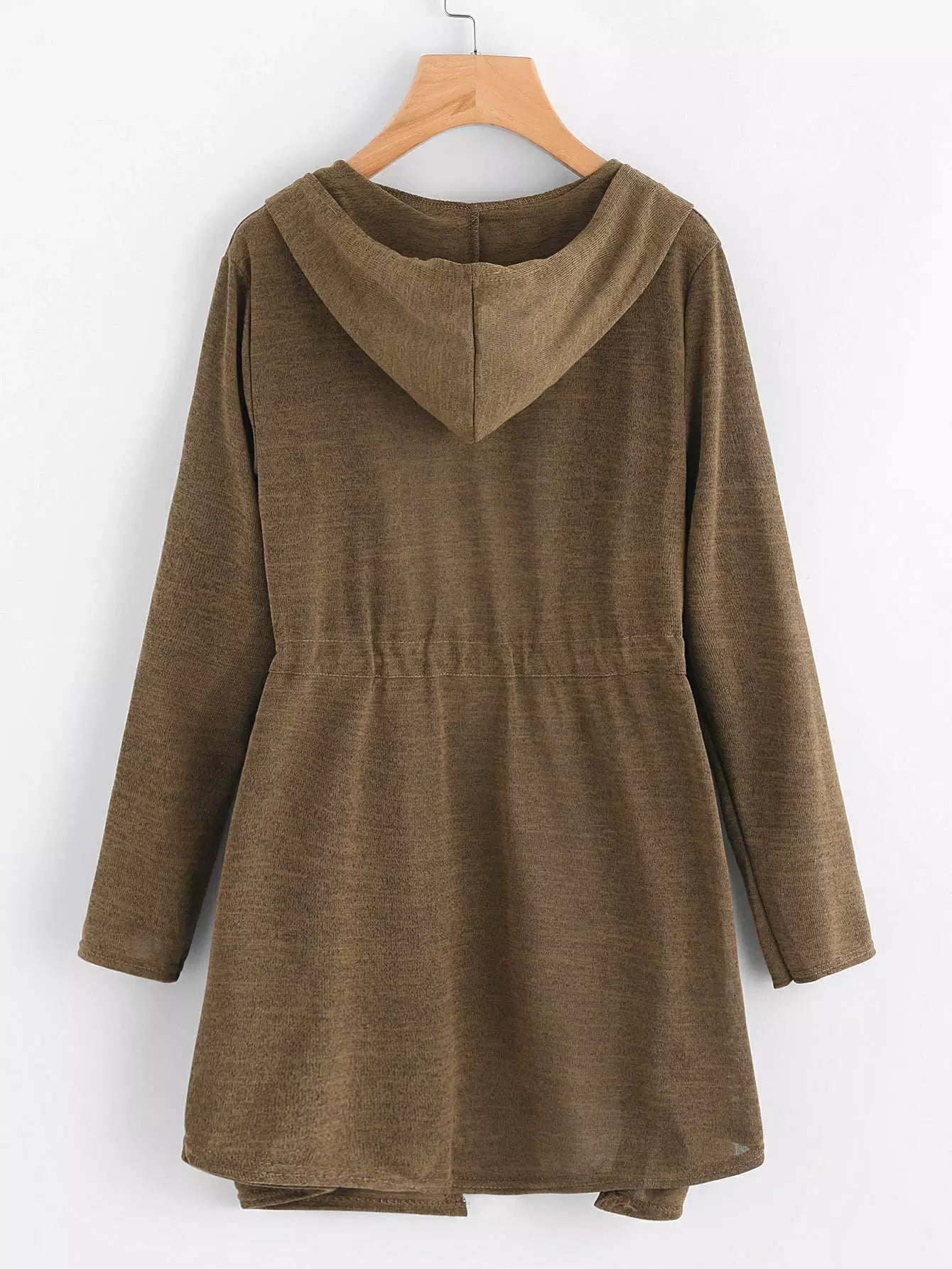 النساء - سترة صوفية بغطاء للرأس على الخصر برباط
