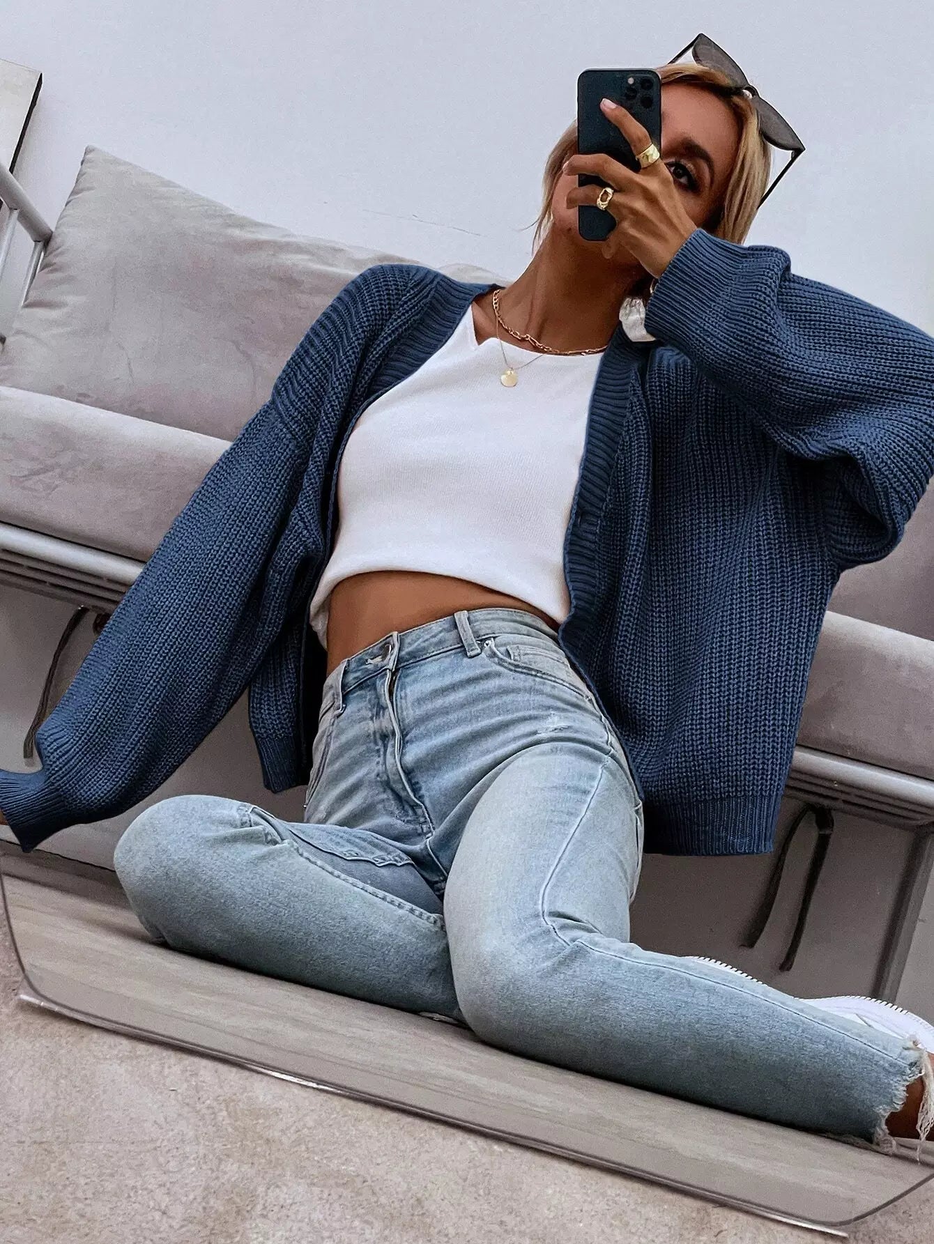 كارديجان بأزرار بأزرار منسدلة الكتفين