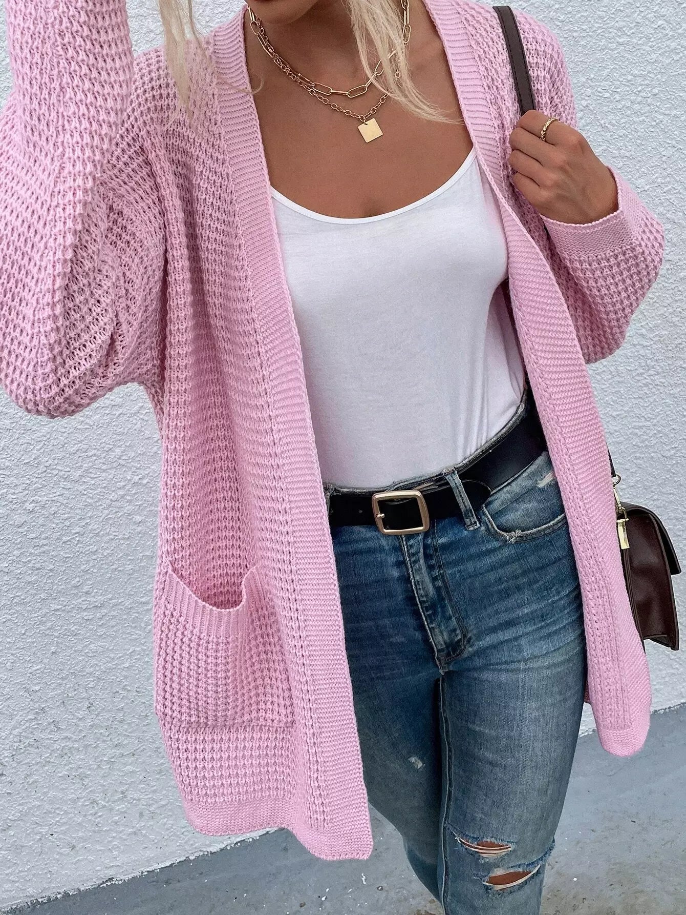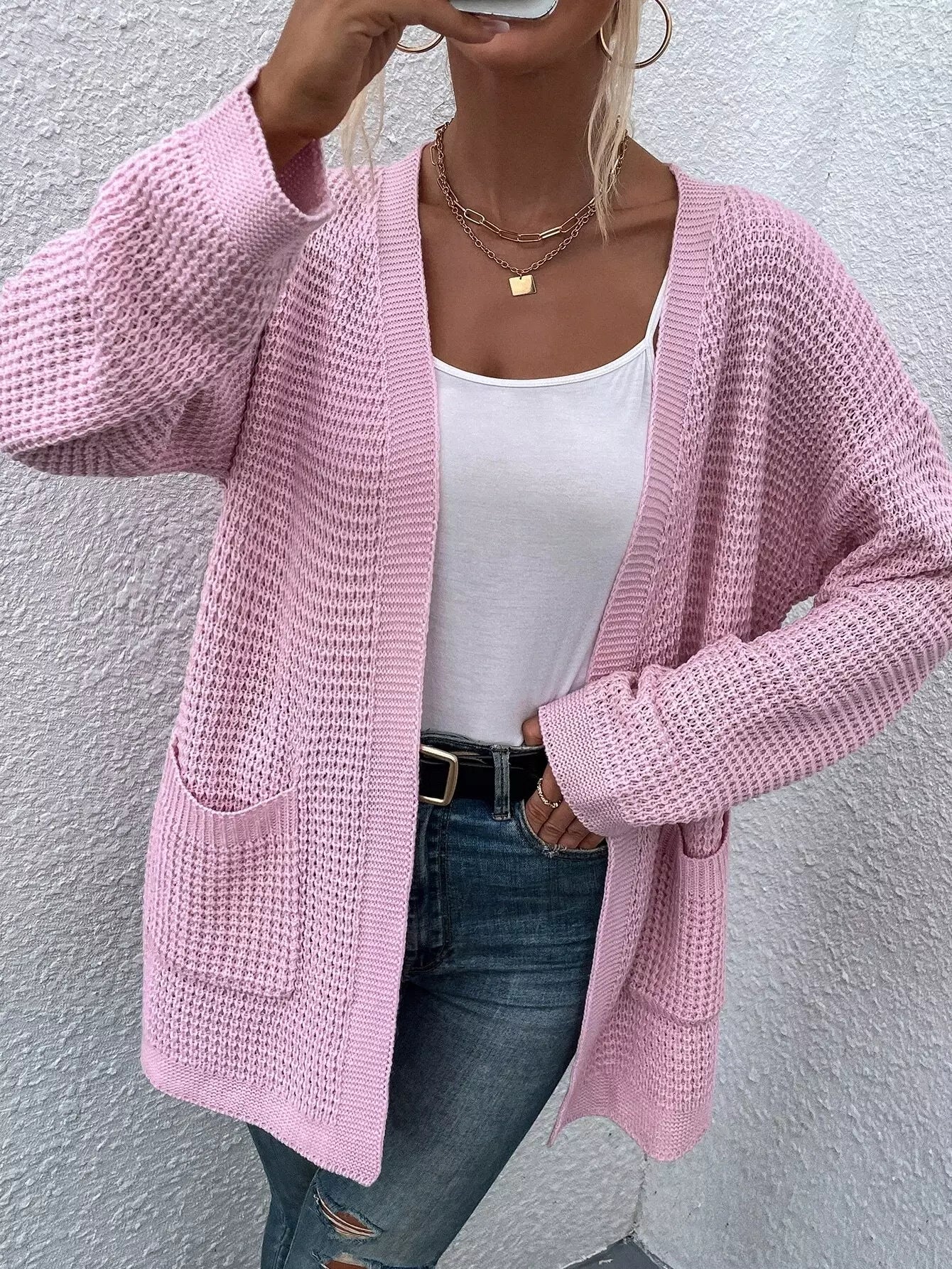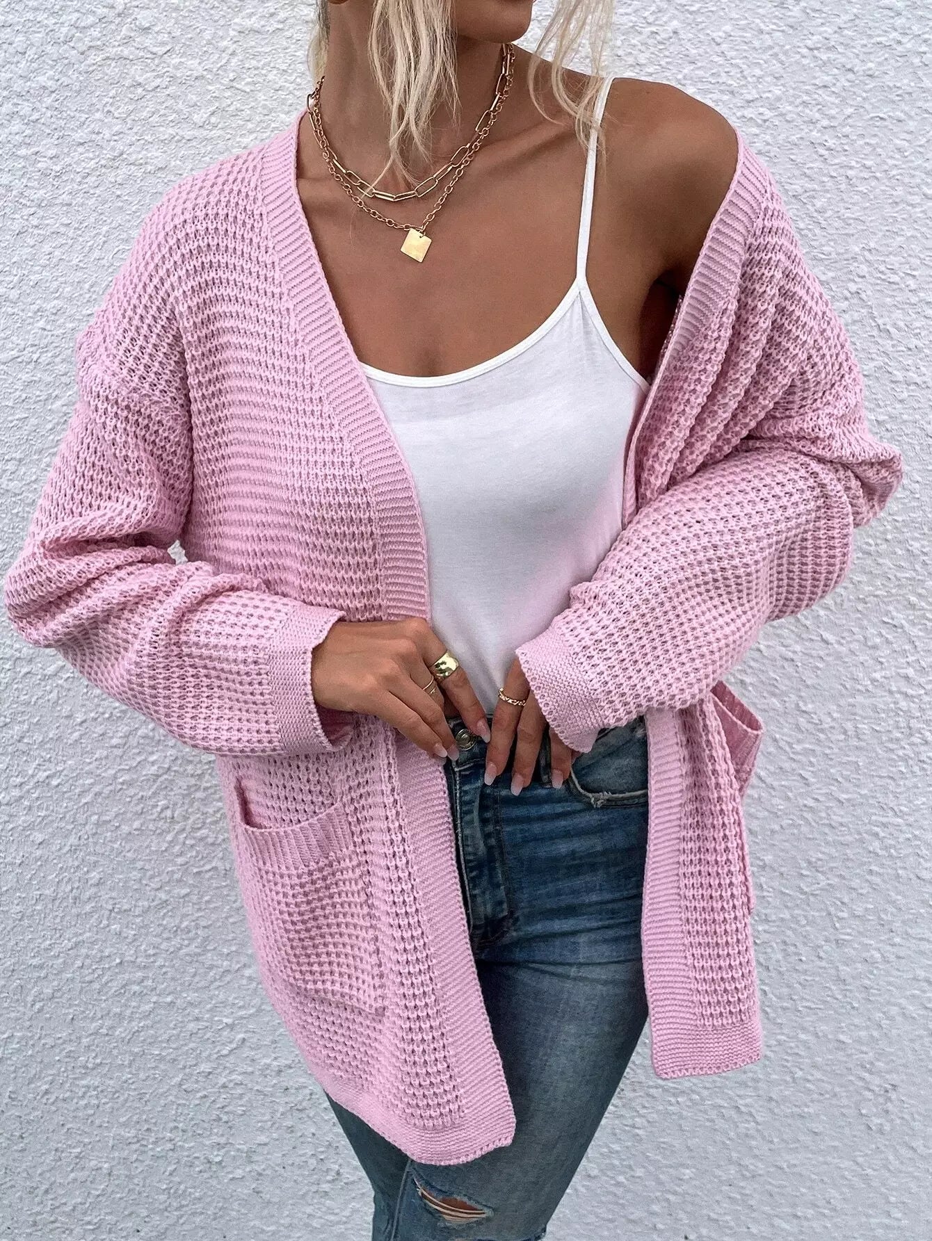 كارديجان منسدل الكتفين مزدوج الجيب