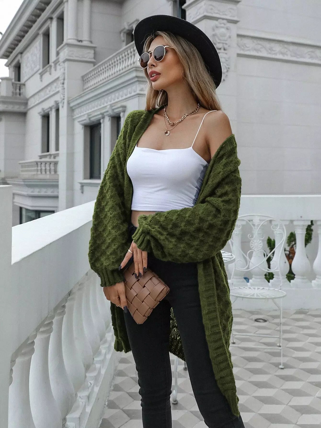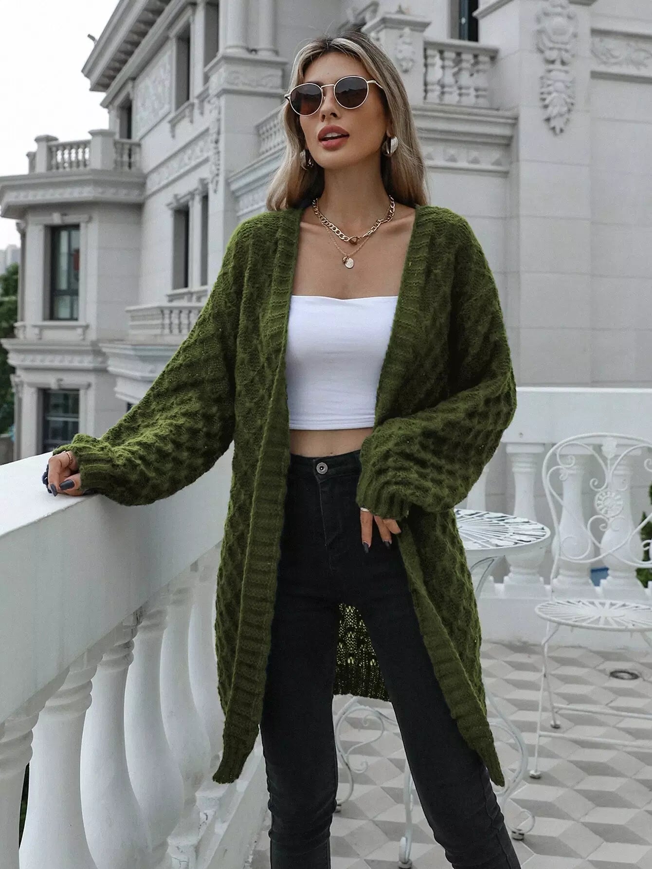 كارديجان مفتوح منسدل الكتفين مفتوح من الأمام
