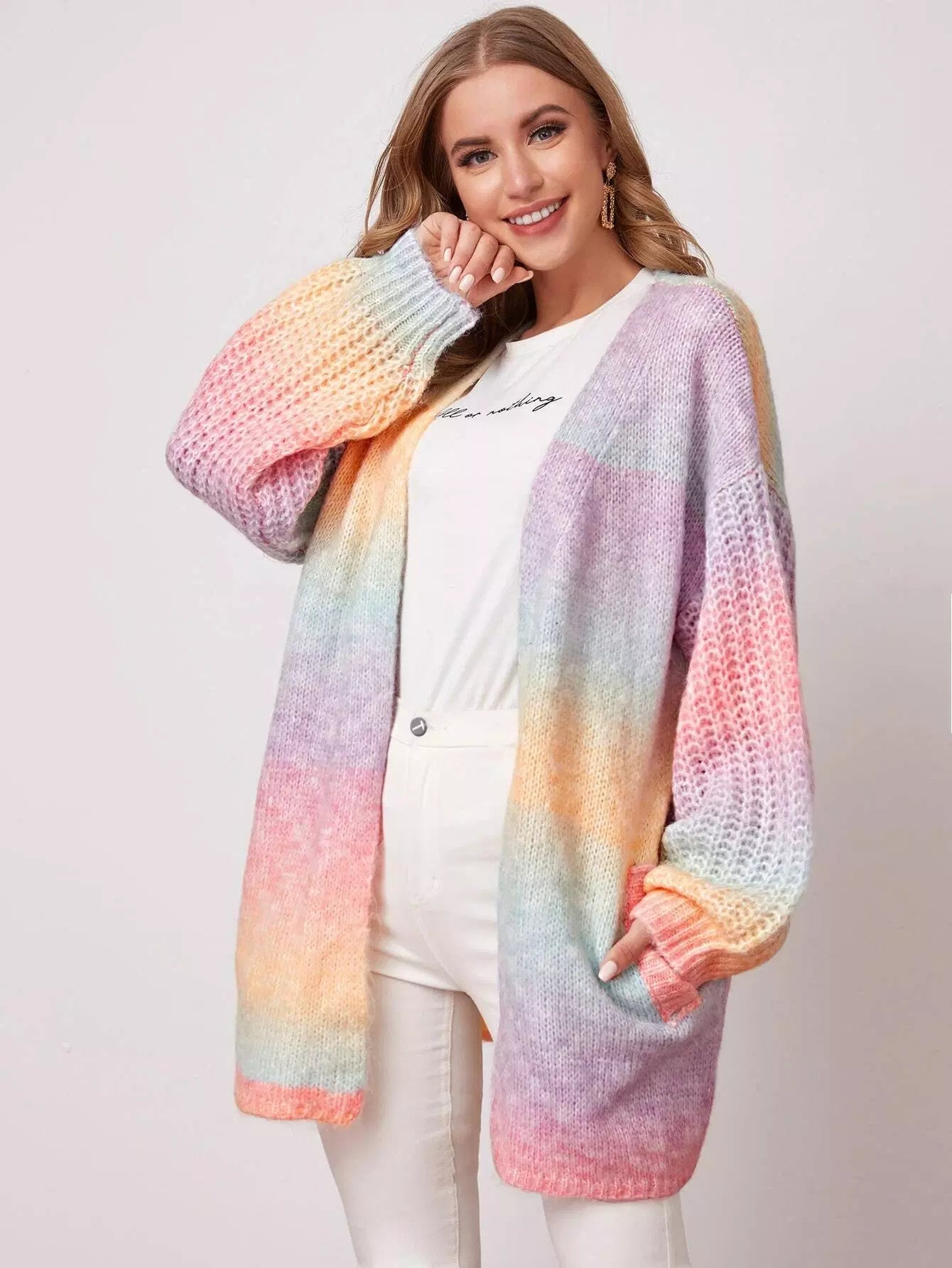 كارديجان منسدل الكتف مائل الجيب مصبوغ بربطة عنق صوفية