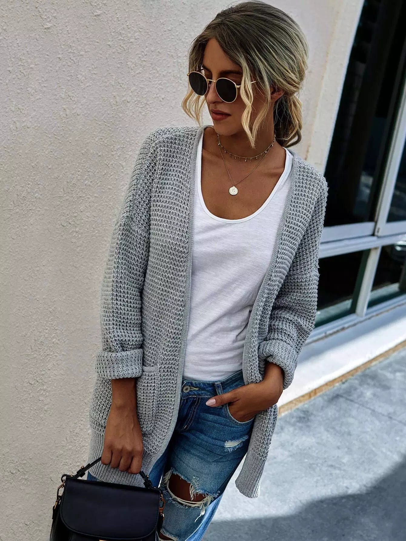 كارديجان بجيوب مزدوجة منسدل الكتفين