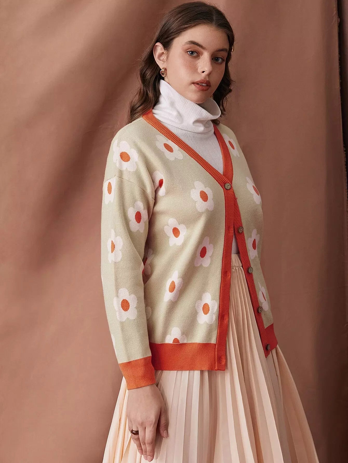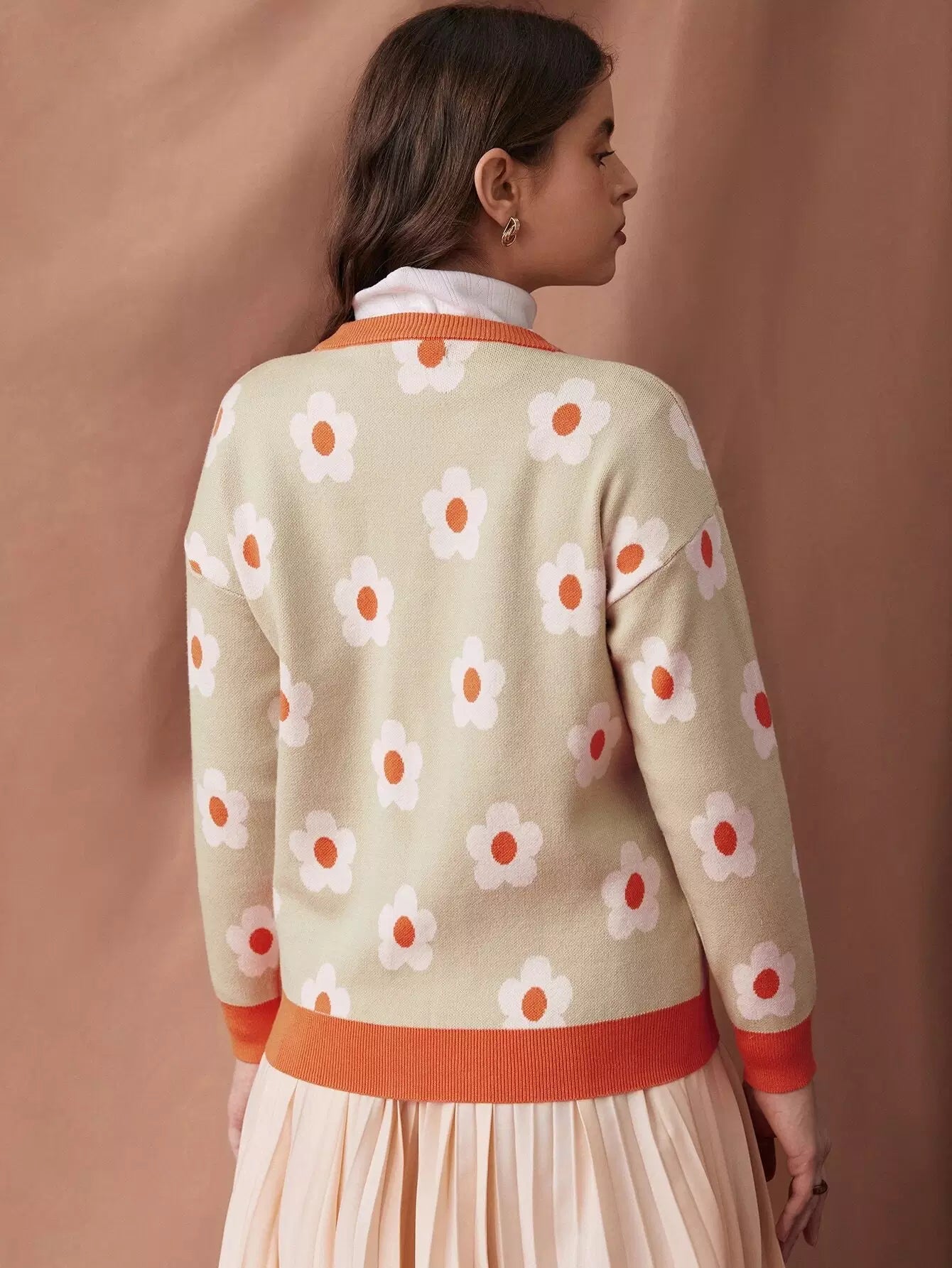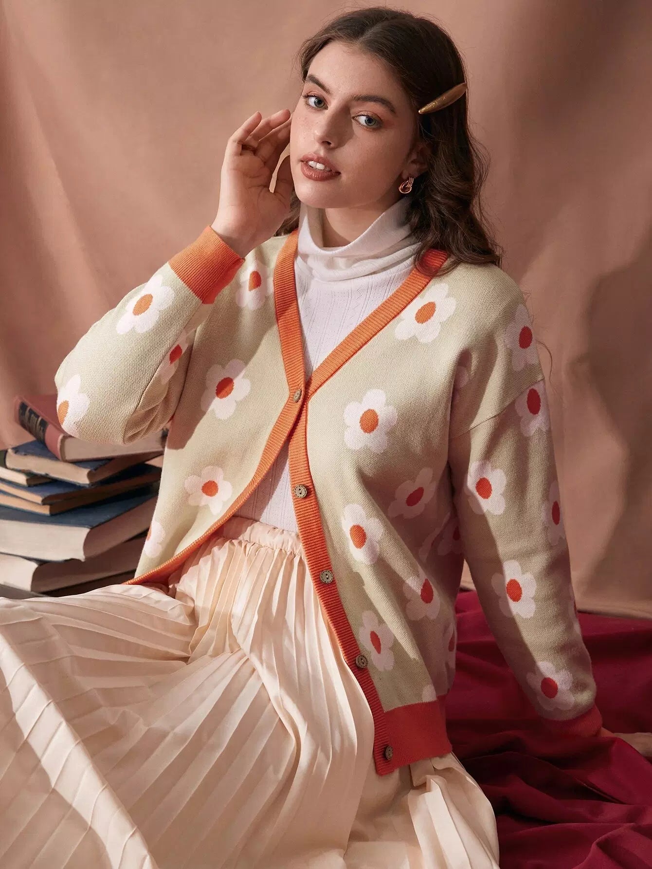 كارديجان منسدل الكتف بنقشة زهور بدون بلوزة