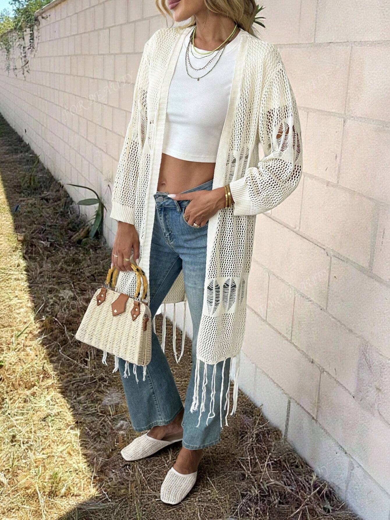 من أجل الجمال، مهرجان موسيقي جديد للربيع والصيف، بلوزة نسائية بوهيمية مجوفة رفيعة بأكمام طويلة محبوكة
