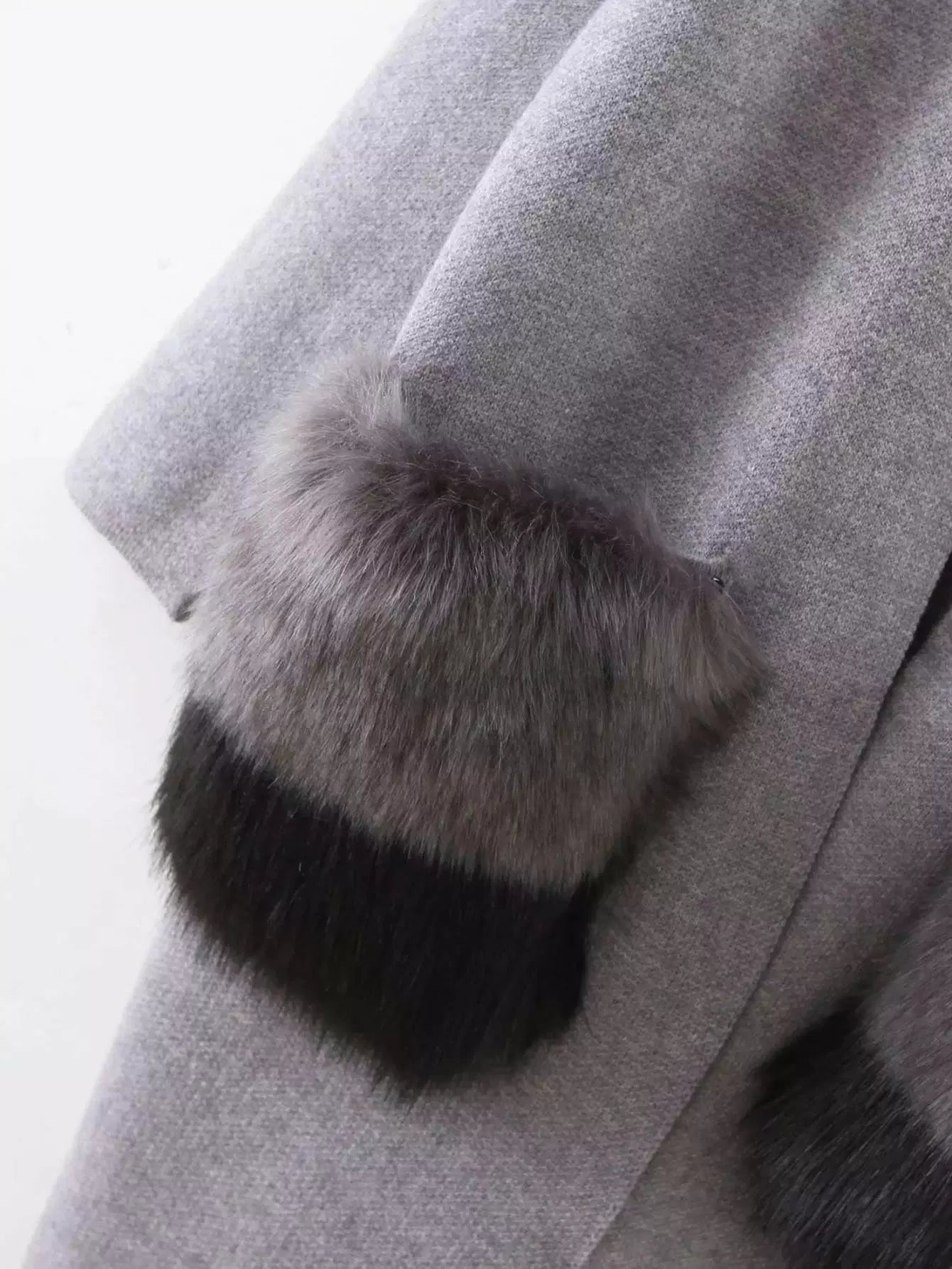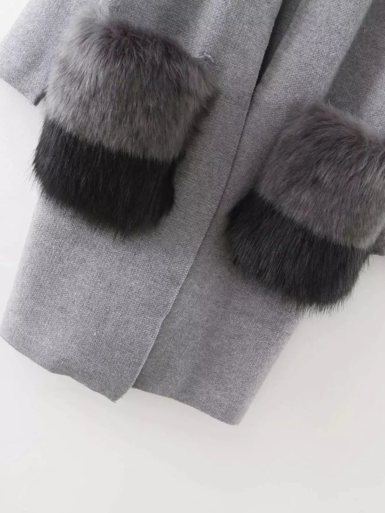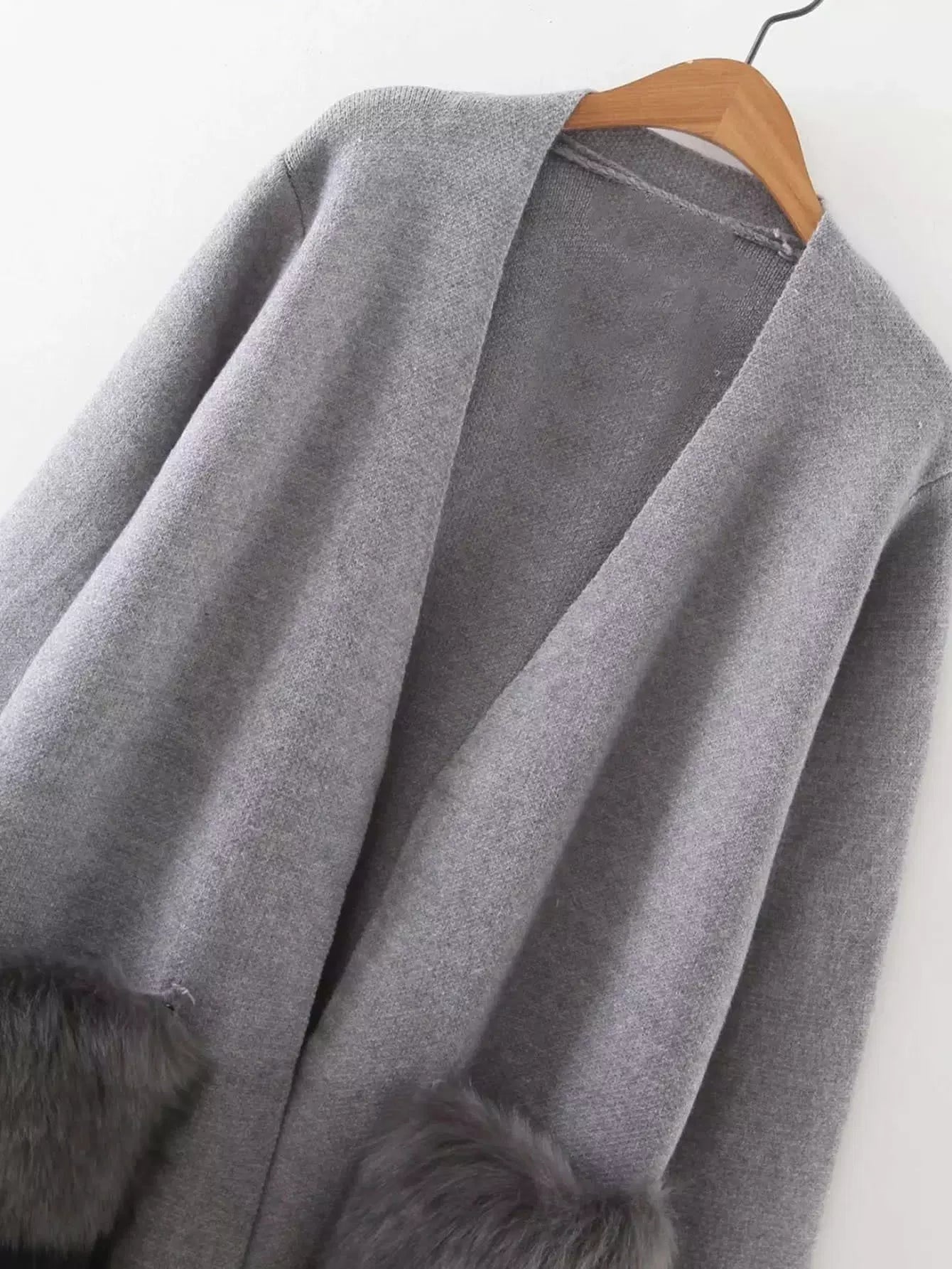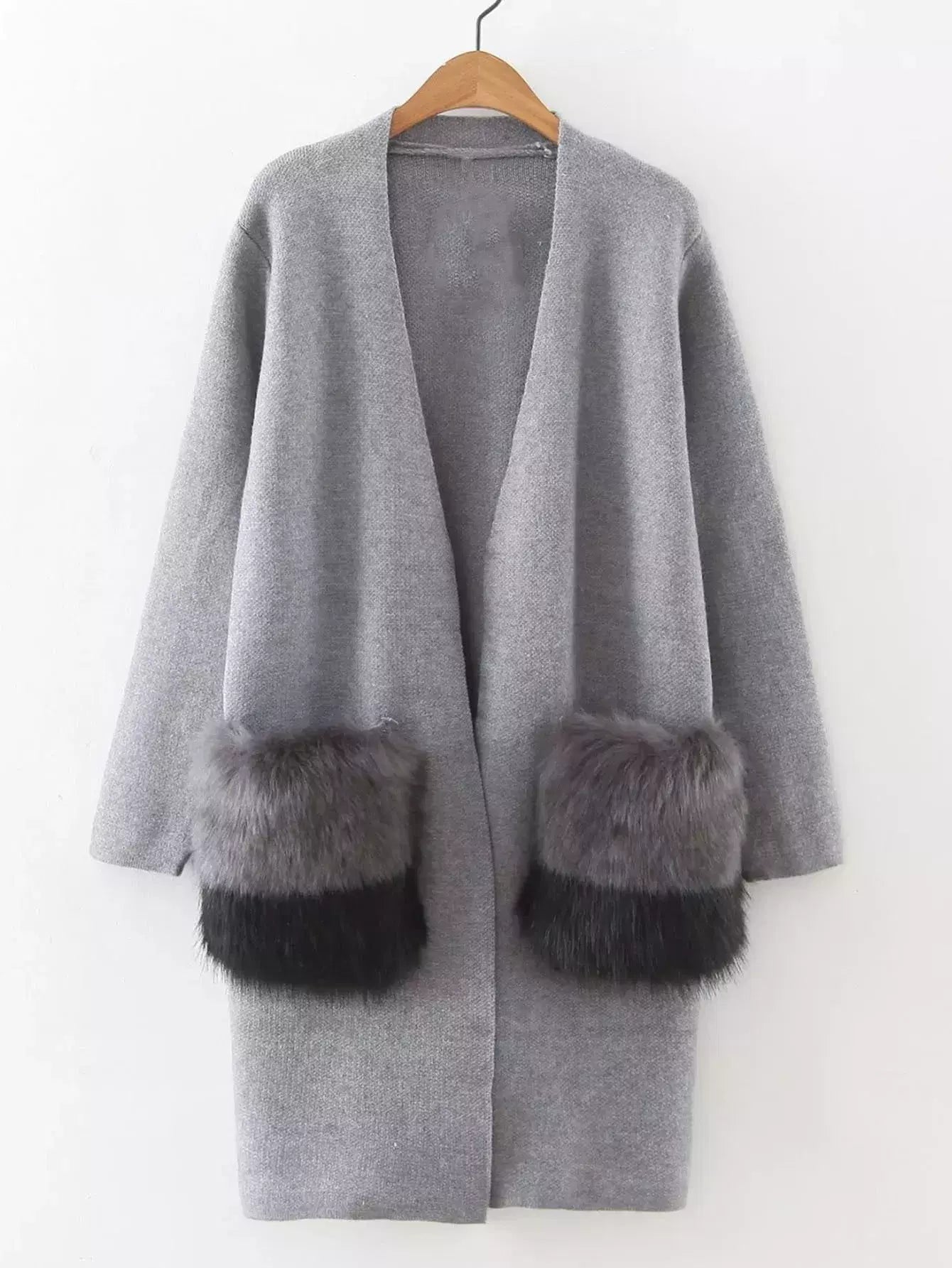 للنساء - سترة صوفية طويلة بجيب مزخرف