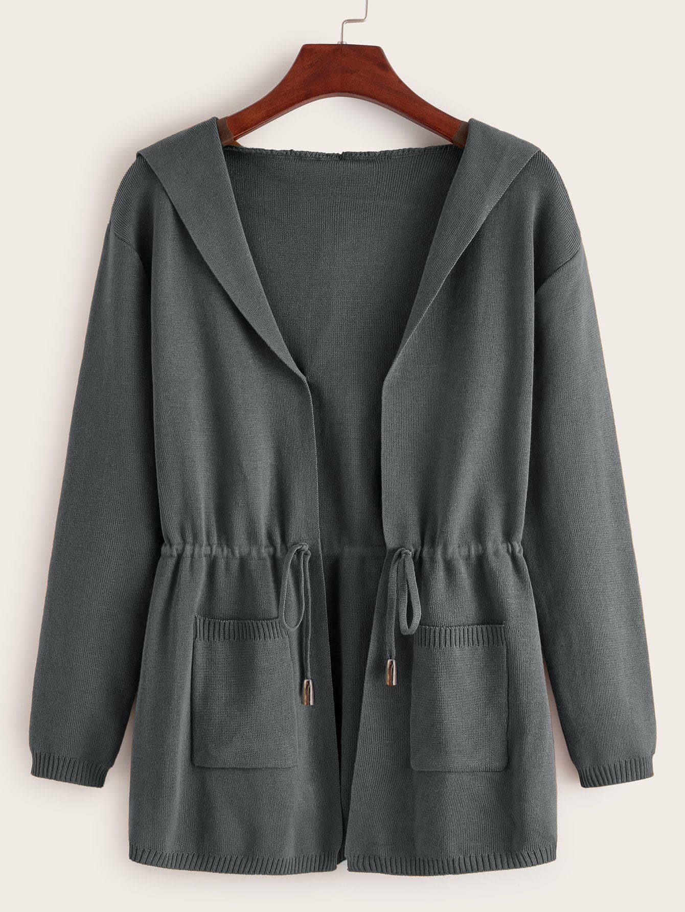 LUNE Dual Pockets Drawstring Waist Hooded Cardigan