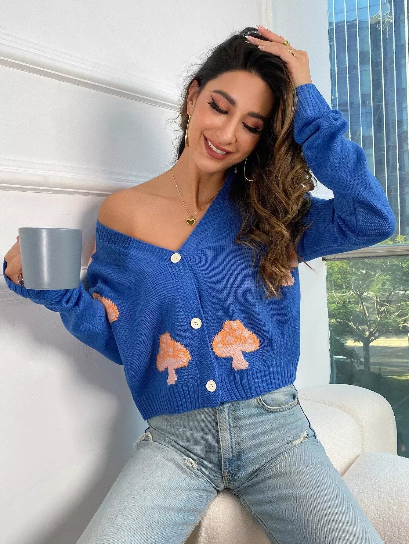 كارديجان منسدل الكتف بنقشة الفطر