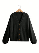 كارديجان أومانسيا أبيض بأكمام فانوس وأزرار أمامية وقصة فضفاضة مضلعة