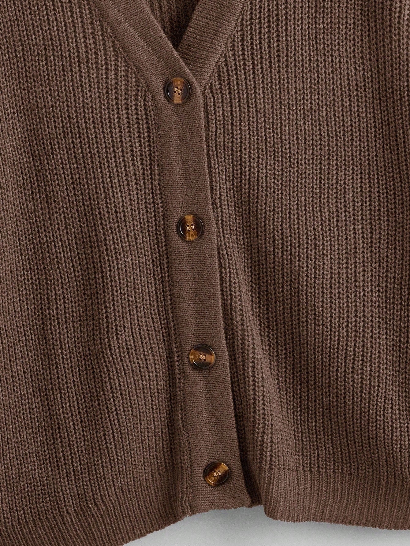 كارديجان أومانسيا أبيض بأكمام فانوس وأزرار أمامية وقصة فضفاضة مضلعة