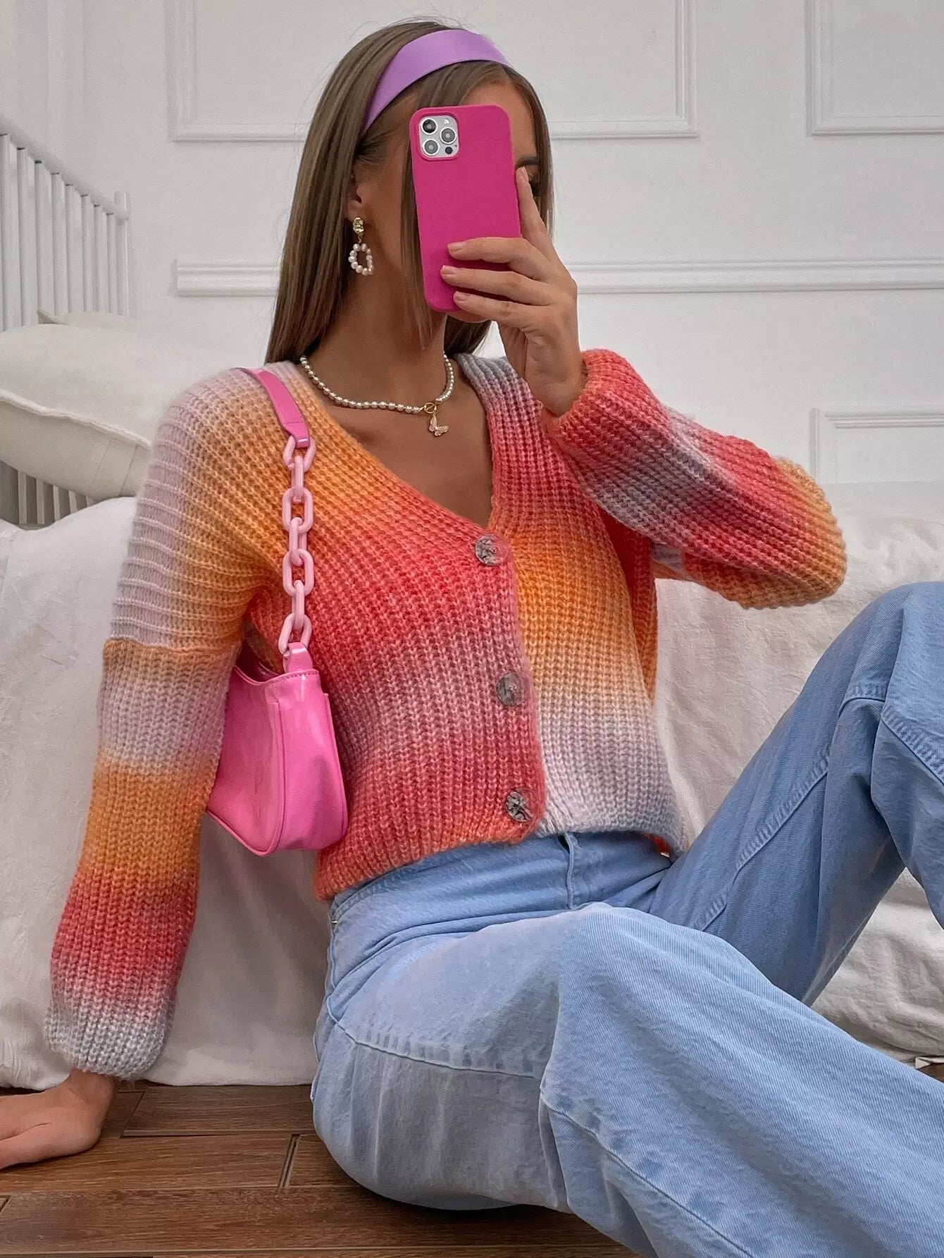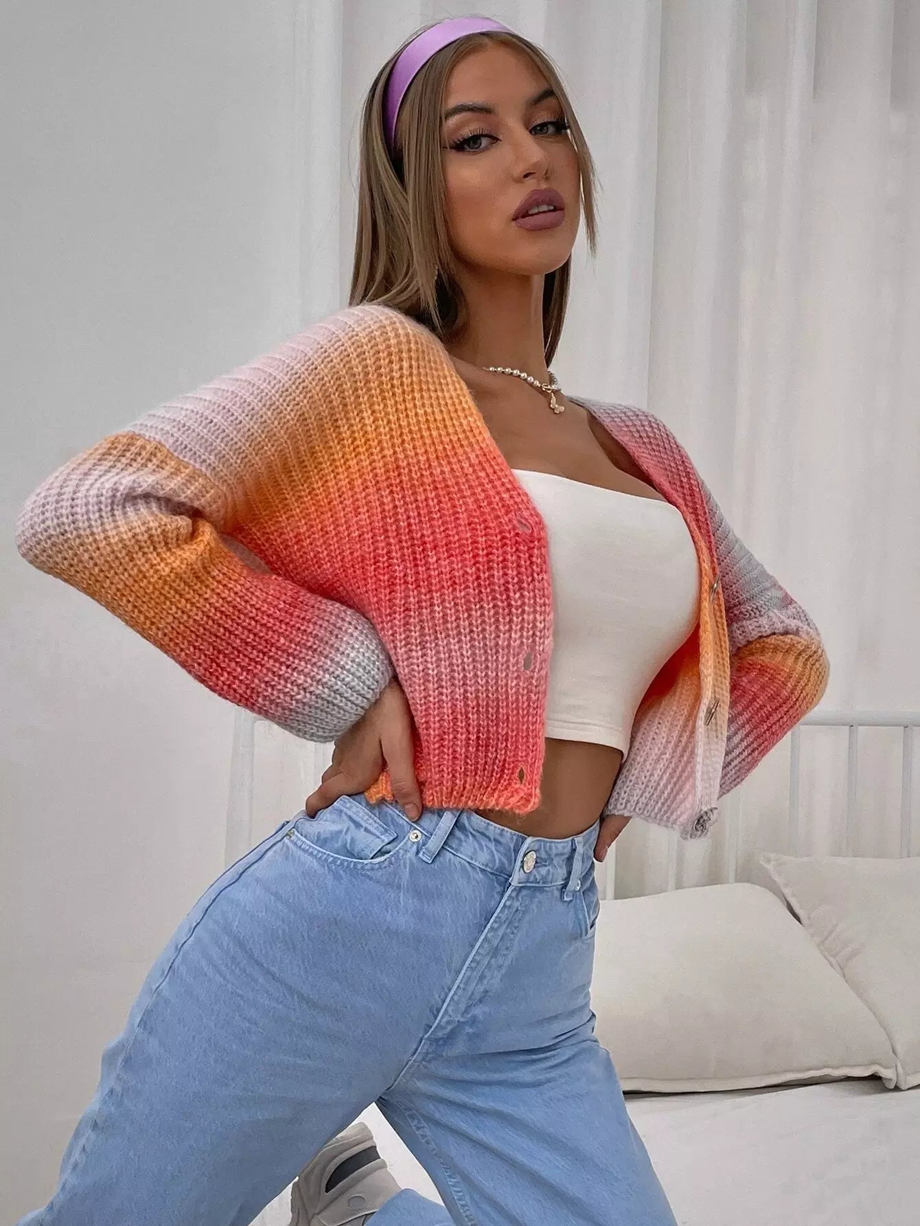 كارديغان قصير بياقة على شكل أزرار على شكل V برقبة على شكل أومبير
