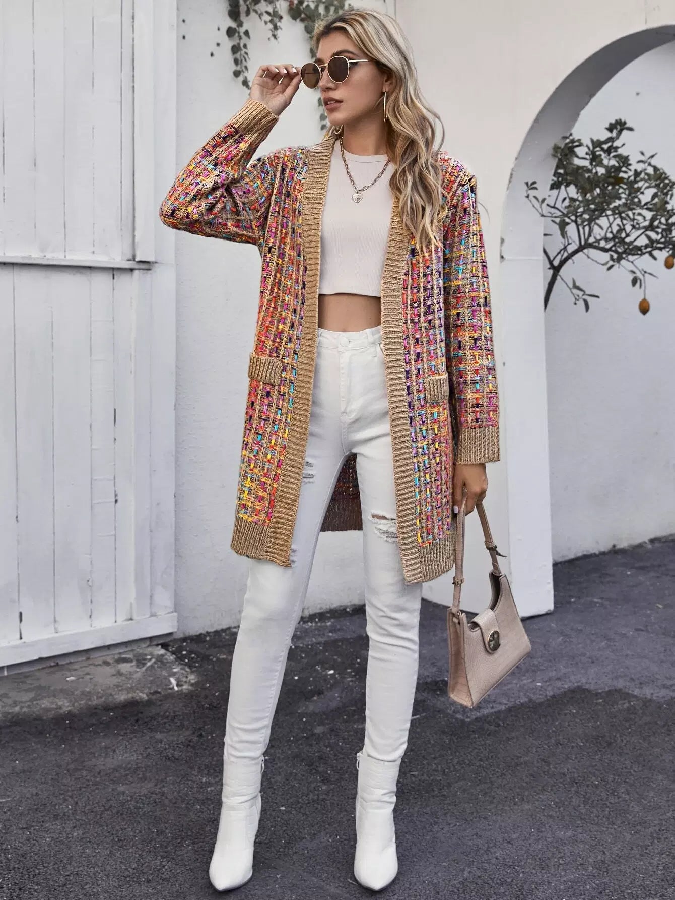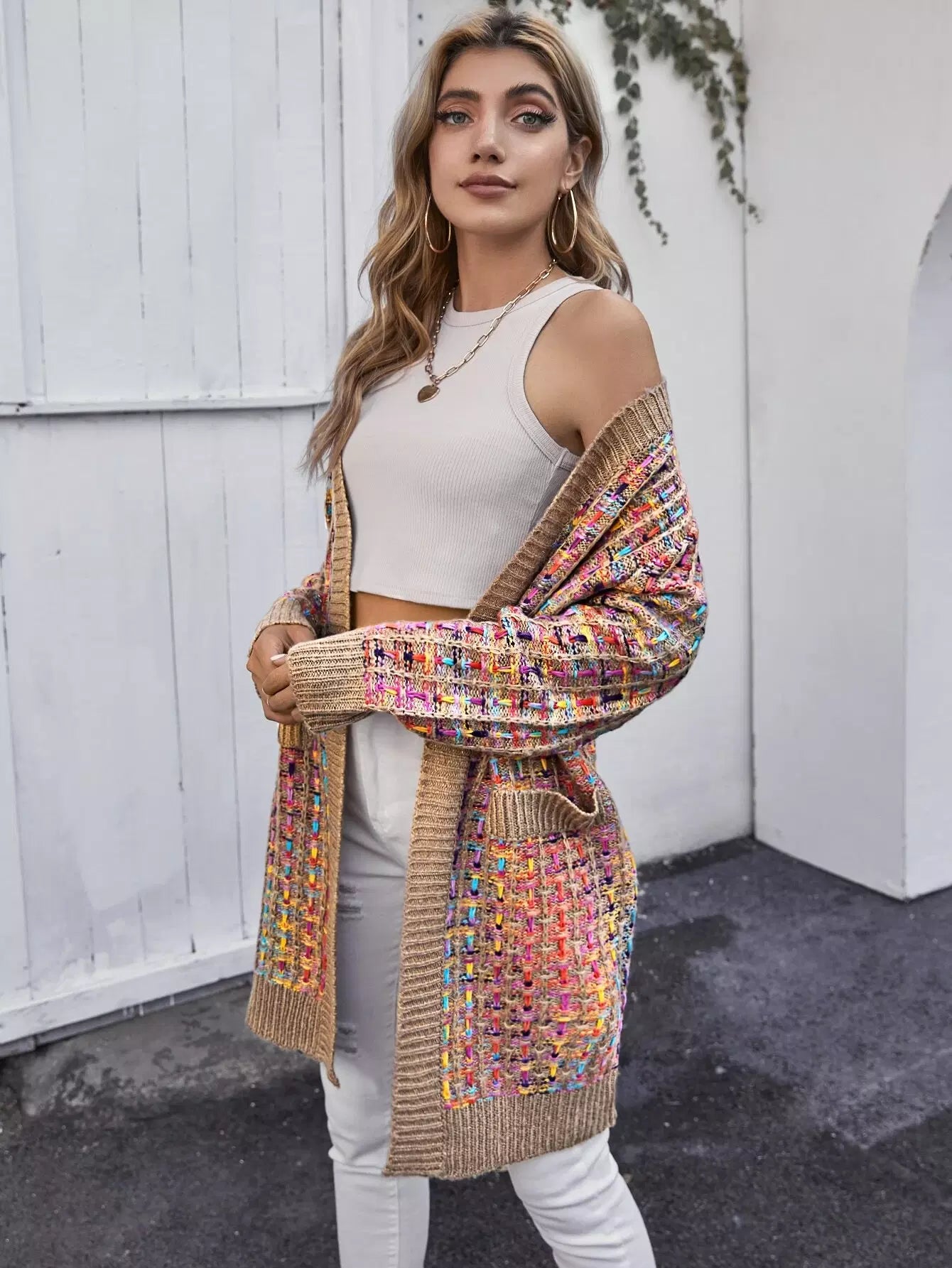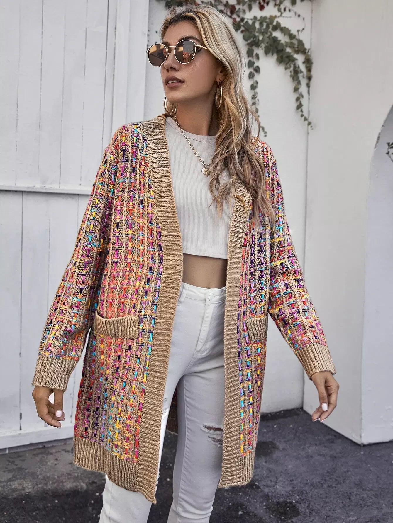 سترة صوفية مفتوحة من الأمام بجيوب مفتوحة من الأمام