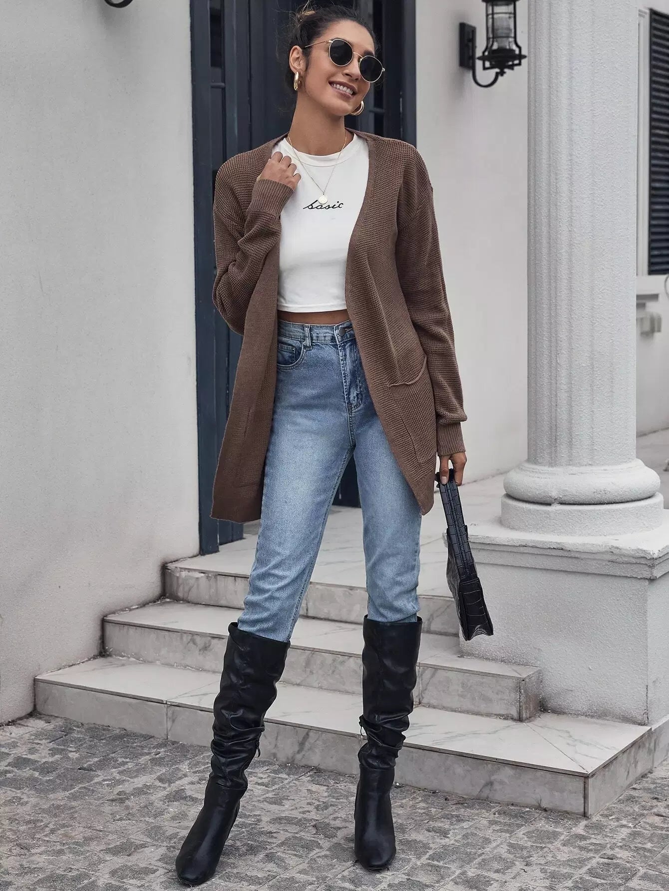كارديجان صوفي بشق جيب مفتوح الحاشية