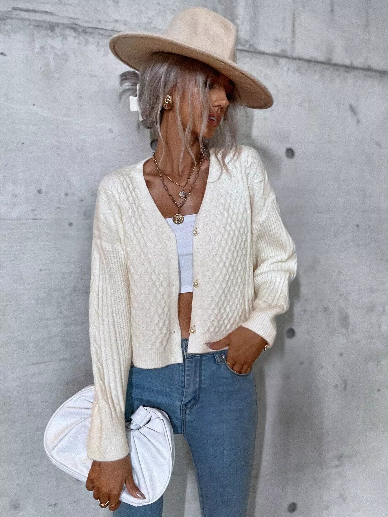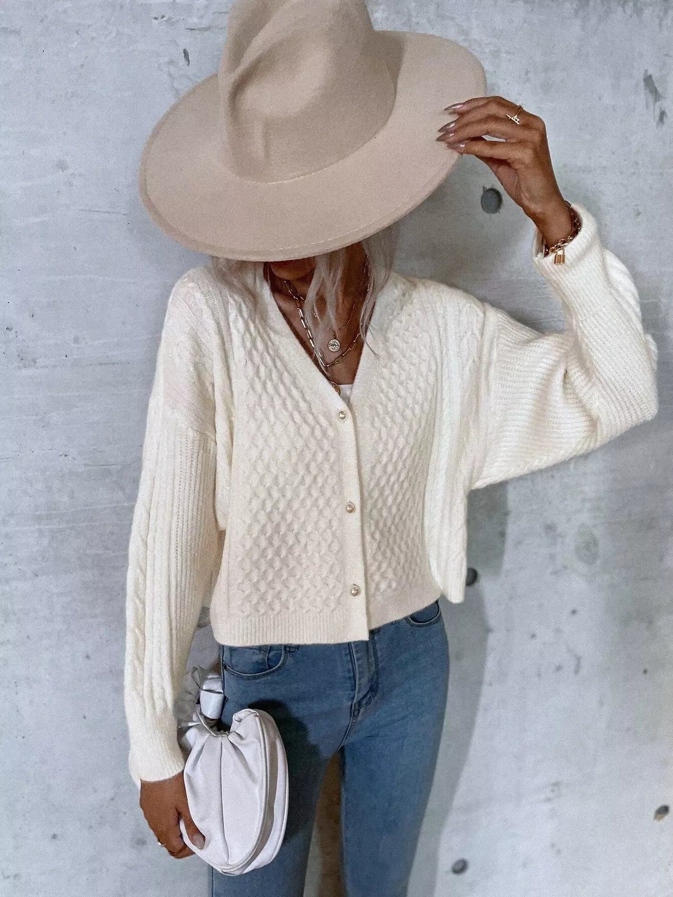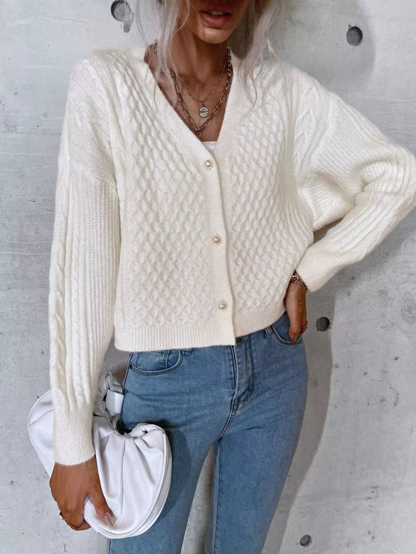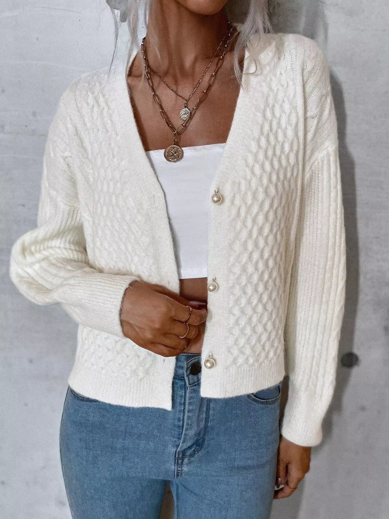 كارديجان بأزرار لؤلؤية بأكمام منسدلة الأكتاف بأزرار لؤلؤية