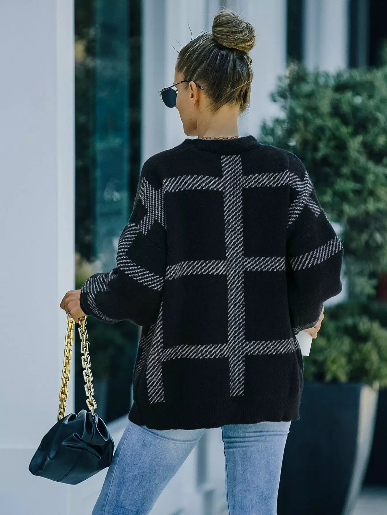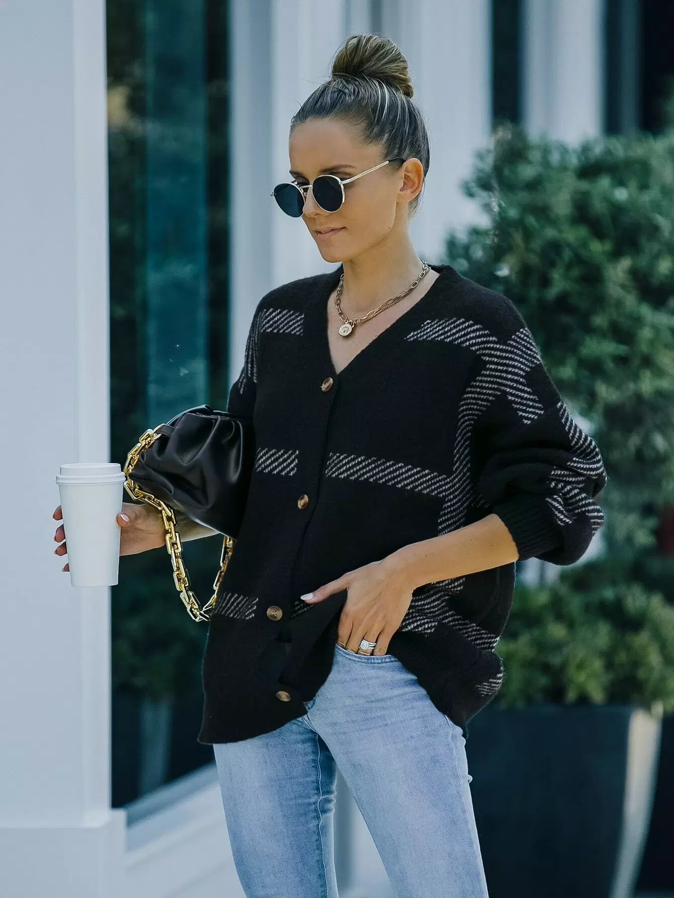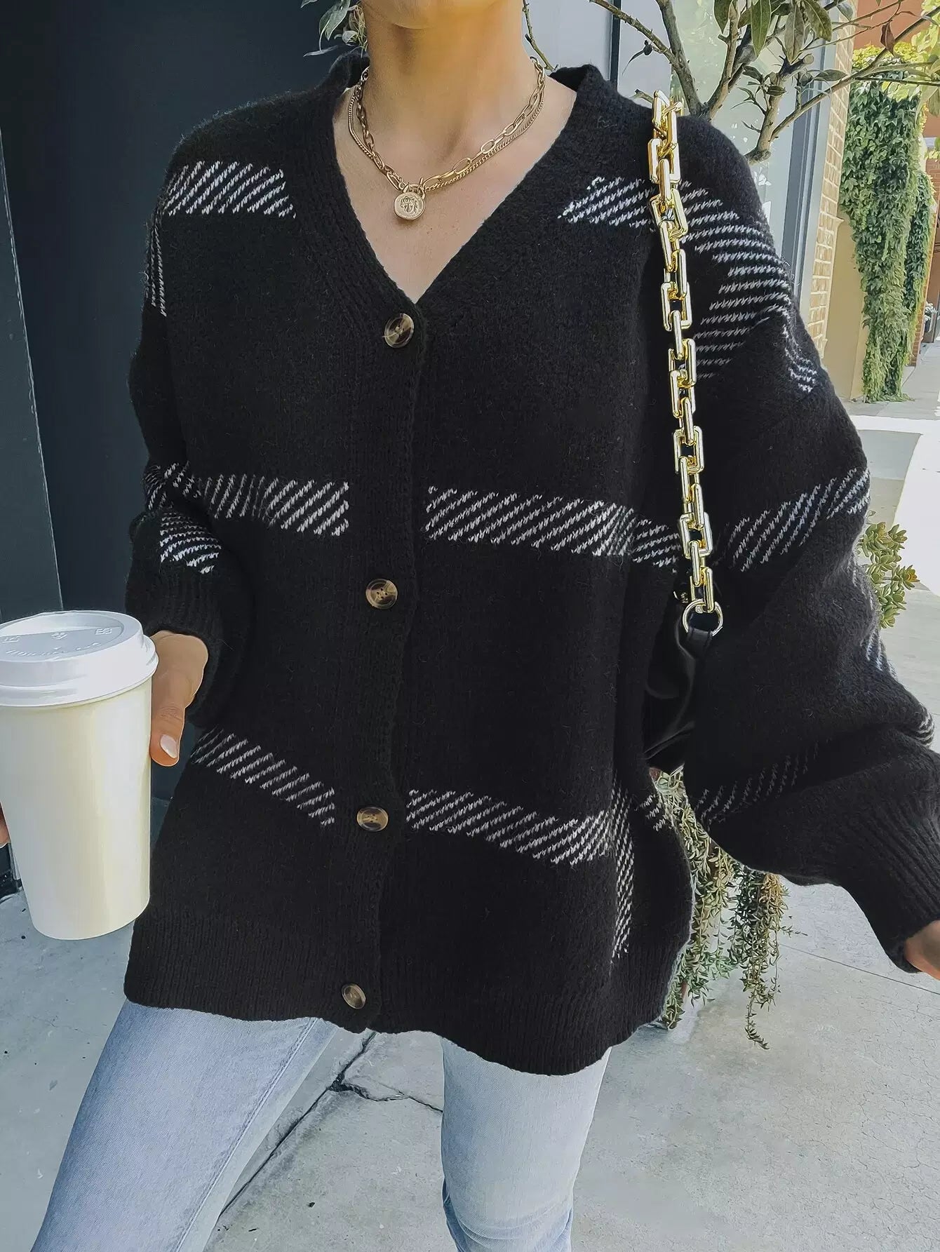 كارديجان منسدل الكتف منقوش بنقشة منسدلة