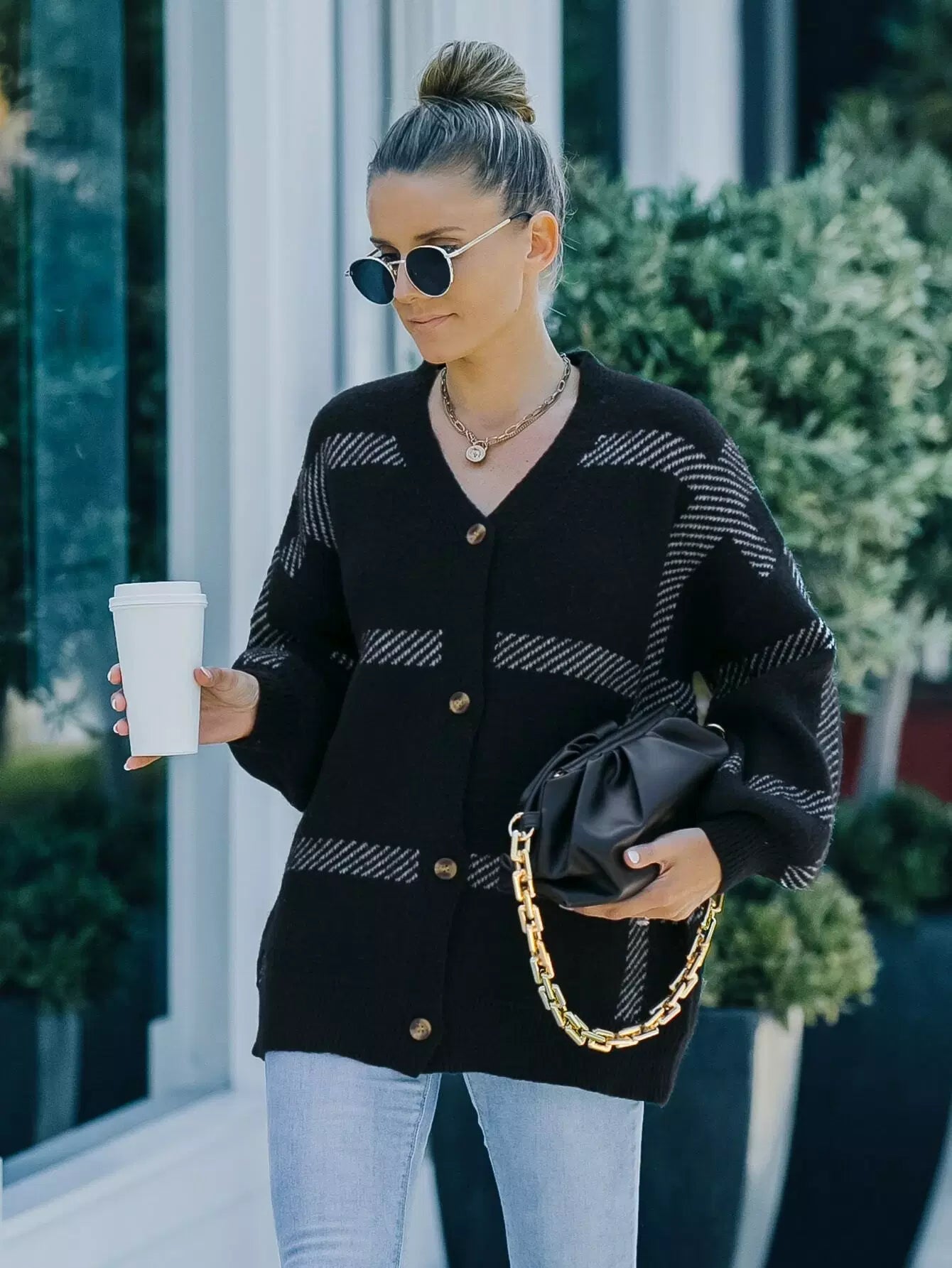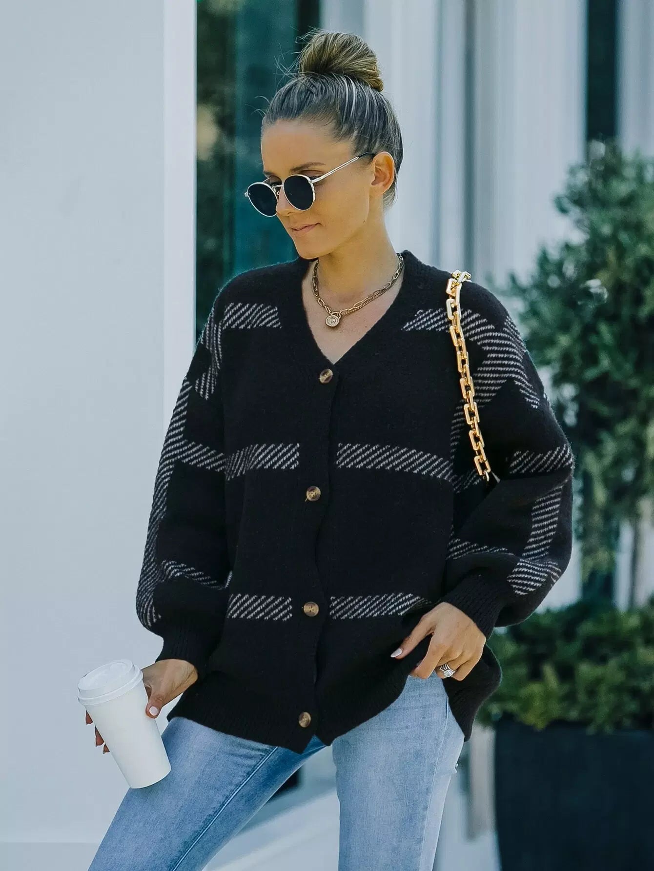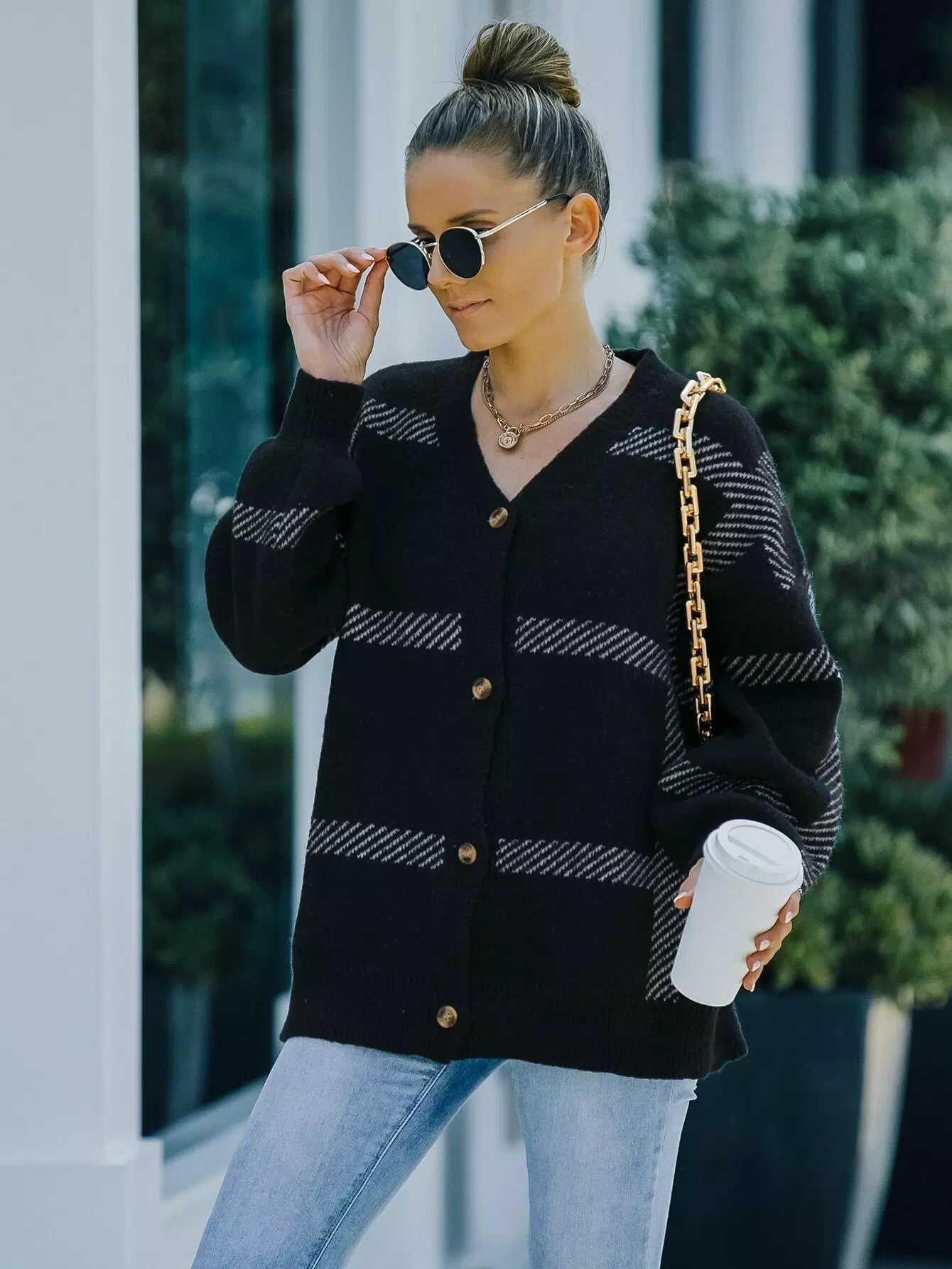 كارديجان منسدل الكتف منقوش بنقشة منسدلة