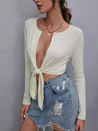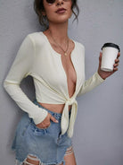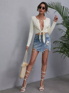 كارديجان برقبة واسعة بفتحة على شكل عقدة أمامية
