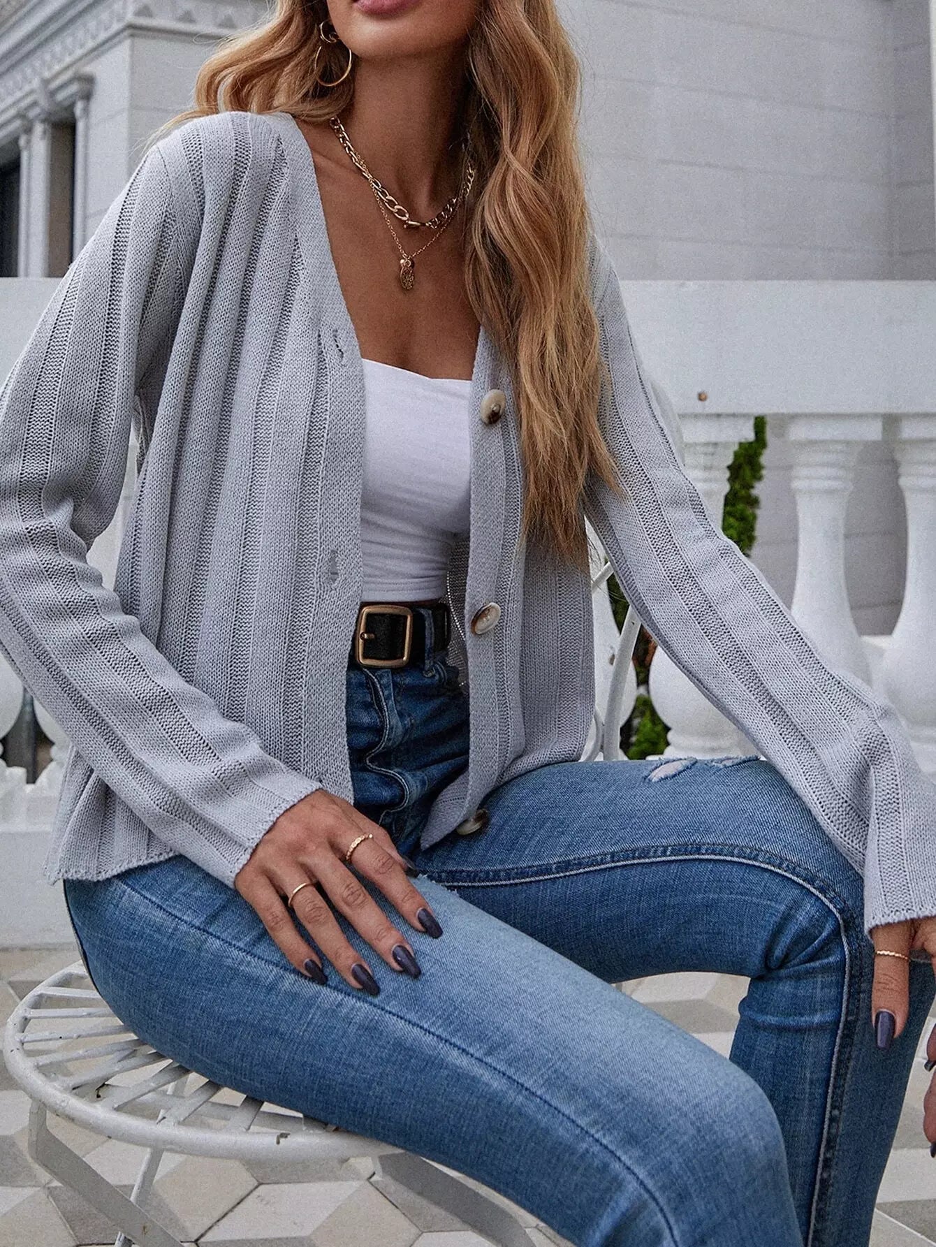 كارديغان محبوك بأزرار أمامية من ضلع محبوك