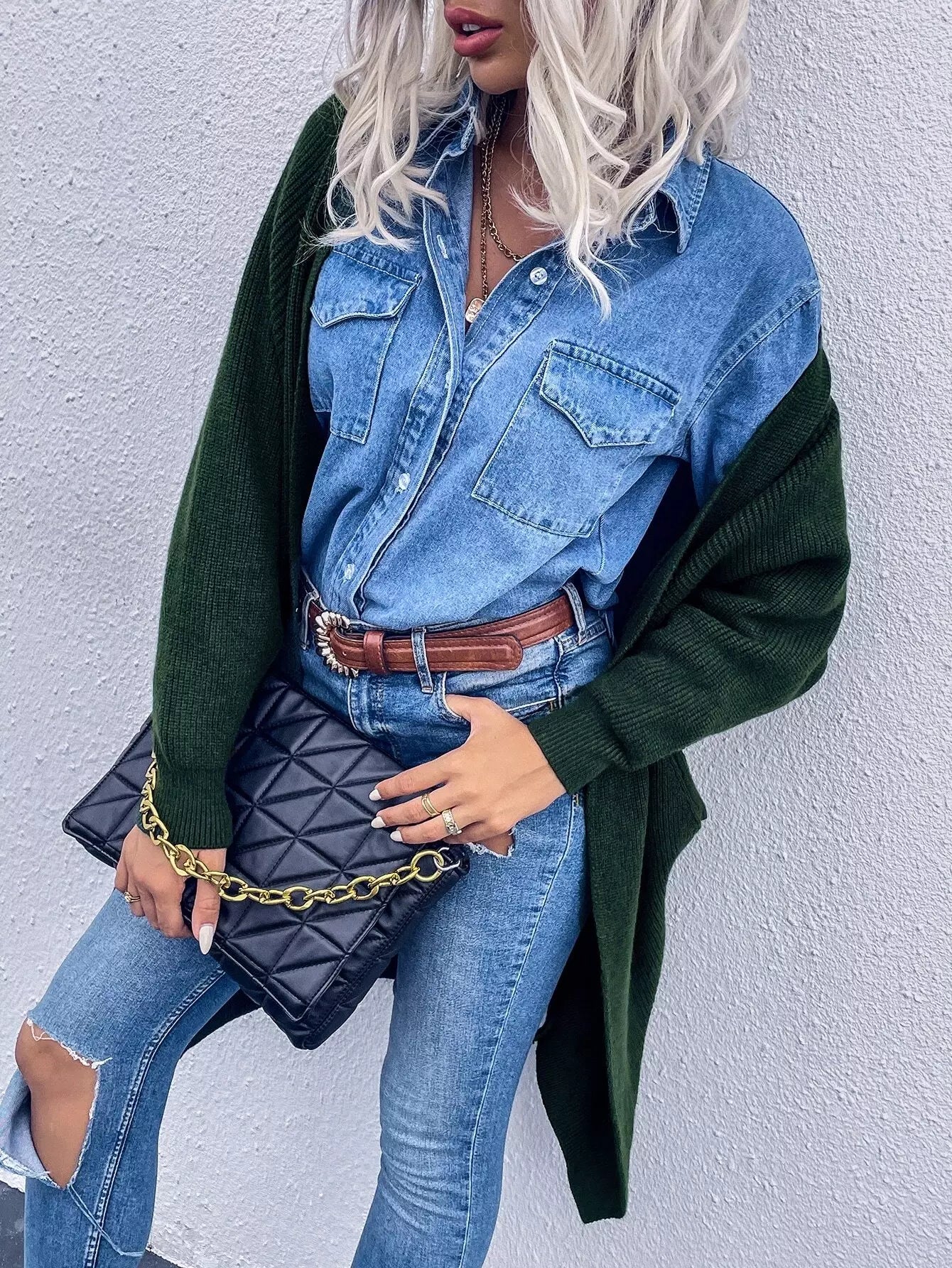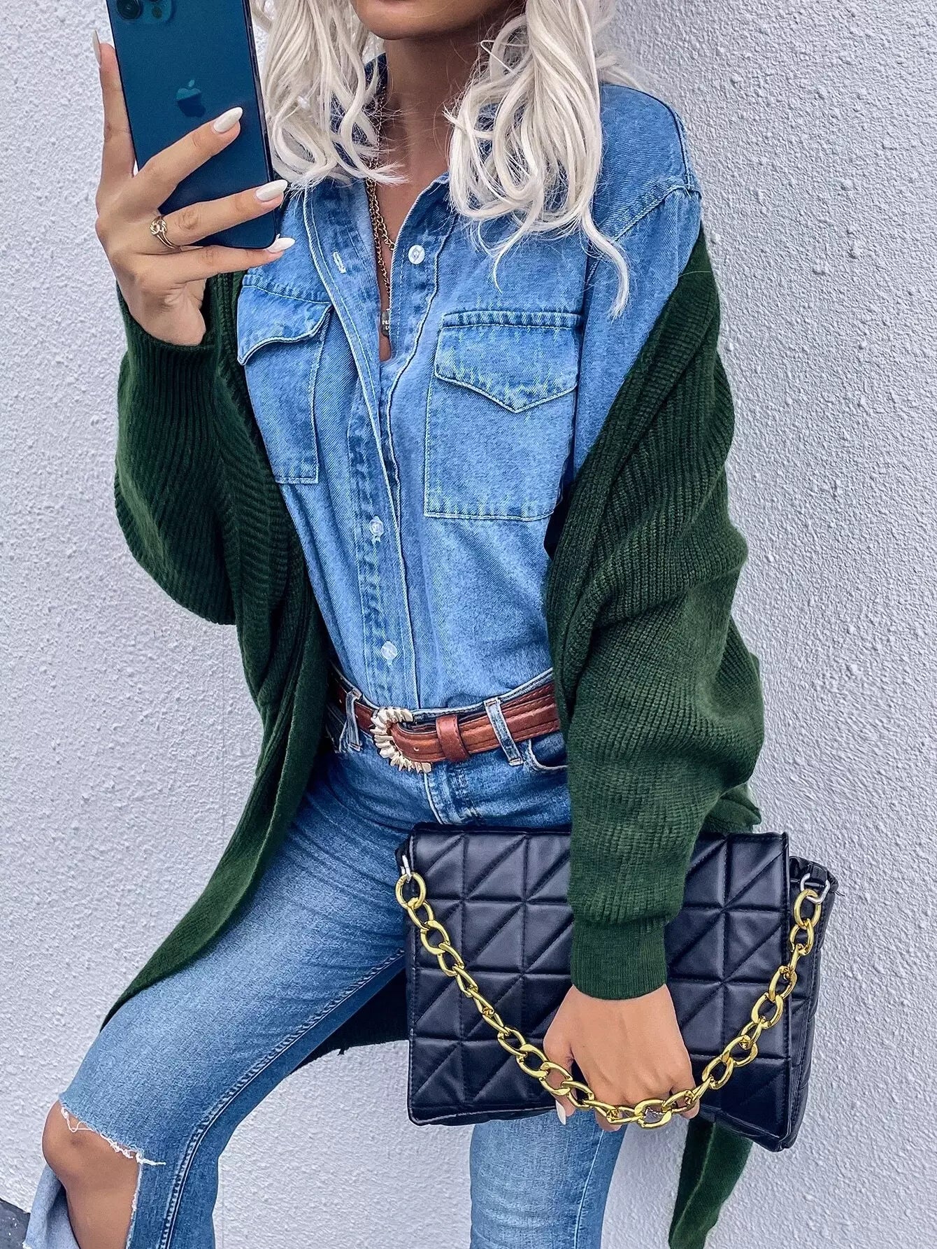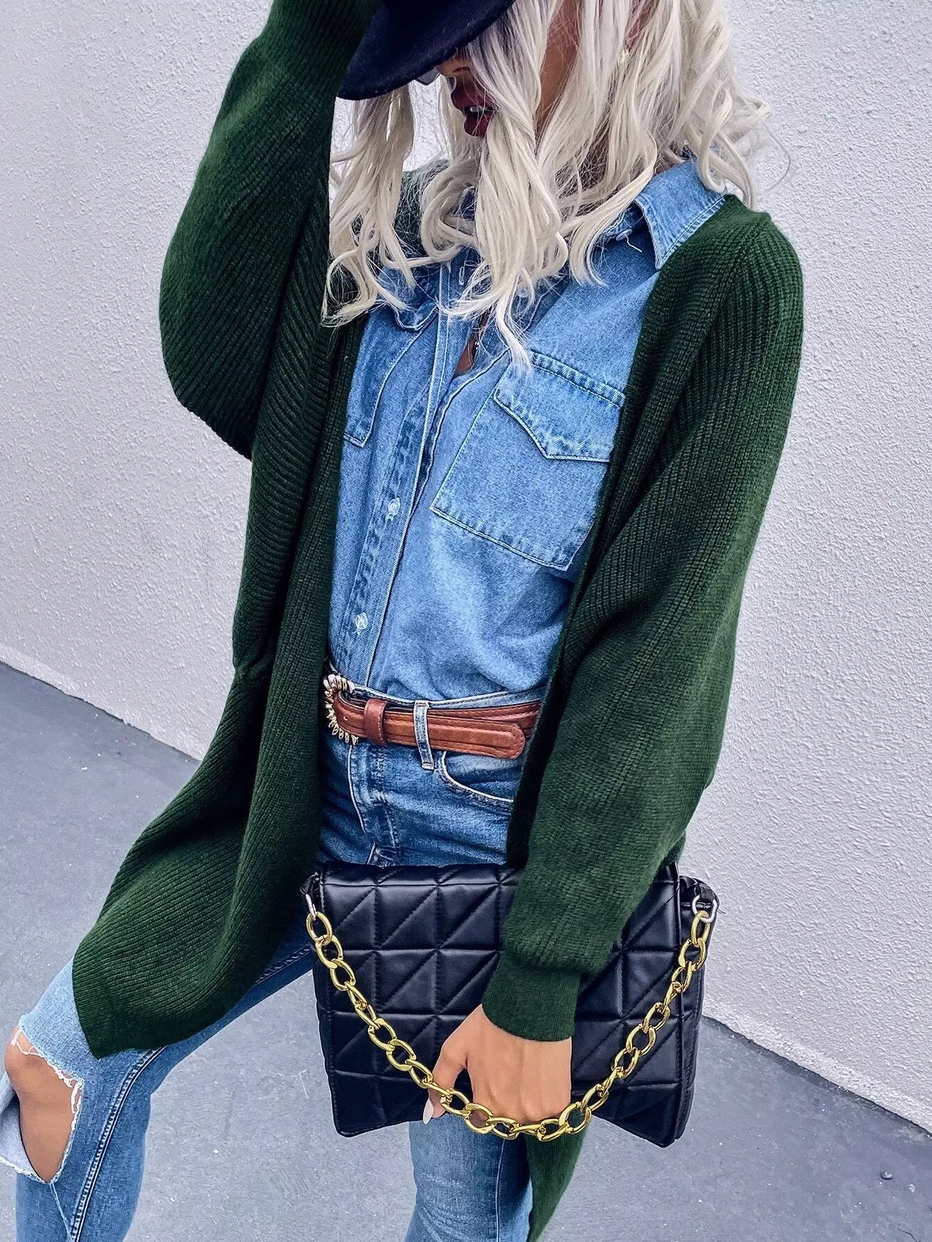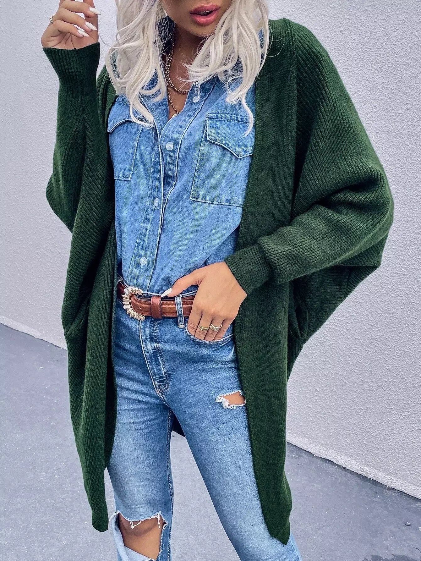 كارديجان بأكمام مضلعة محبوكة مضلعة بأكمام باتوينغ
