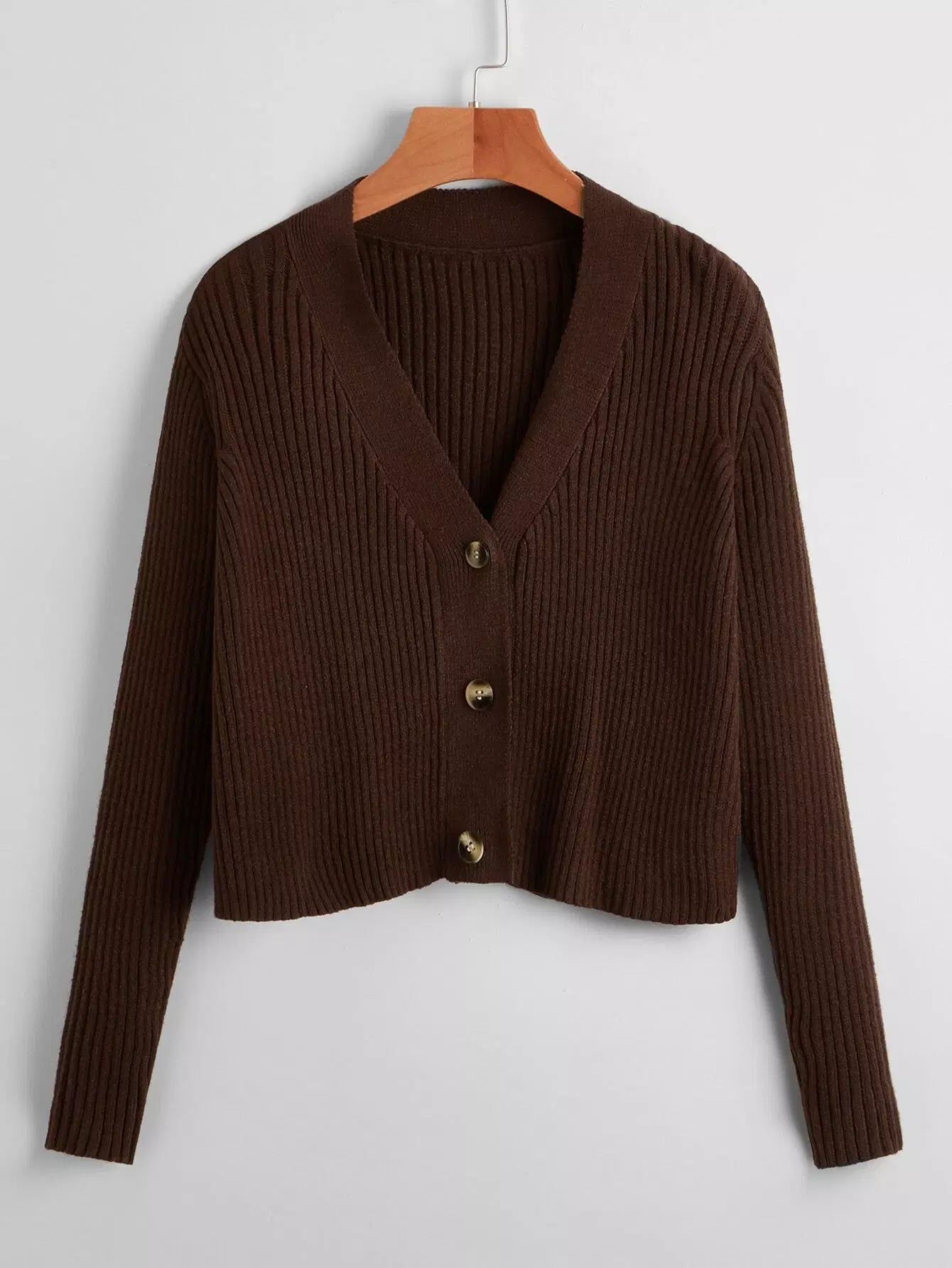 كارديغان محبوك بأزرار أمامية مضلعة ومحبوكة