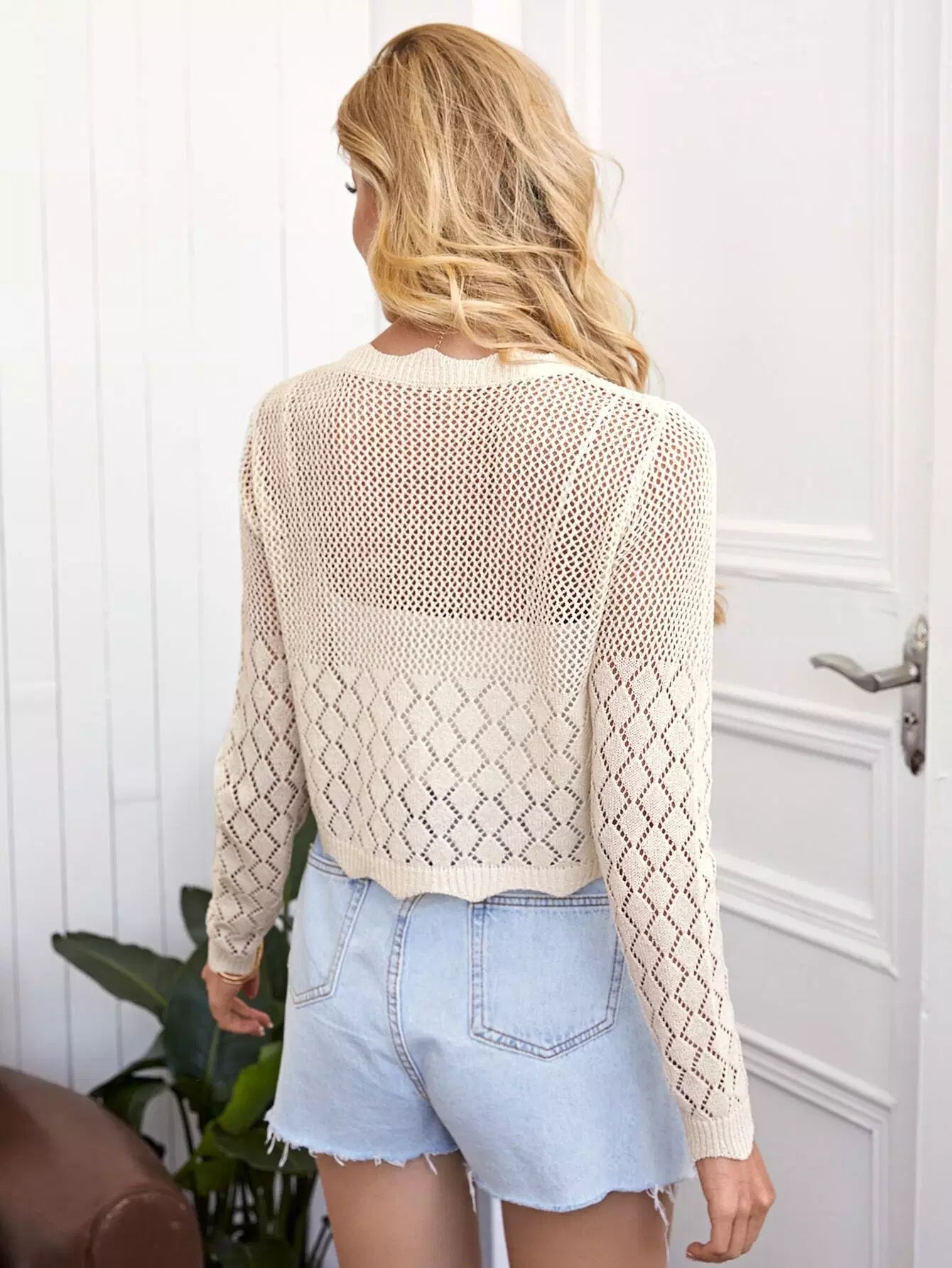 كارديجان محبوك مزين بحواف من الإسكالوب