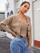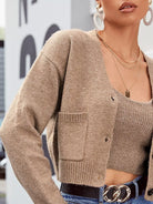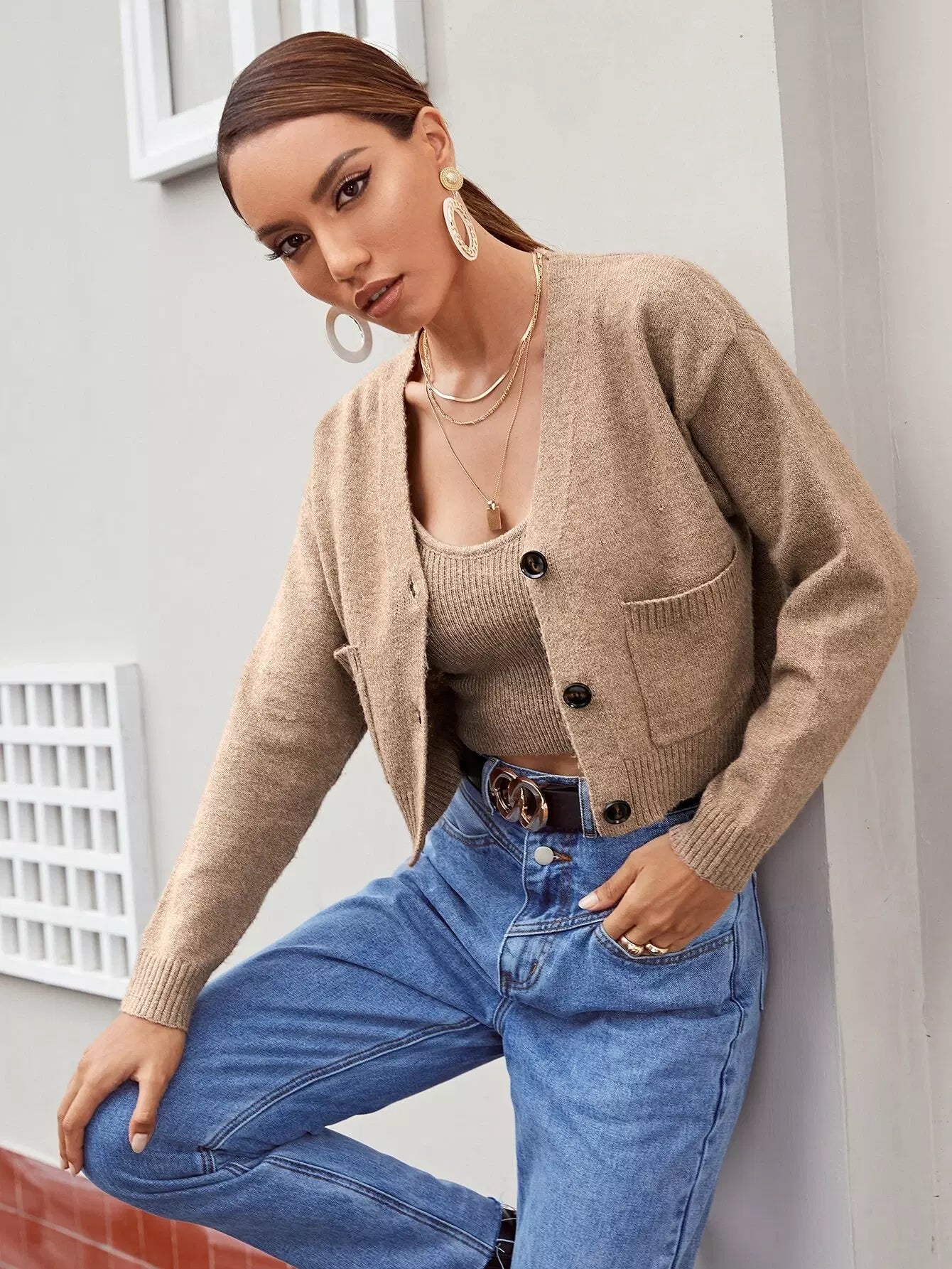 كارديجان صوفي برقعة جيب واحد على صدر واحد بدون قميص قصير