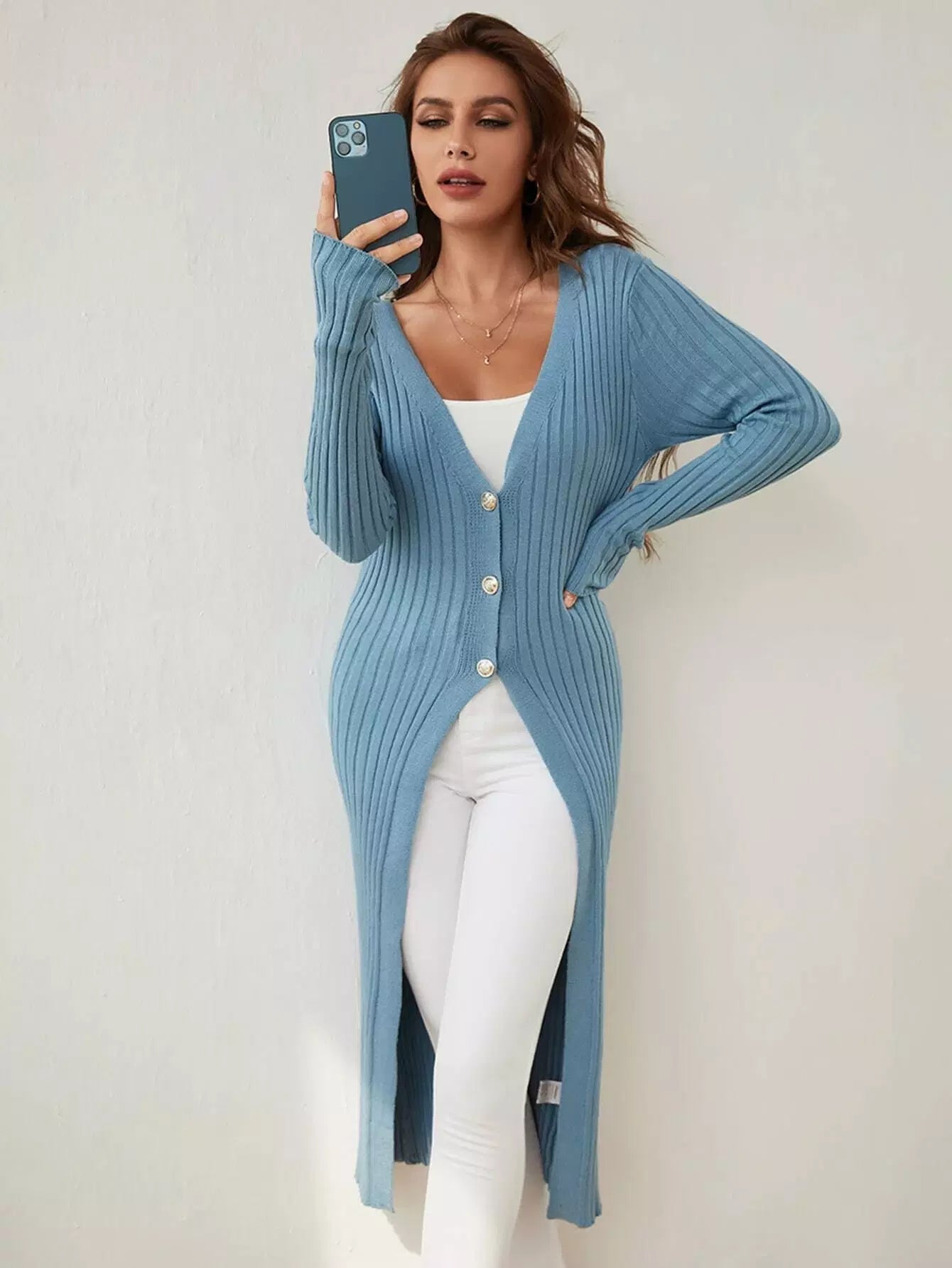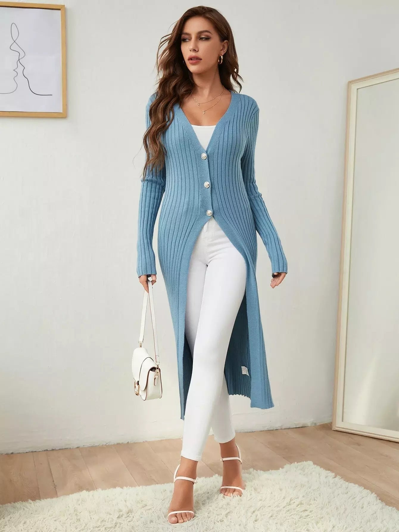 كارديغان محبوك على شكل ضلع واحد بصدر واحد