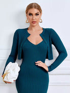 كارديجان قصير محبوك مضلع مضلع ذو صدر واحد مضلع