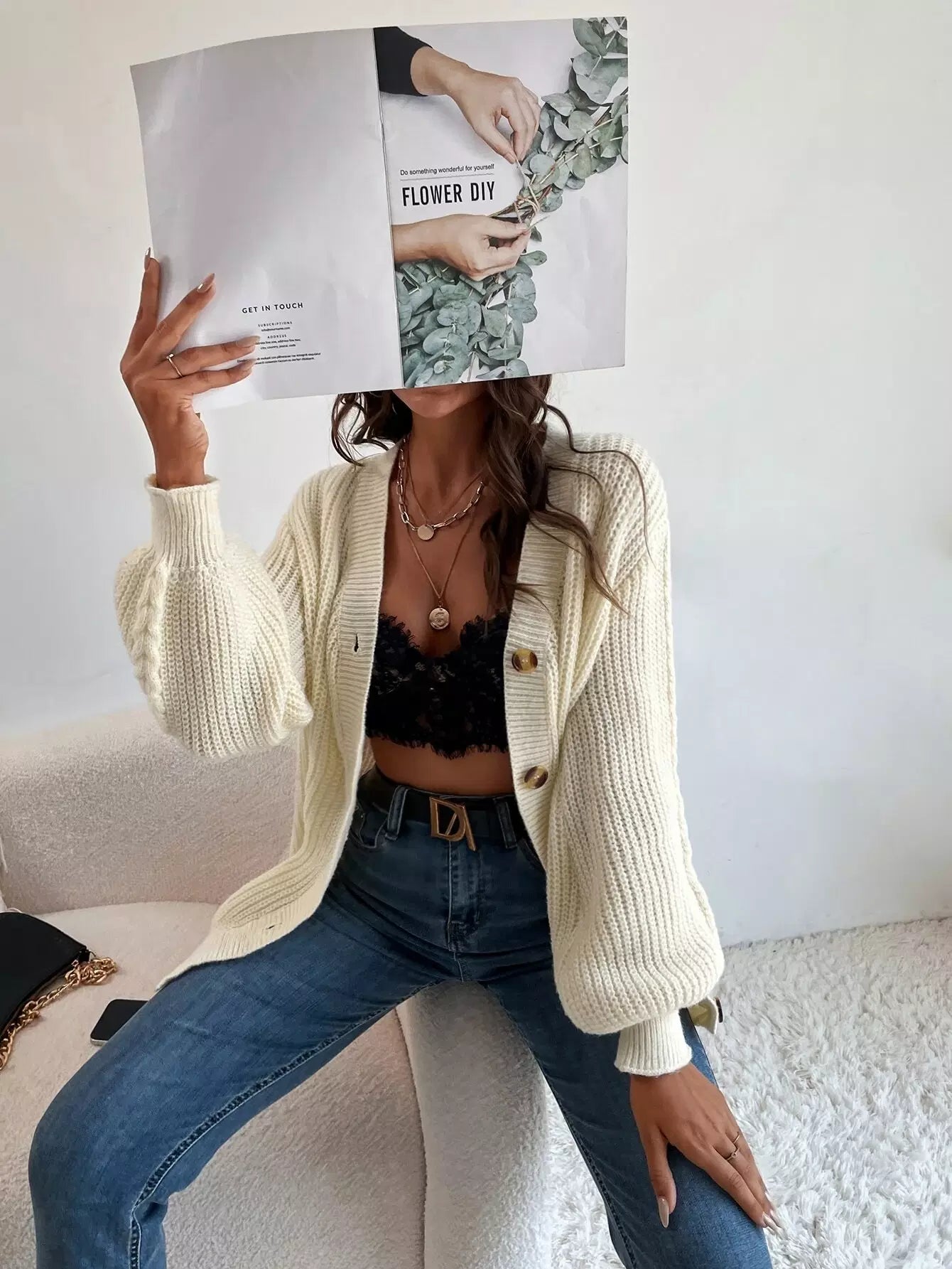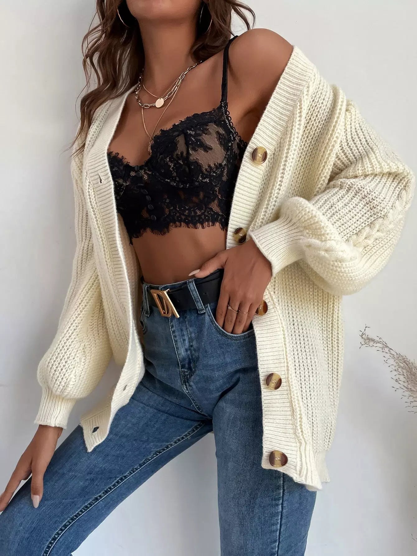 كارديجان بأكمام سادة بأزرار أمامية بأزرار سادة