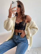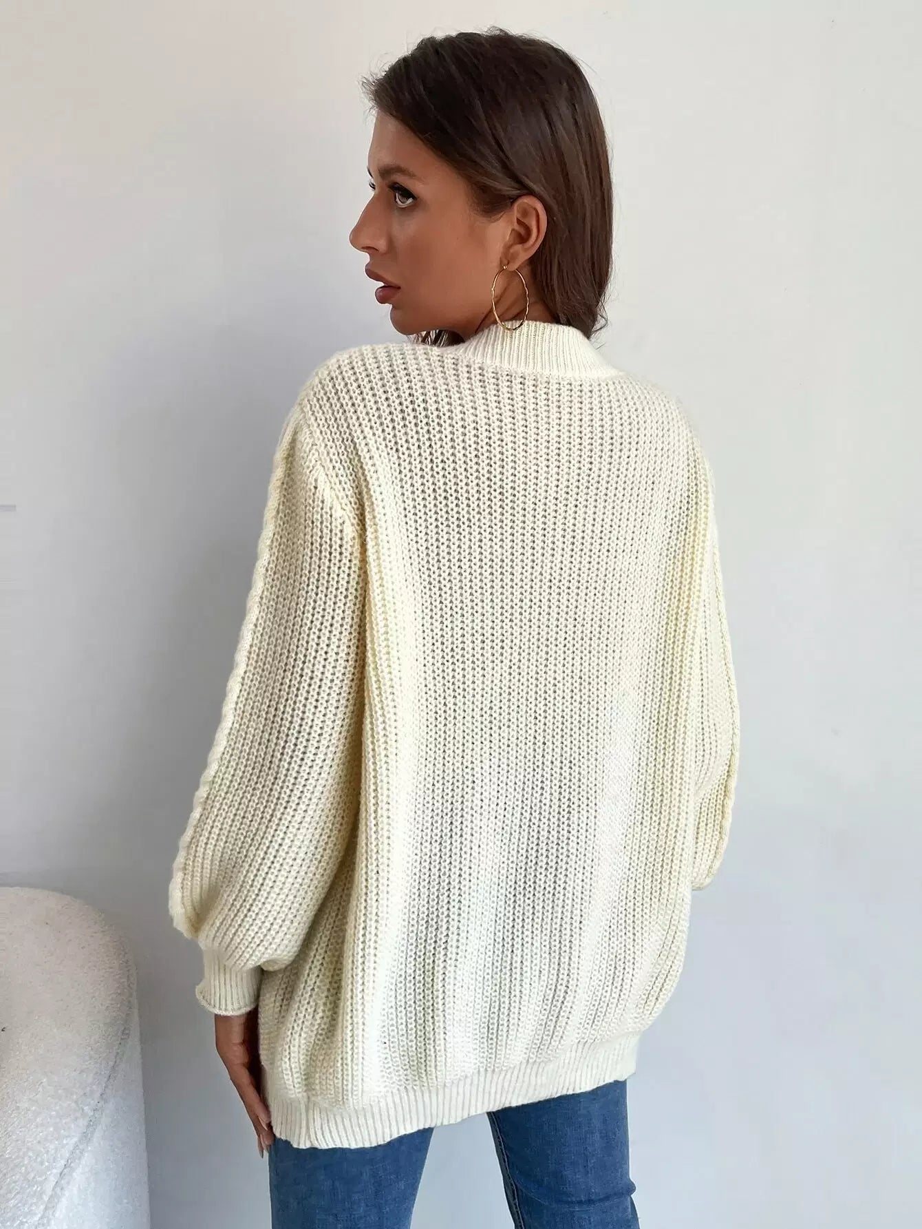 النساء - سترة صوفية بأزرار أمامية بأكمام أسقف سادة