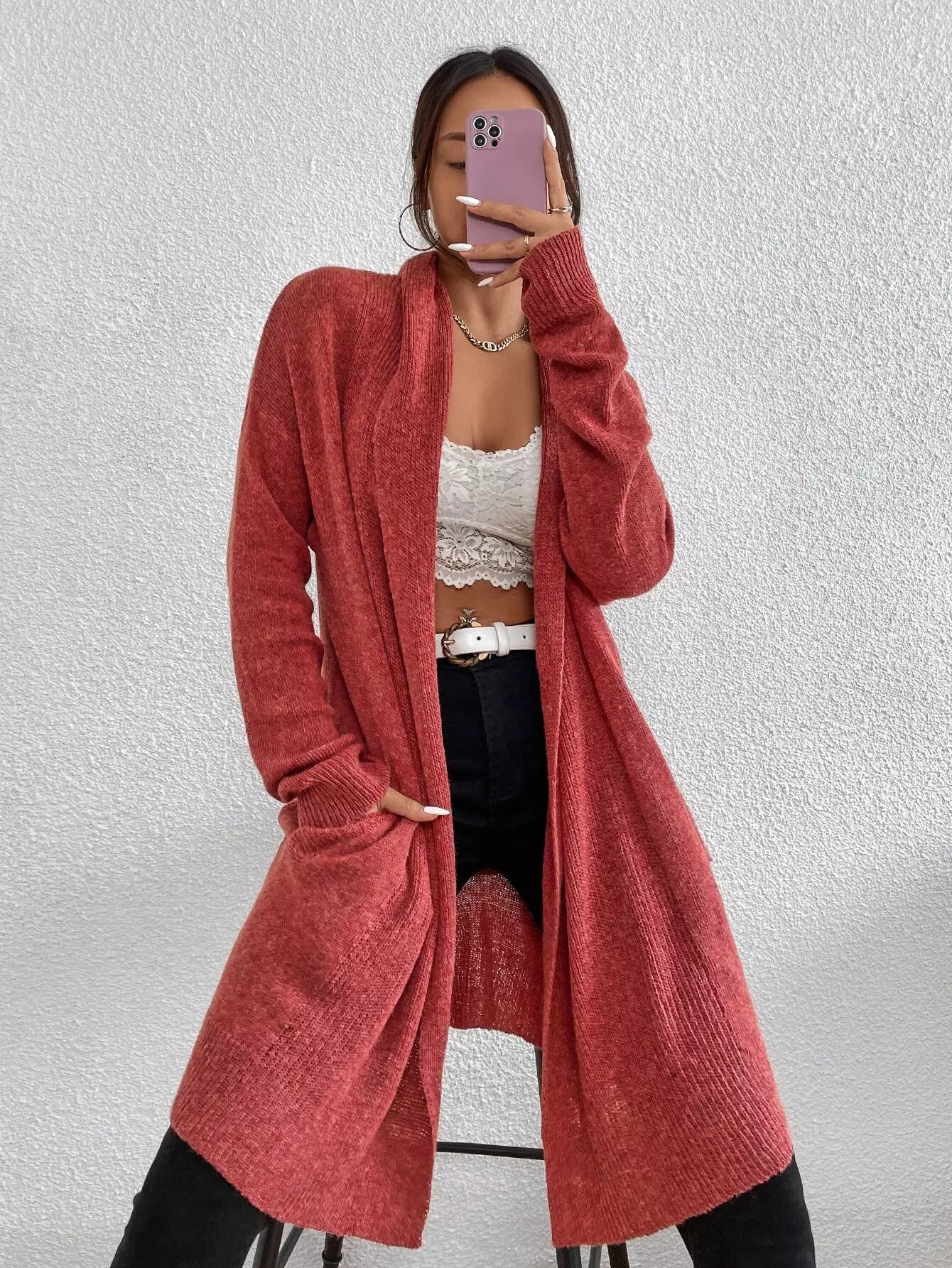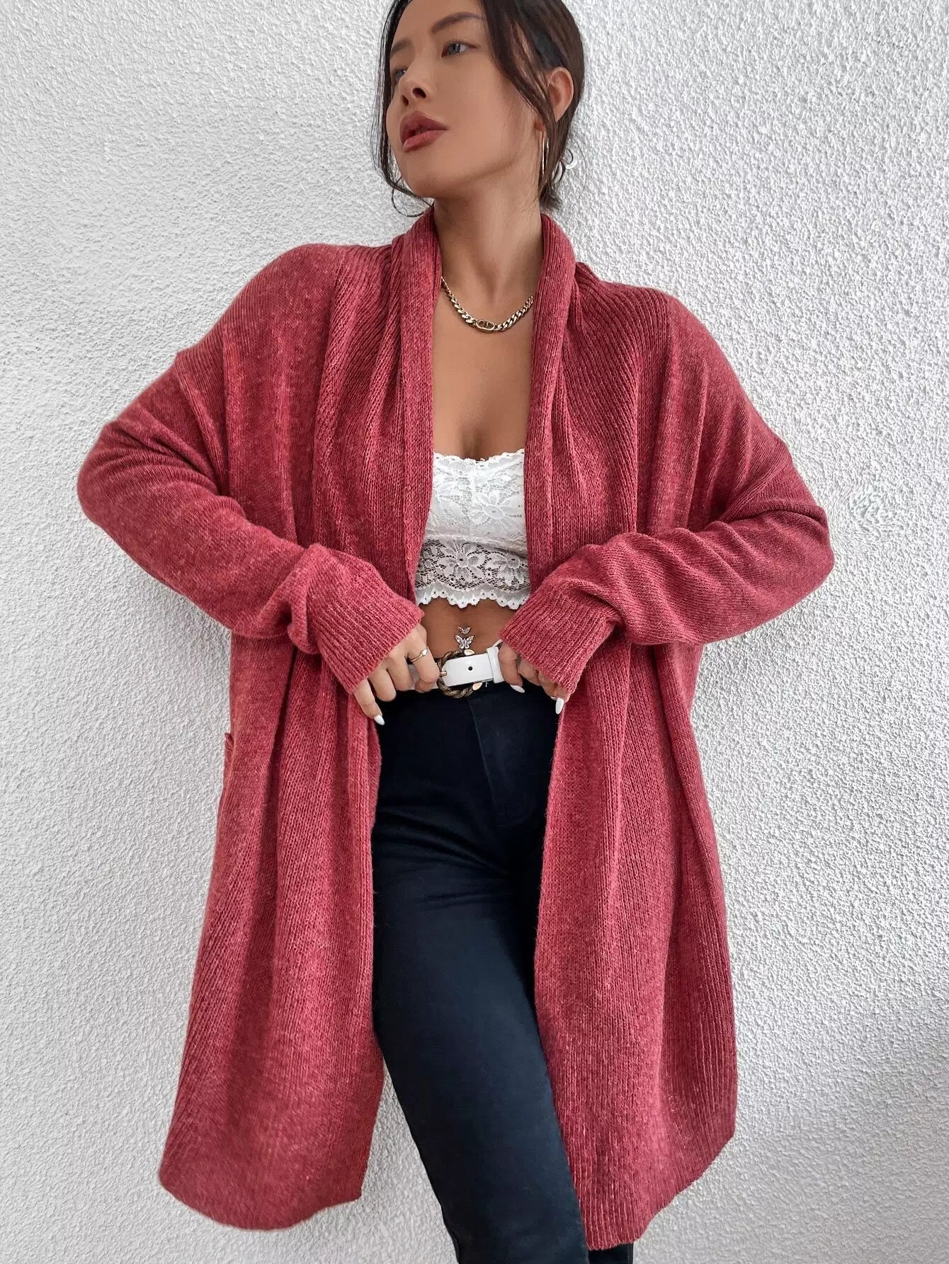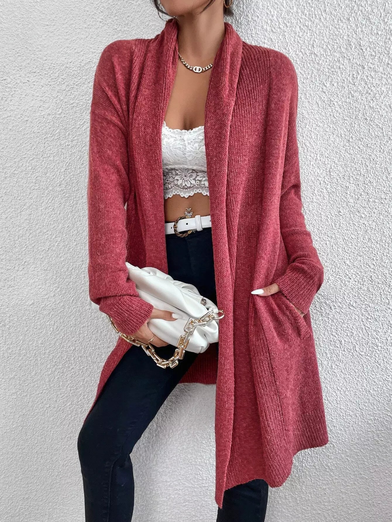 كارديجان سادة منسدل الكتفين سادة