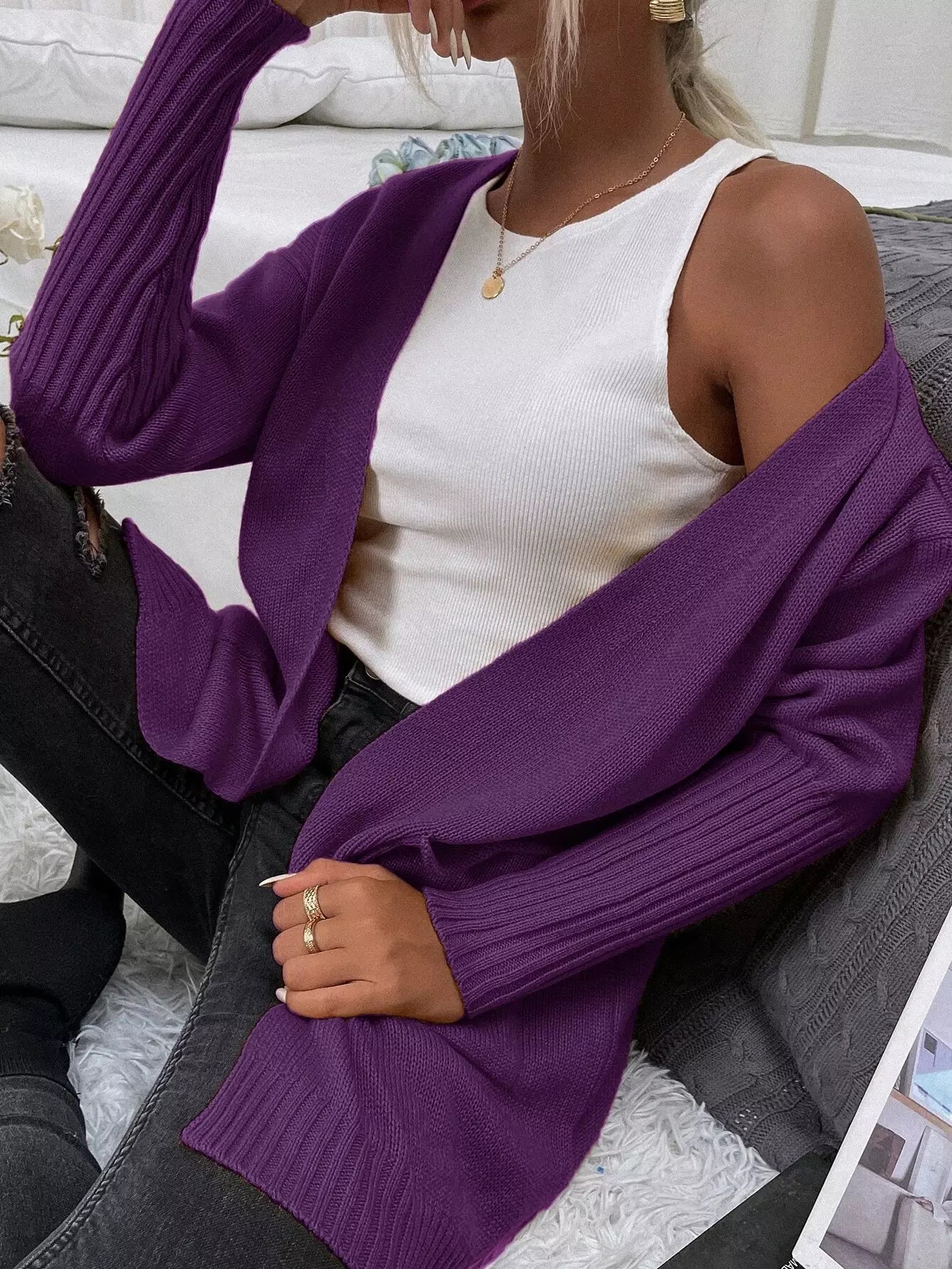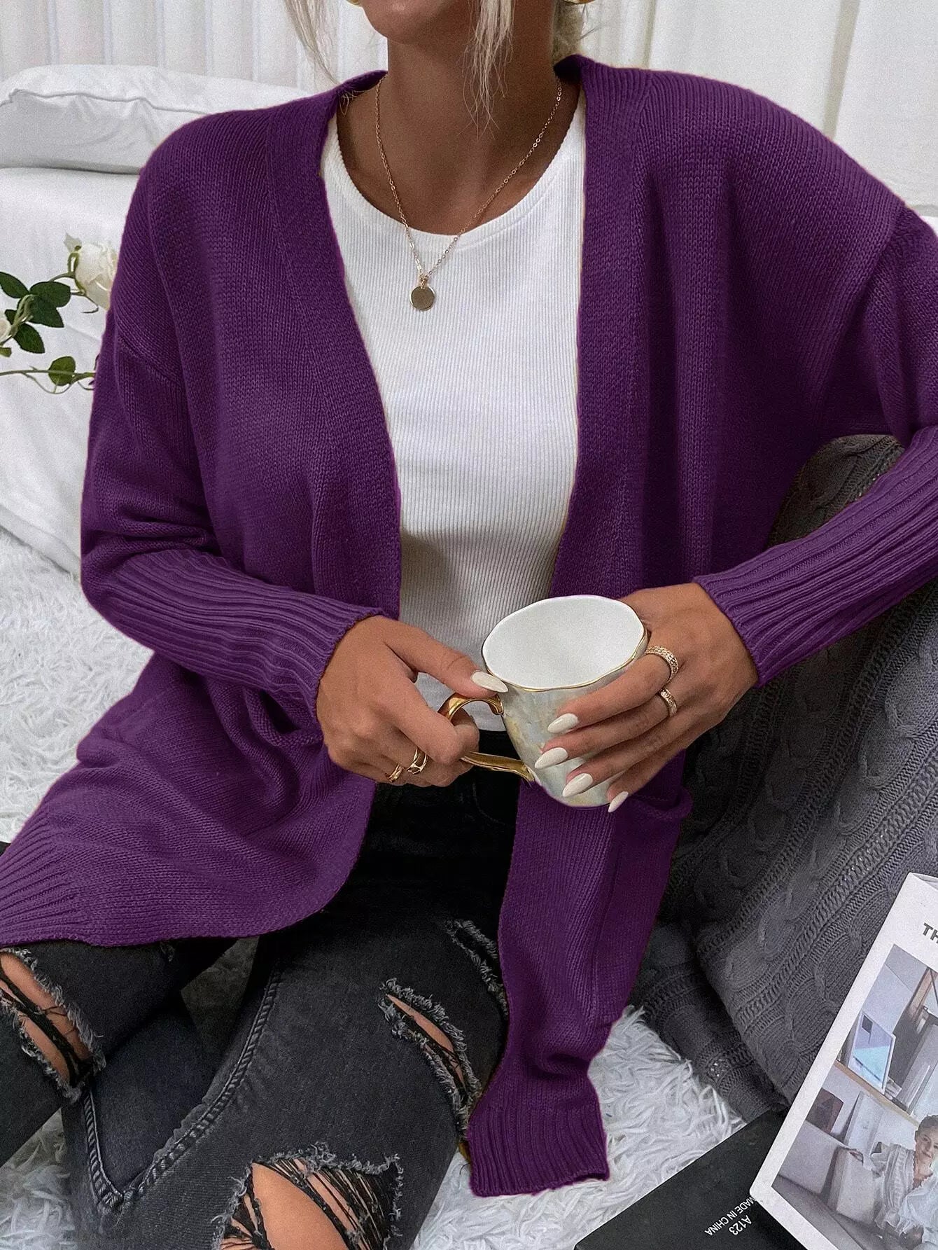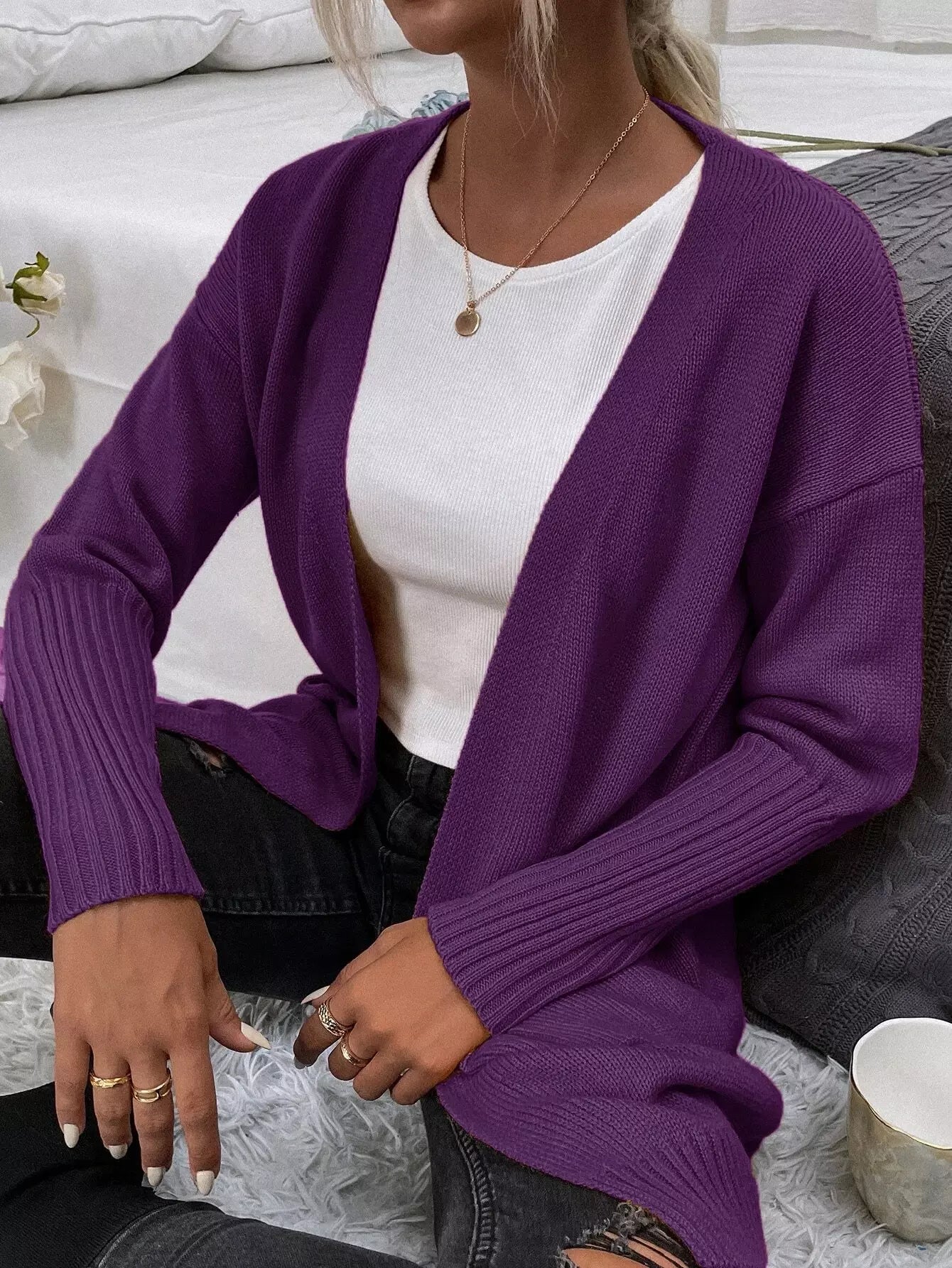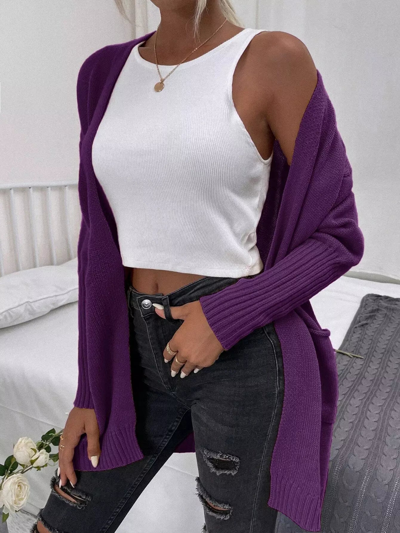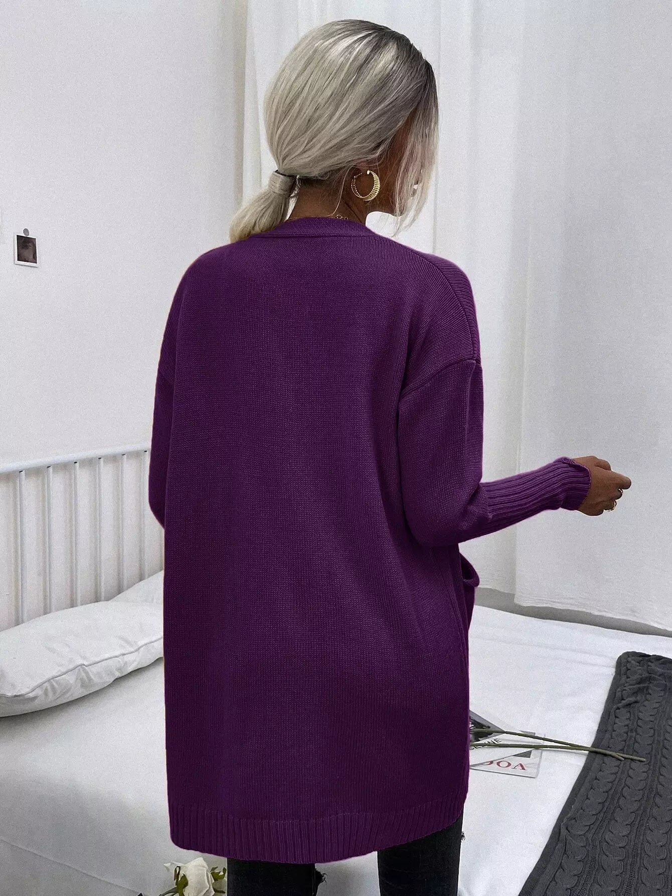 كارديجان سادة منسدل الكتفين بجيب أمامي سادة
