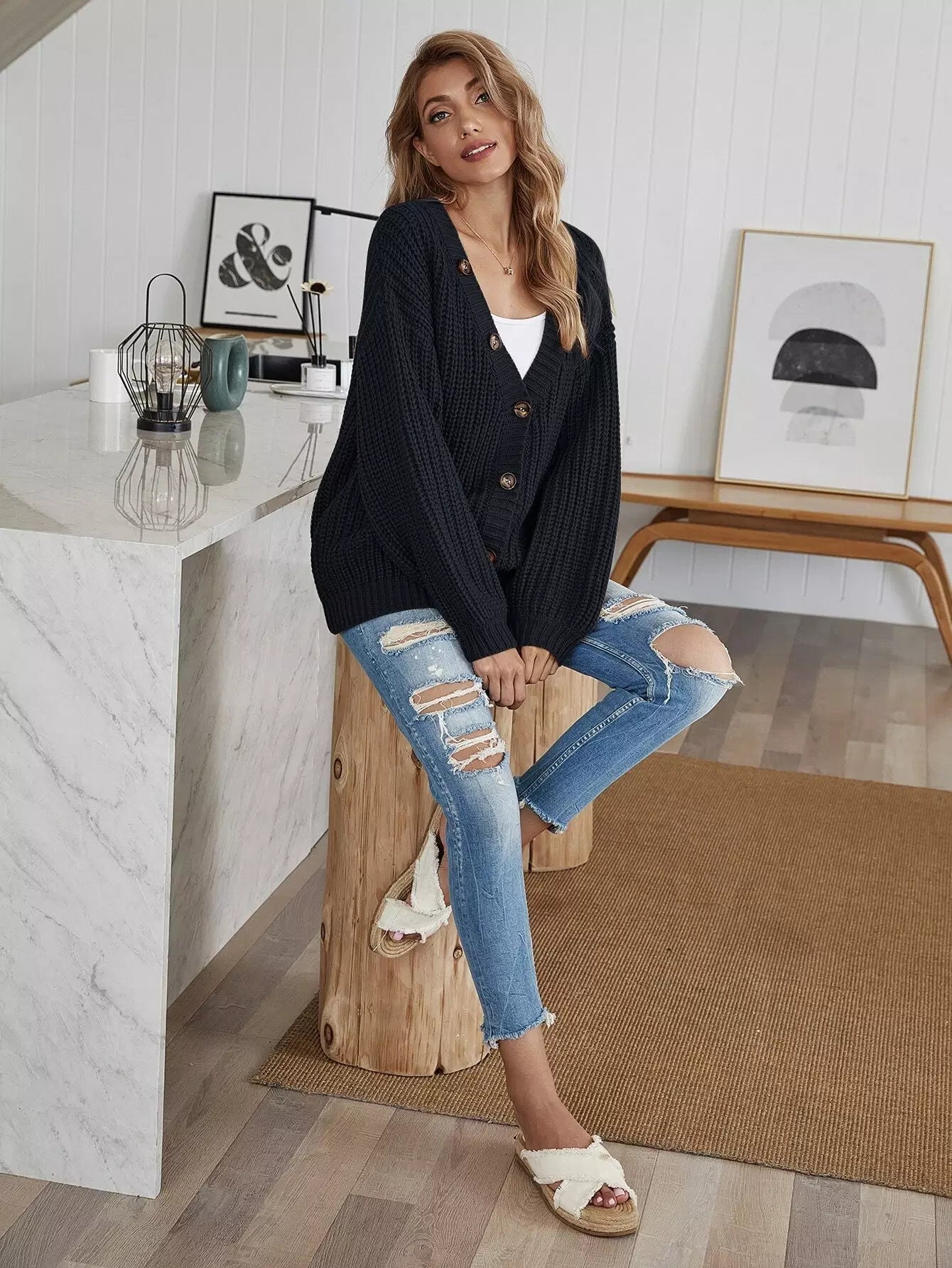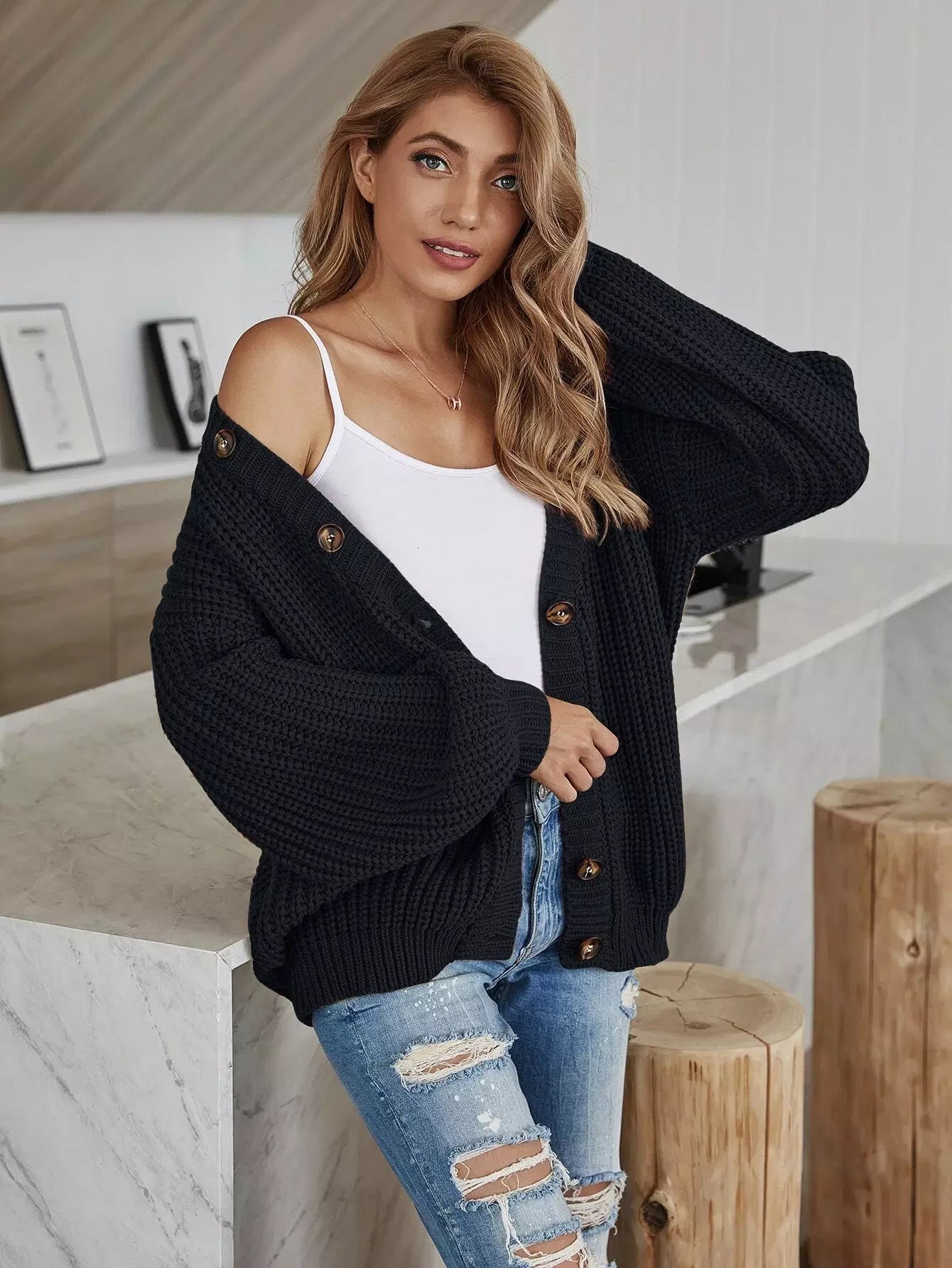 كارديجان صوفي سادة محبوكة بأزرار متماسكة