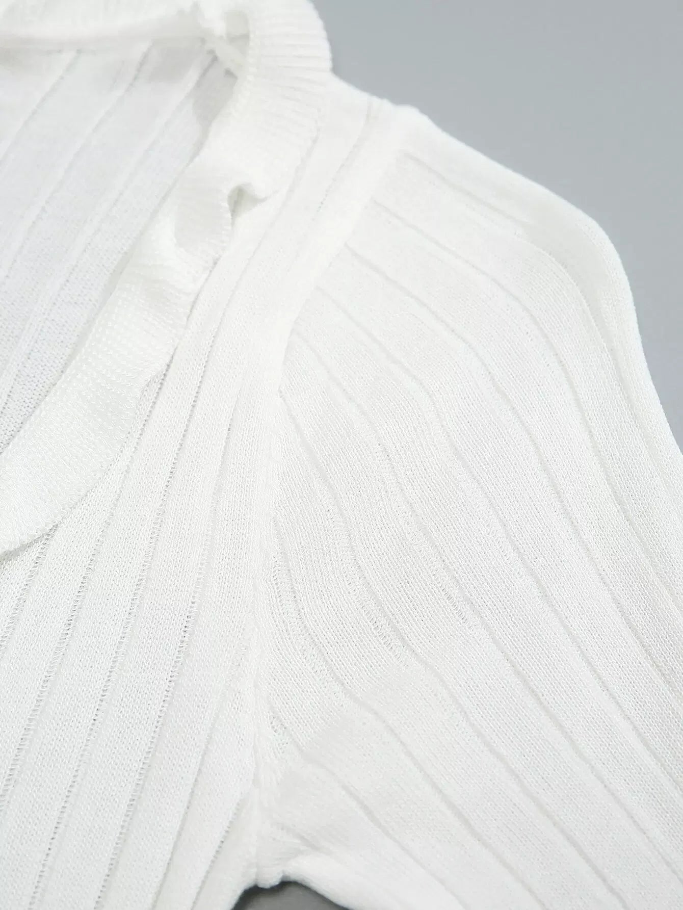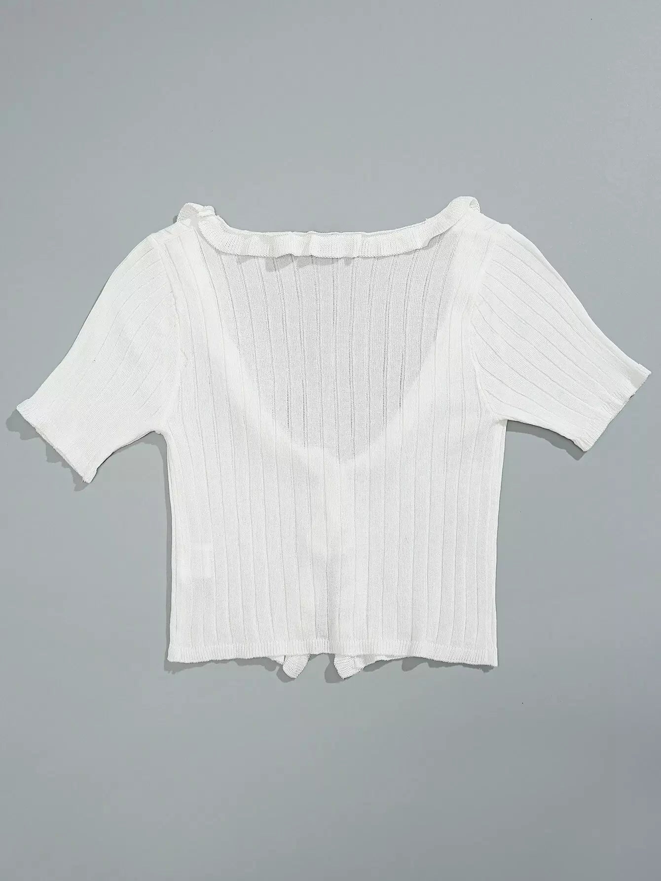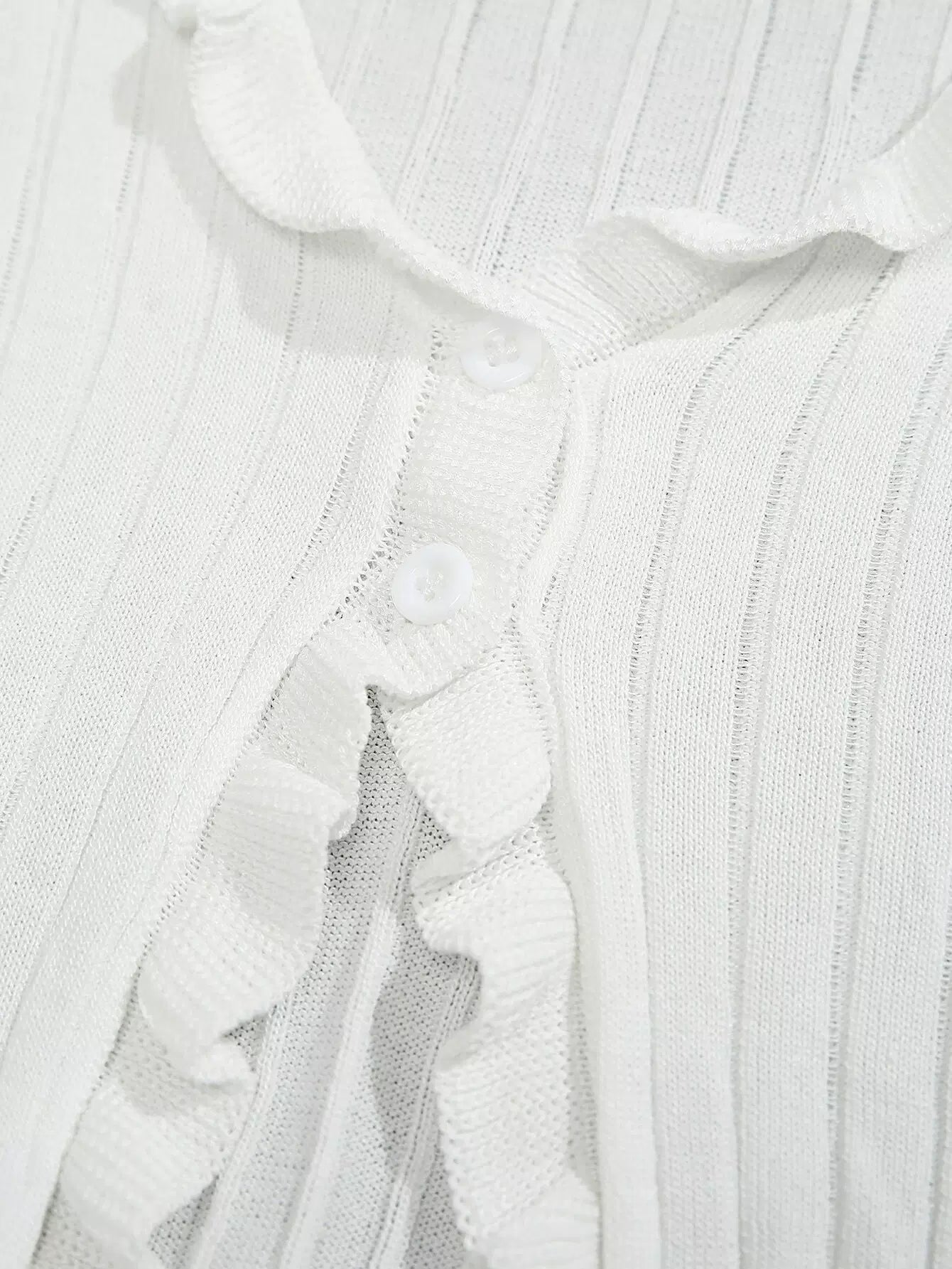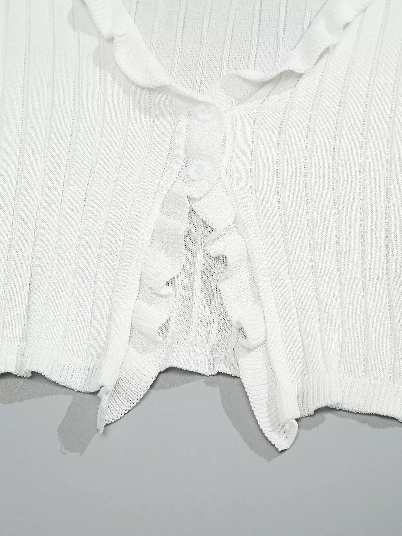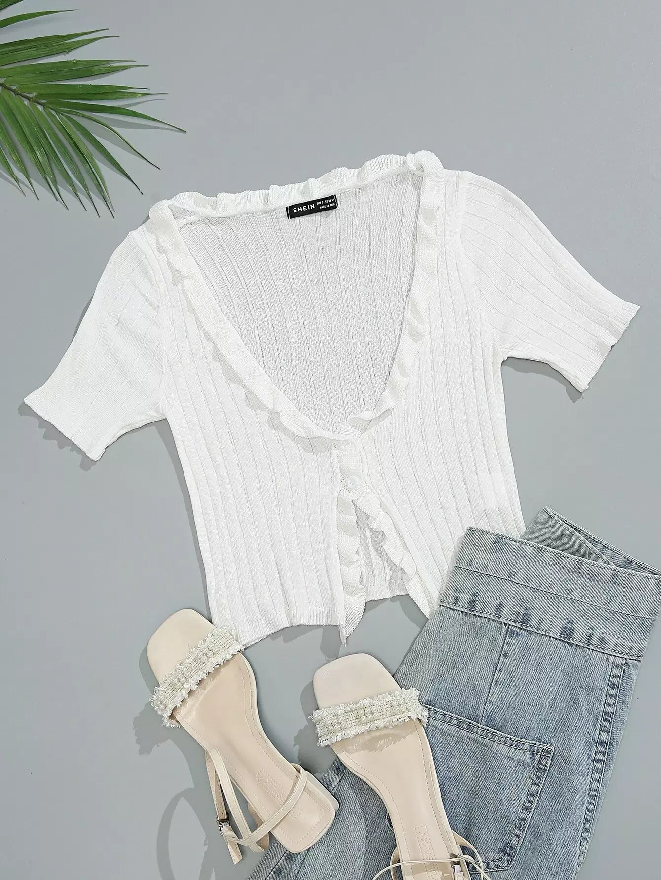كارديجان بحواف كشكش سادة بأزرار أمامية مكشكشة