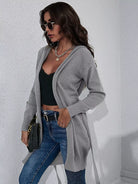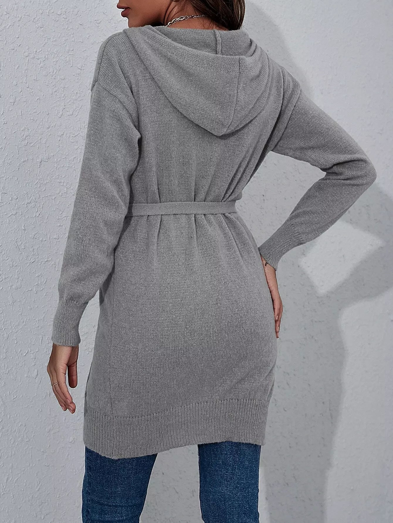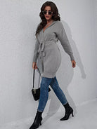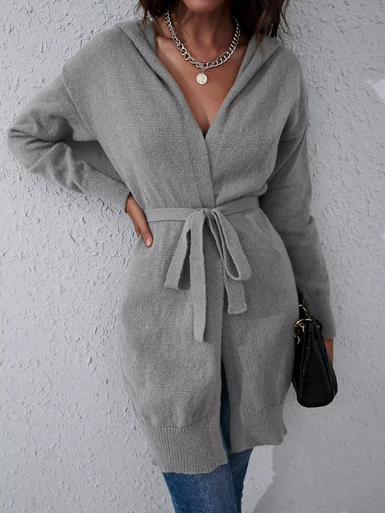 كارديغان سادة بقبعة بقبعة ذات ربطة عنق سادة