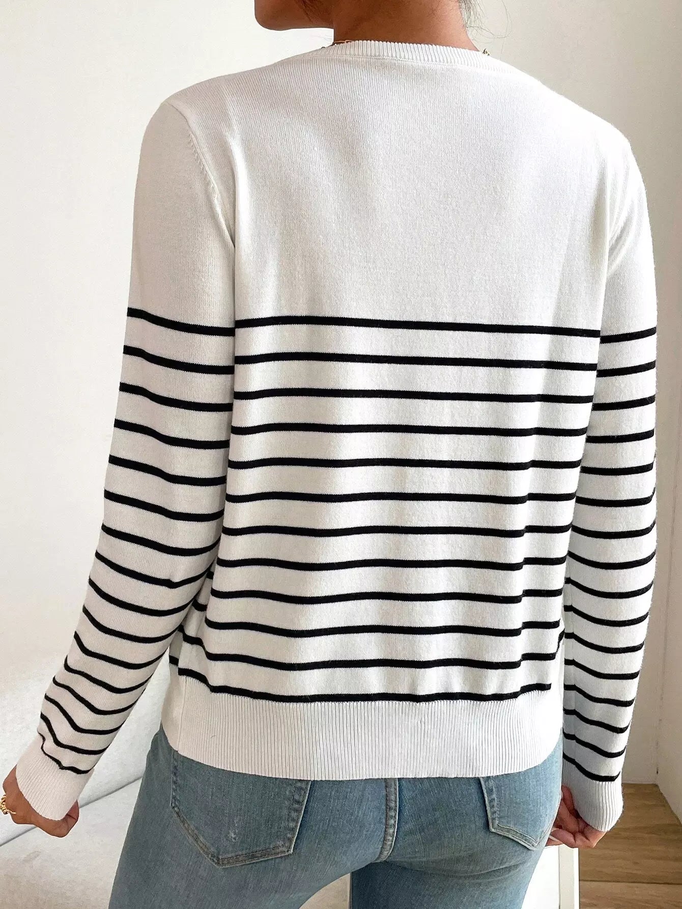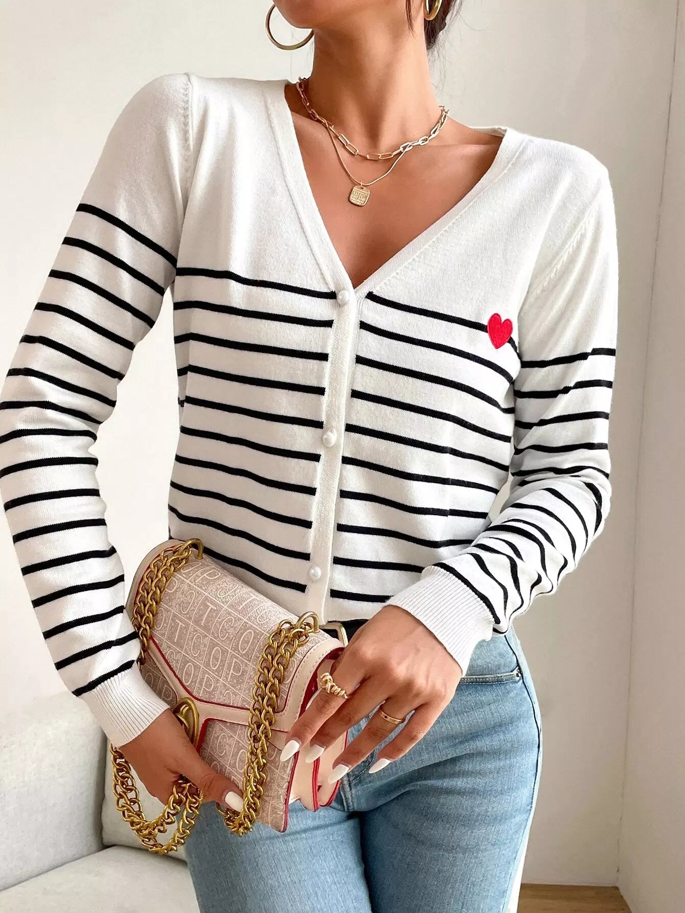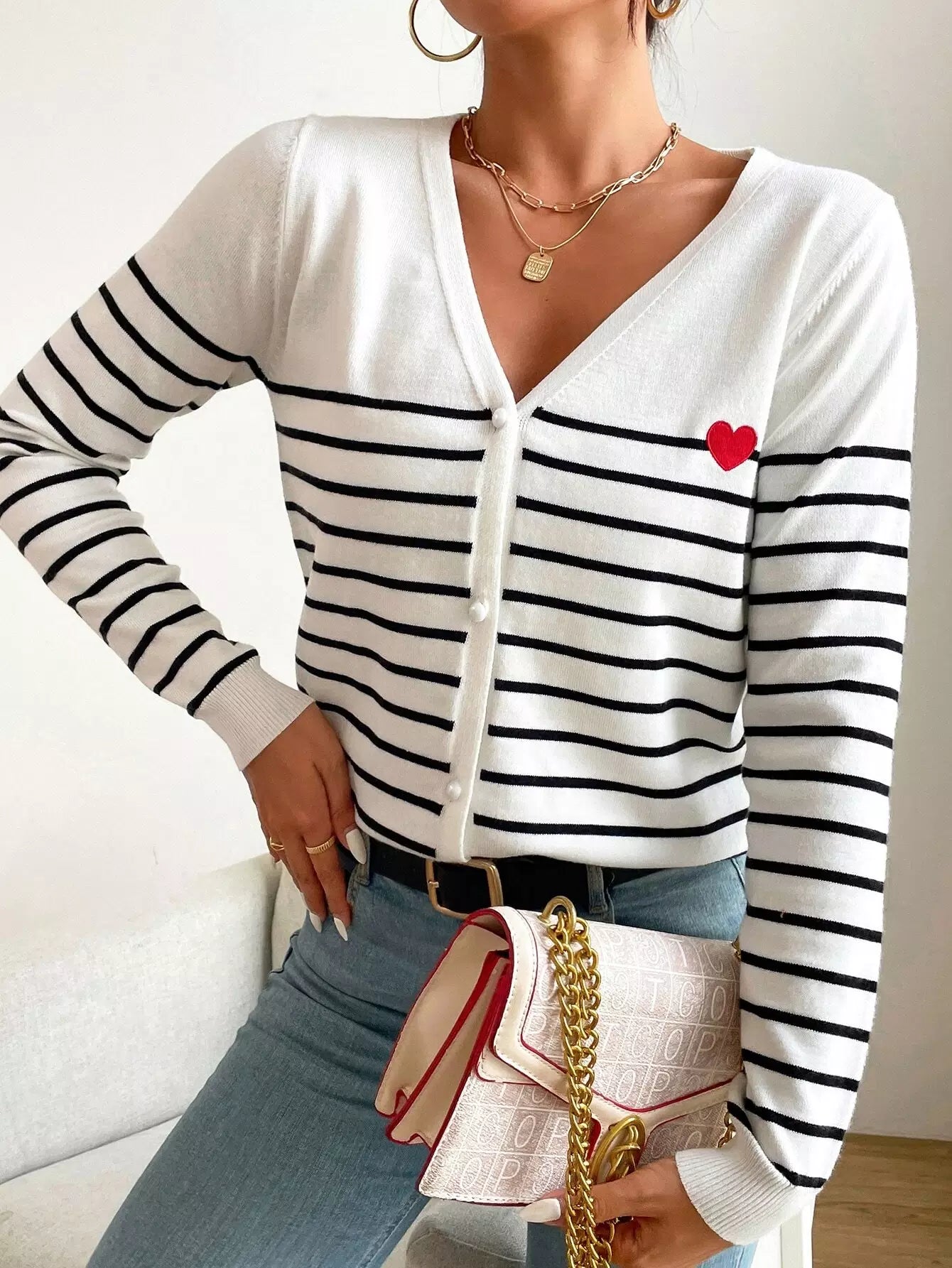 كارديجان مطرز على شكل قلب مخطط ومطرز بنقشة قلب