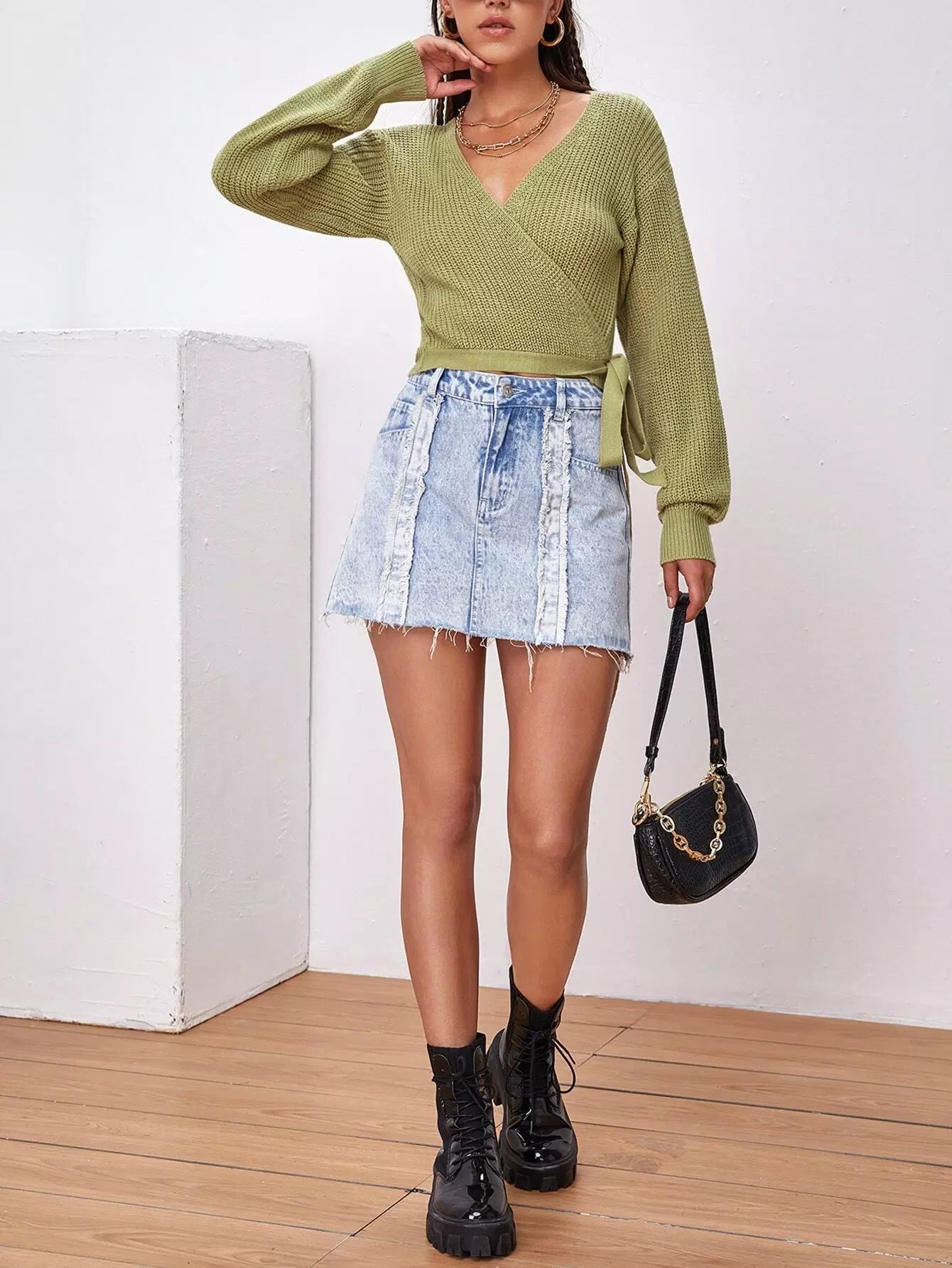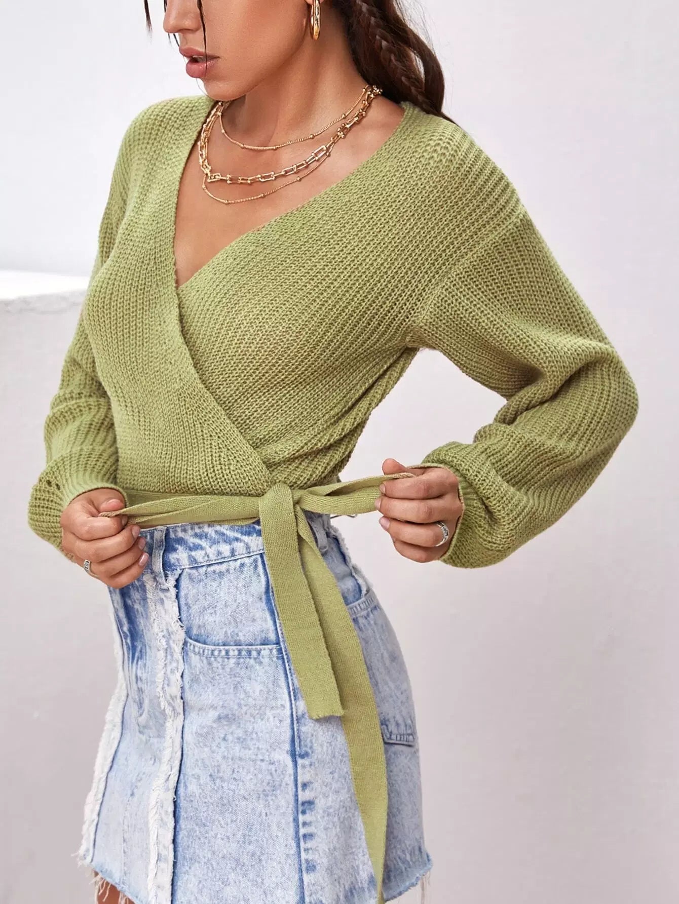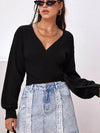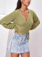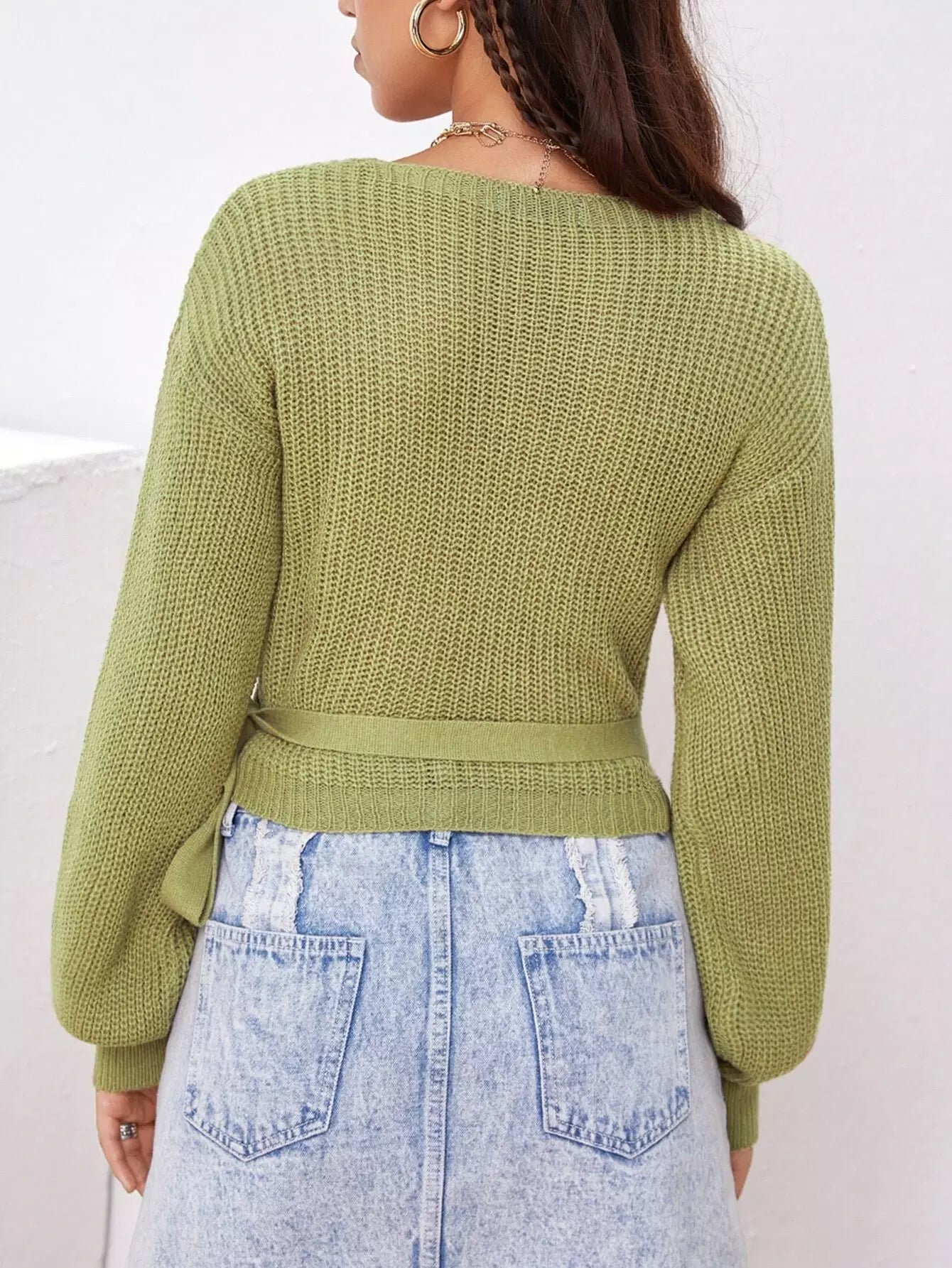 كارديغان بياقة بياقة بفتحة رقبة على شكل عقدة على شكل فانوس