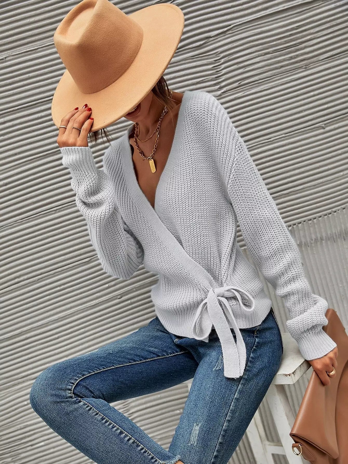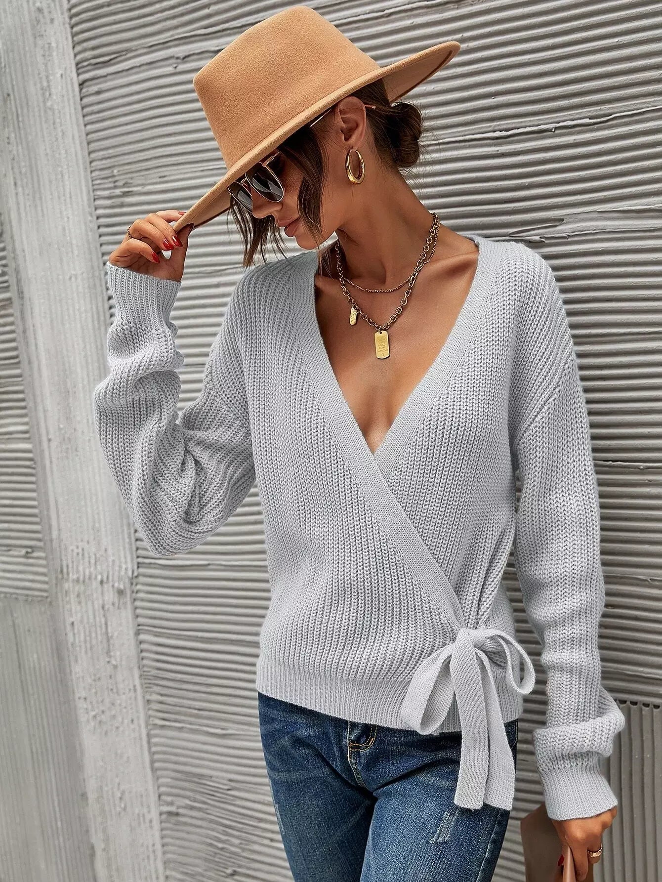 كارديجان منسدل الكتفين بربطة عنق أمامية
