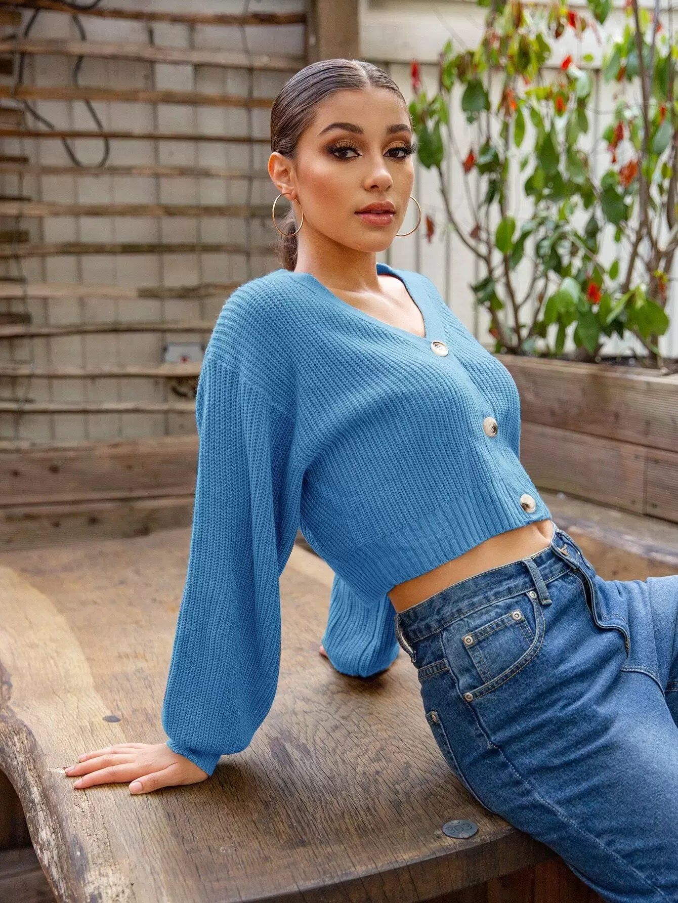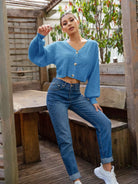 كارديجان برقبة على شكل حرف V منسدل الكتفين