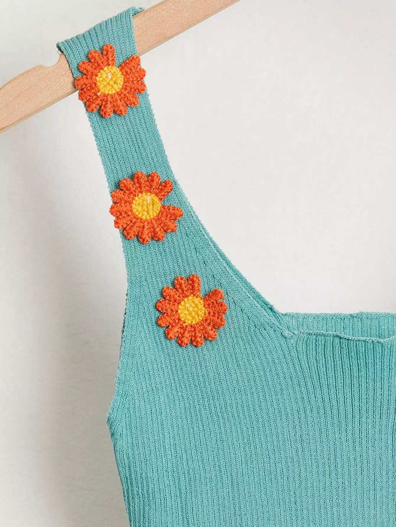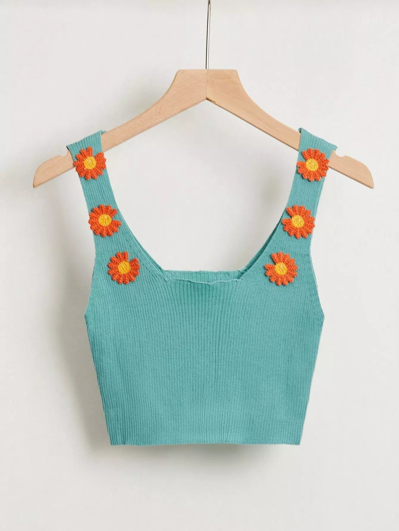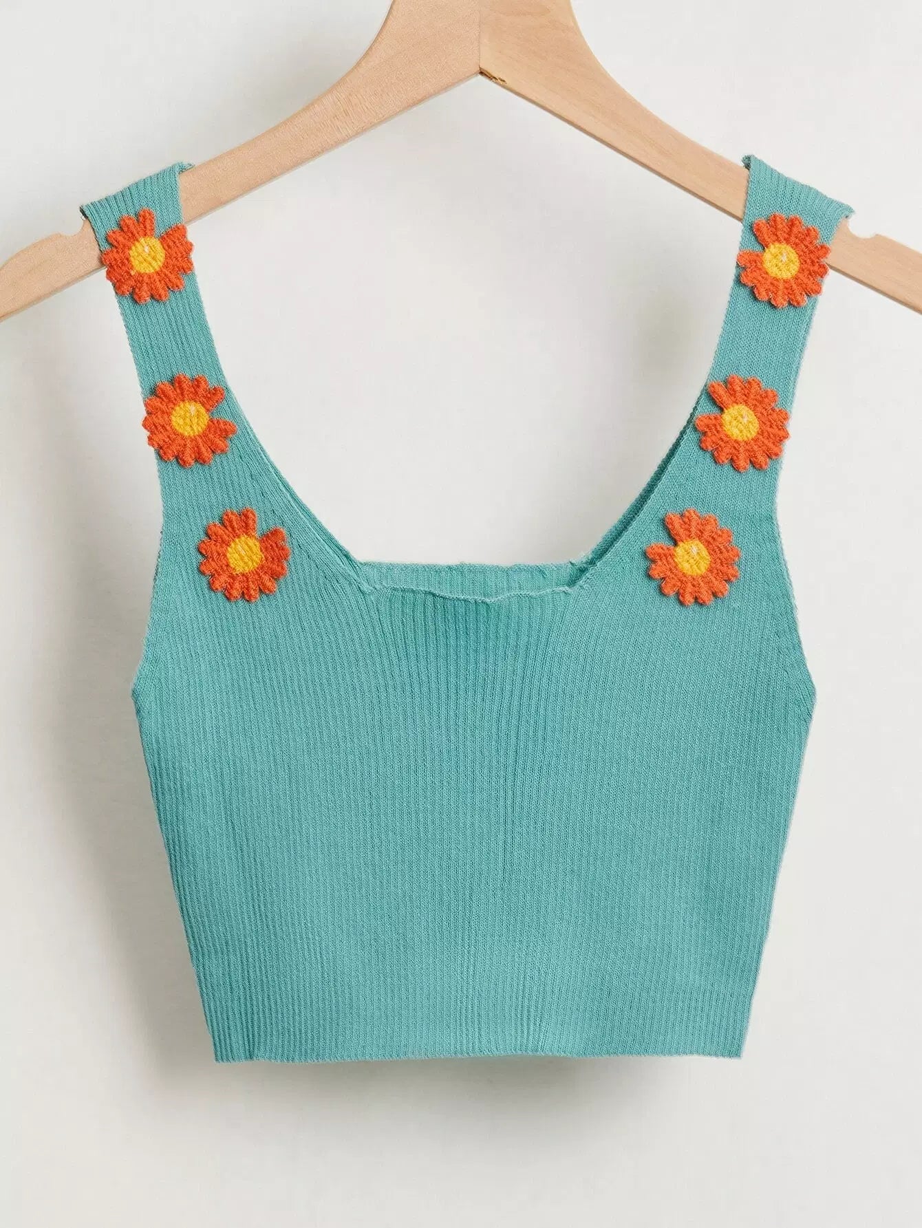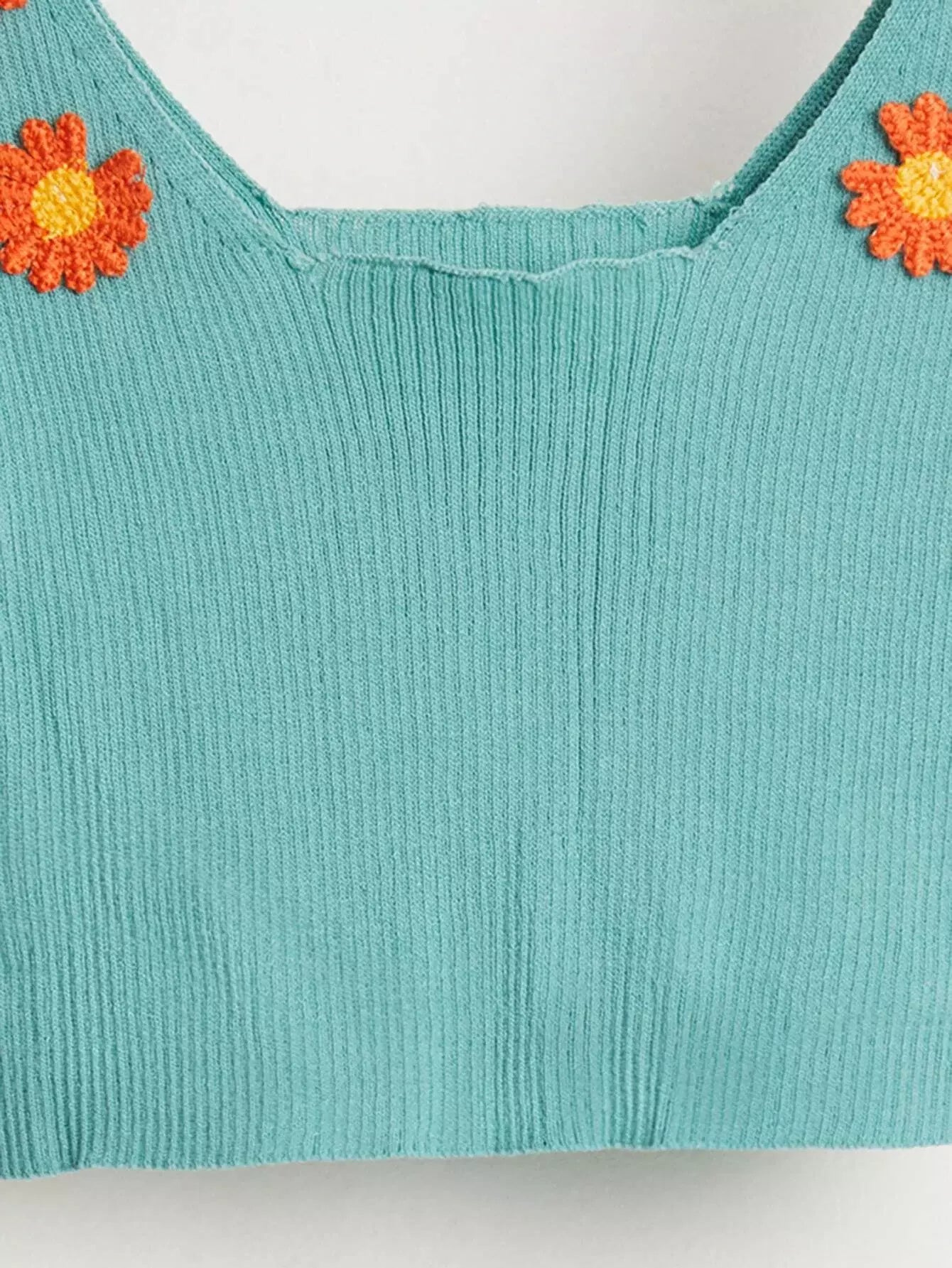 بلوزة قصيرة محبوكة مزينة بالتطبيقات