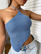 بلوزة محبوكة برقبة رقبة رسن عارية الظهر
