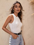 تانك برقبة كرو برقبة كرو سادة محبوكة
