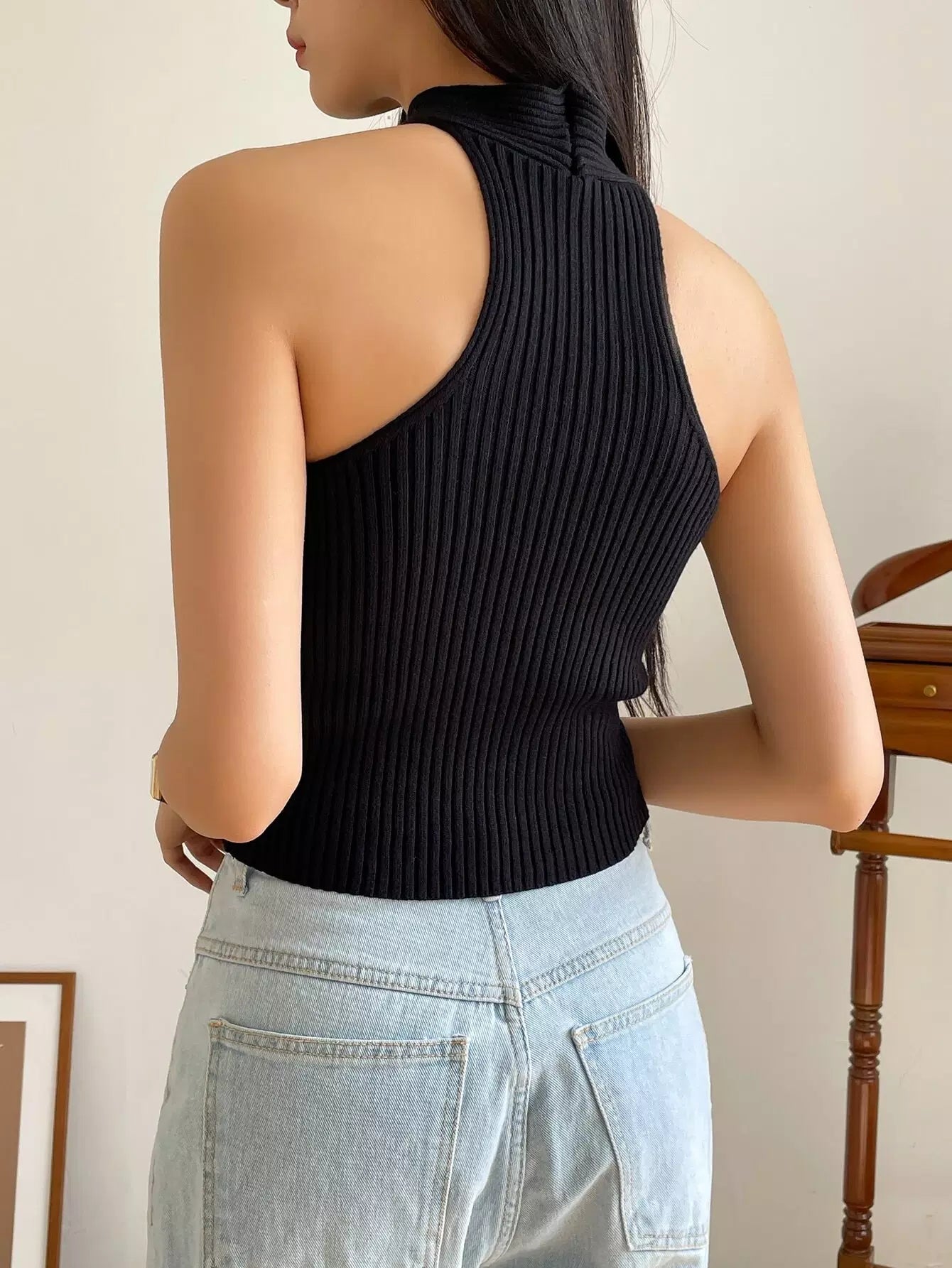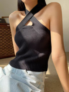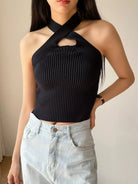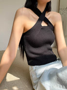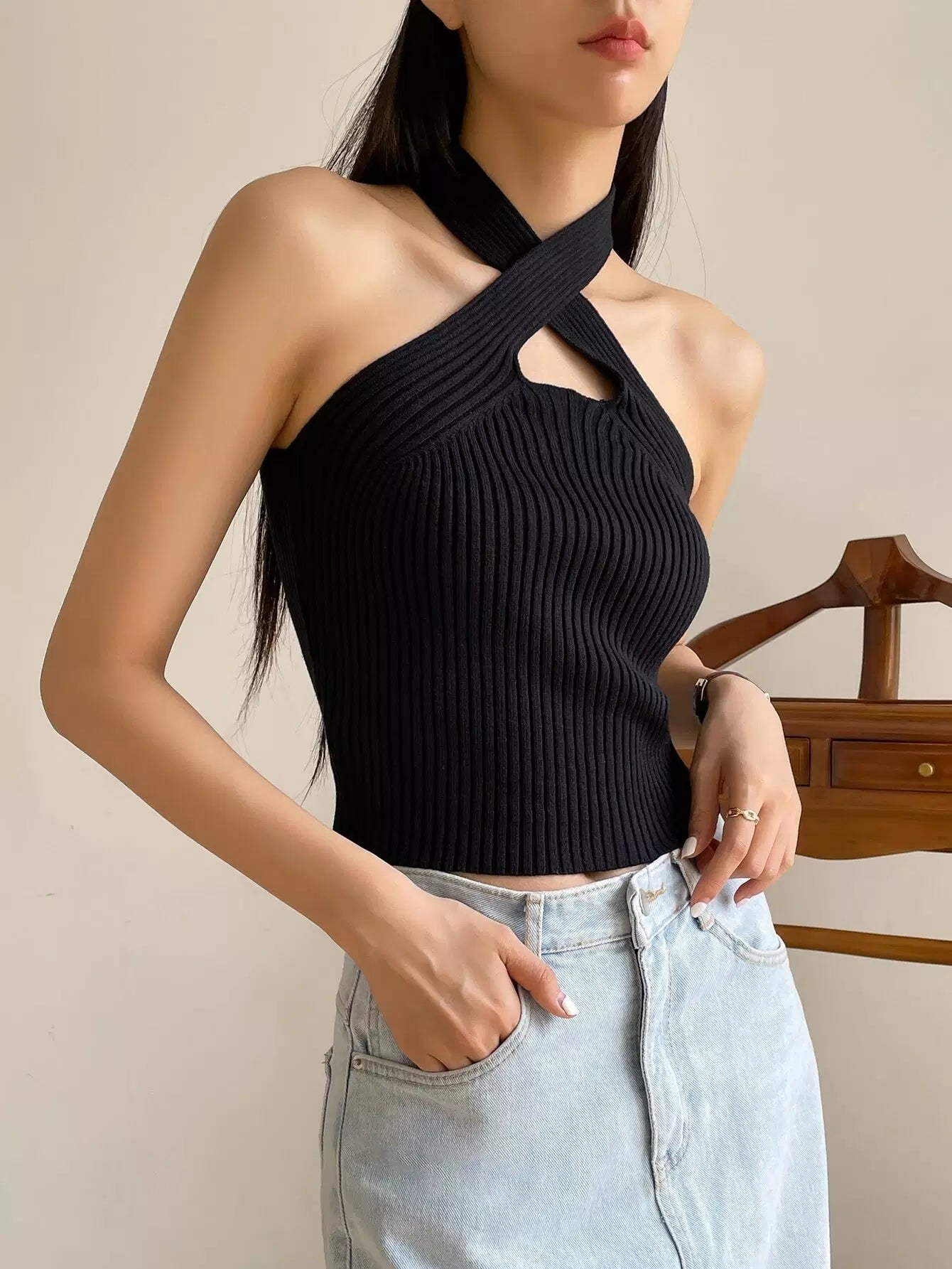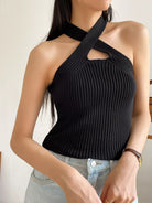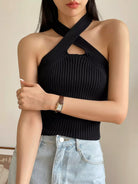 بلوزة محبوكة من الأمام كروس كروس سادة محبوكة