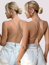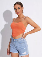 بلوزة بحواف مهدبة محبوكة على شكل ضلع بحزامين قابلين للفصل